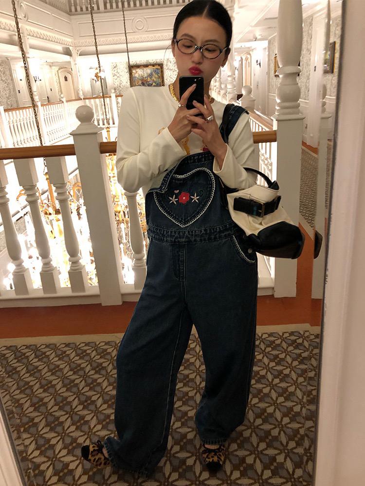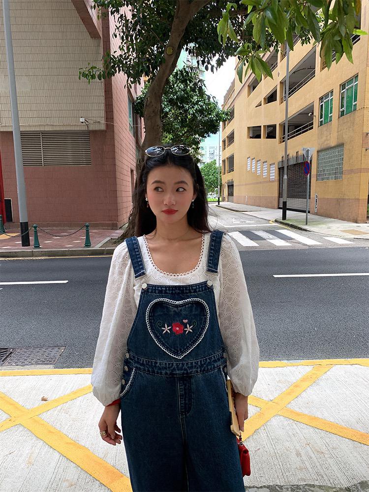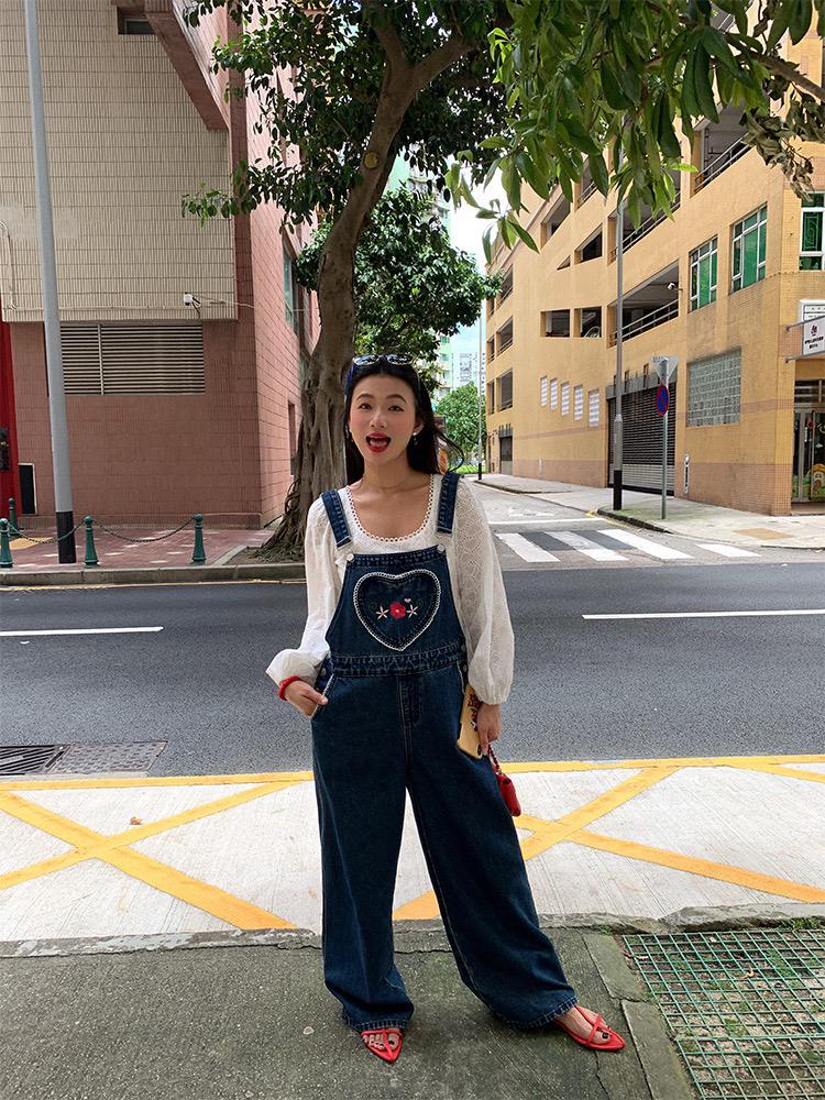 3. 【C7516】韓系時尚休閒愛心口袋牛仔連體褲