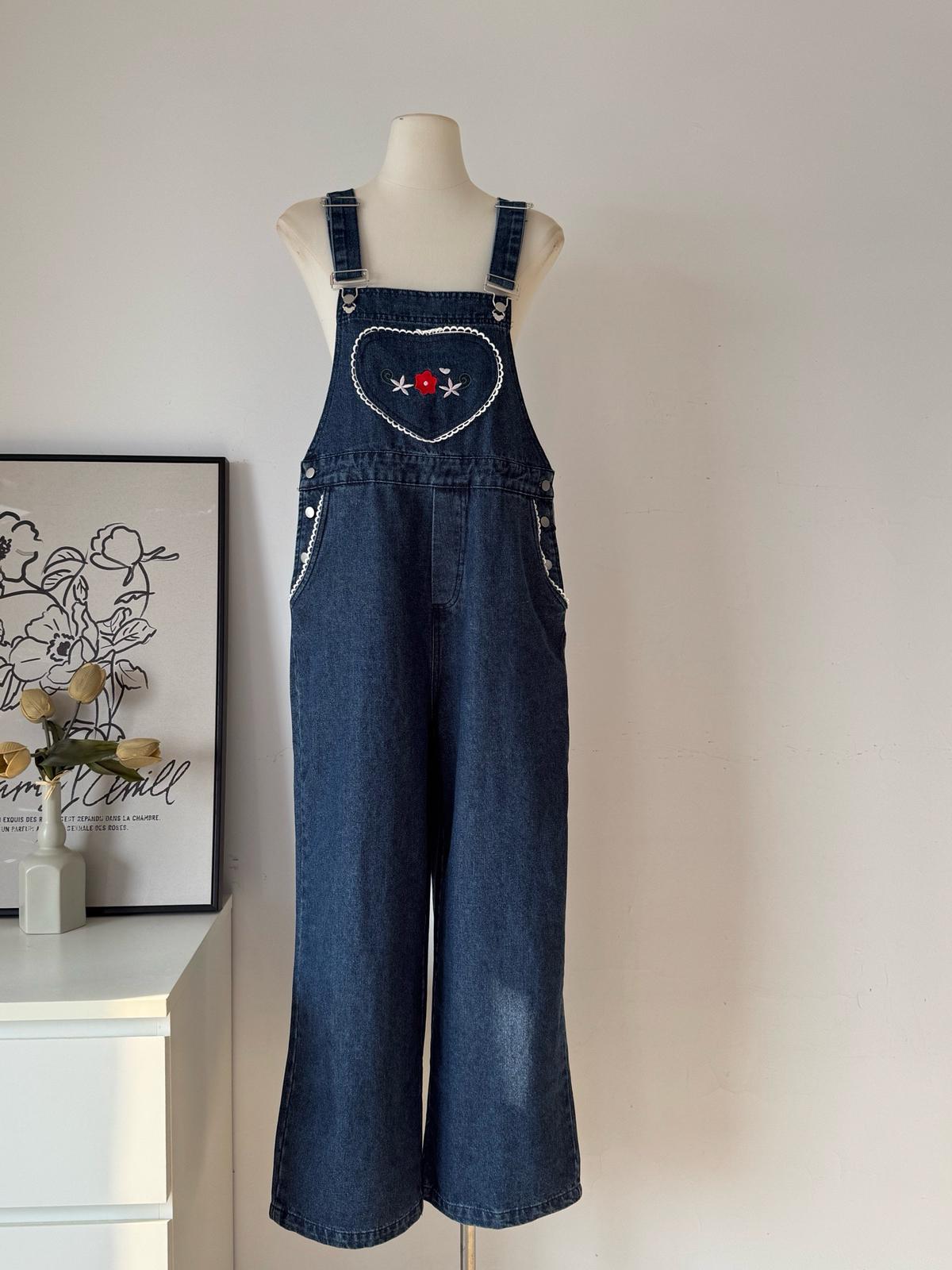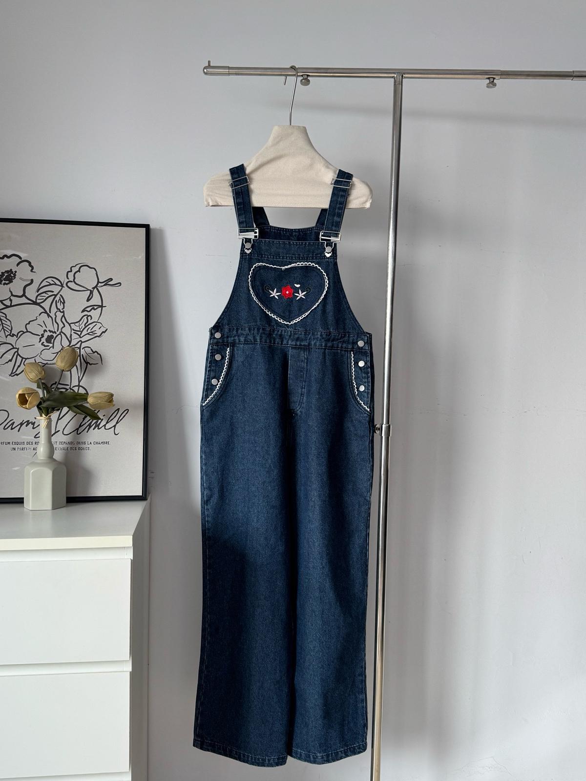 【C7516】韓系時尚休閒愛心口袋牛仔連體褲