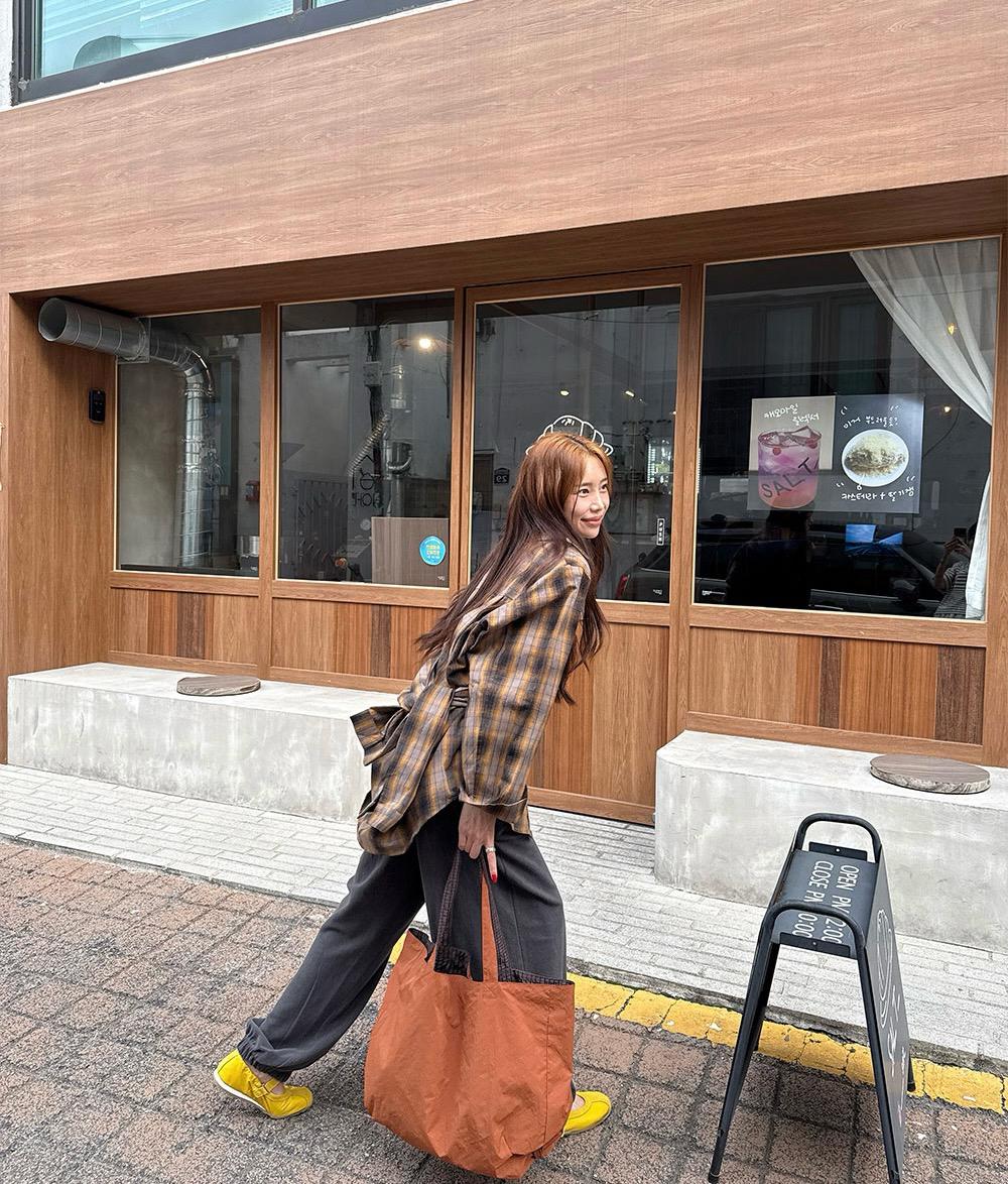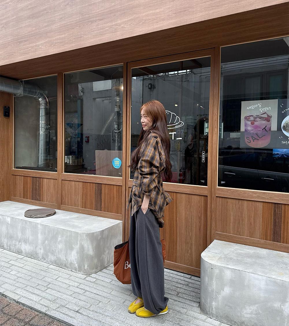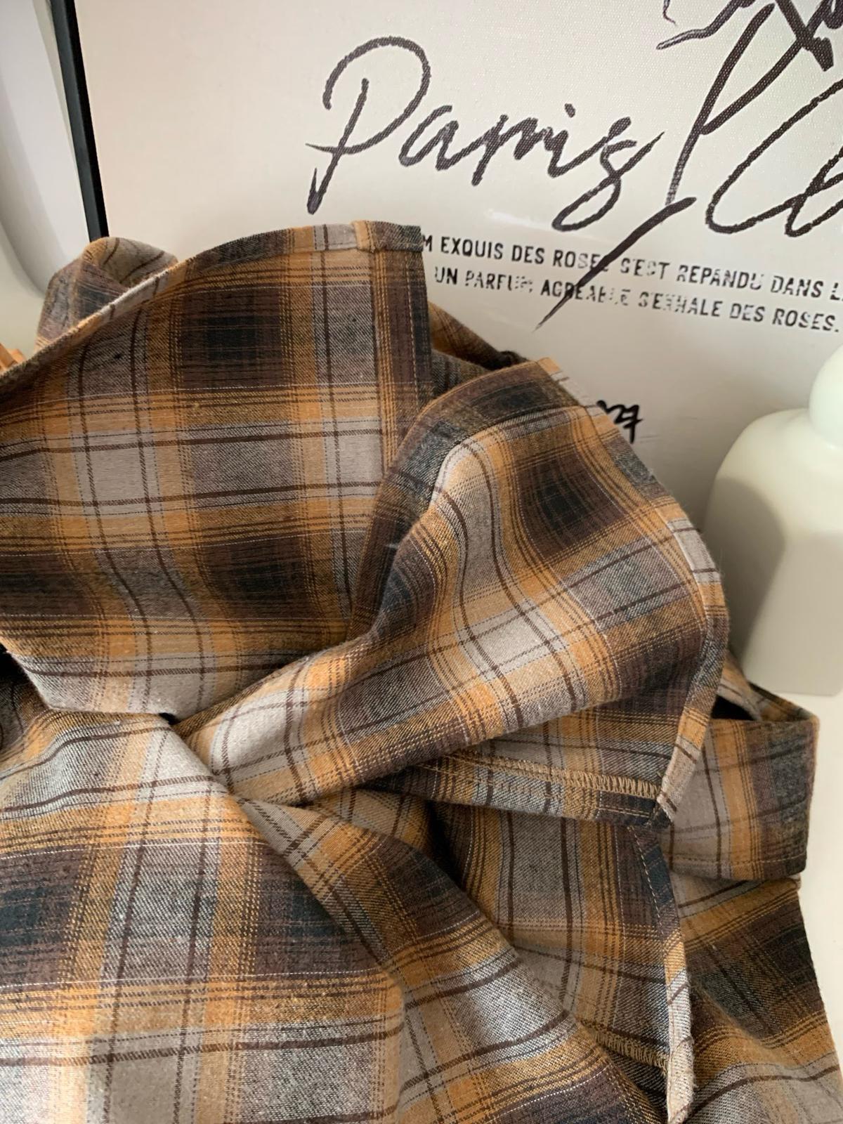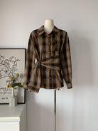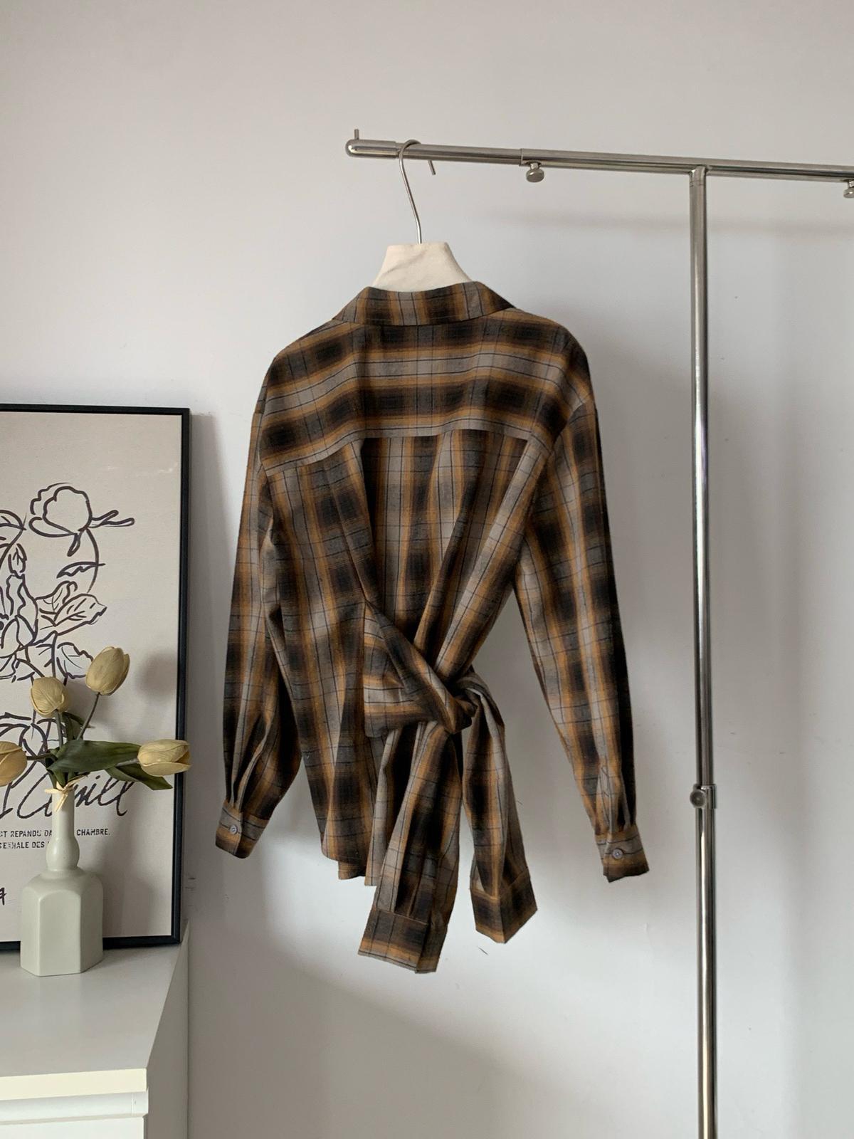 3. 【C7517】韓系新款小衆撞色格子長袖繫帶襯衫