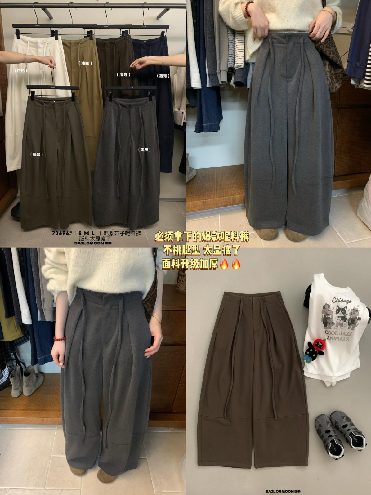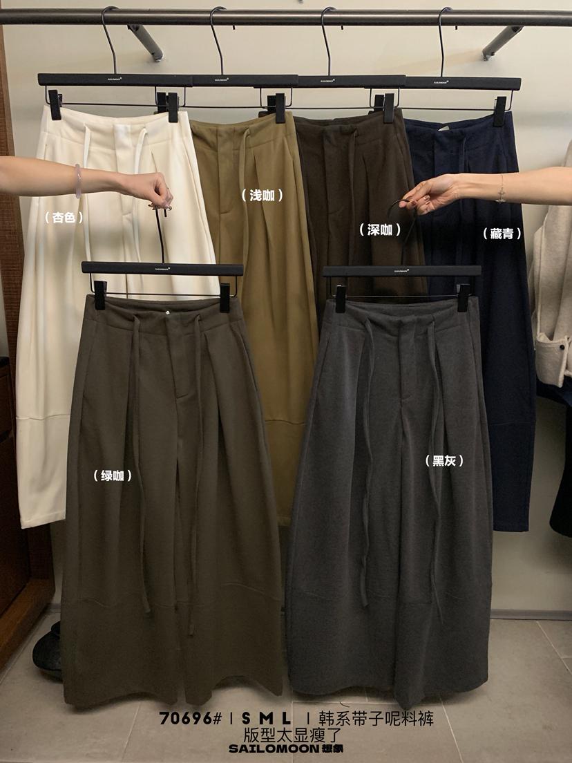 【C7521】韓系寬鬆抽繩純色休閒褲