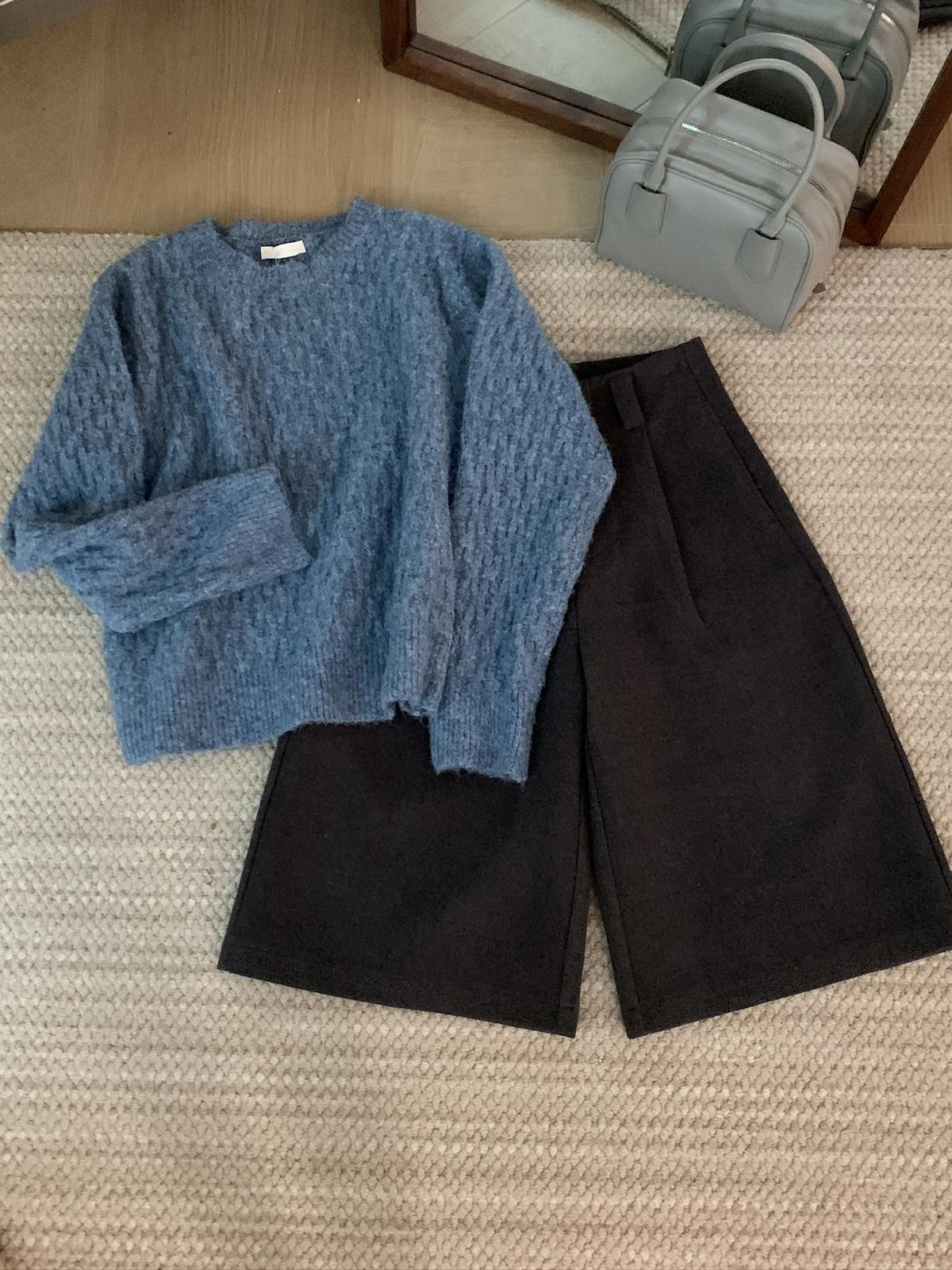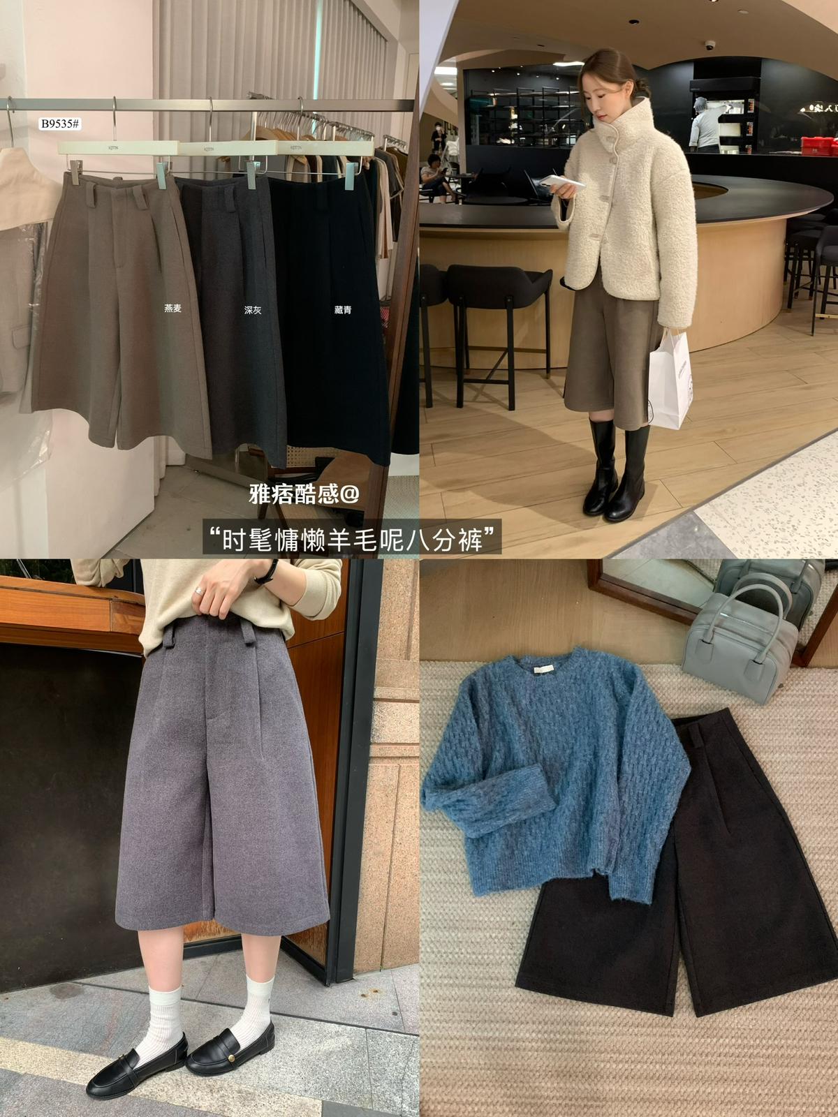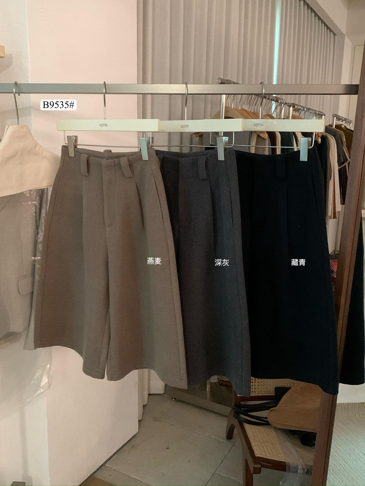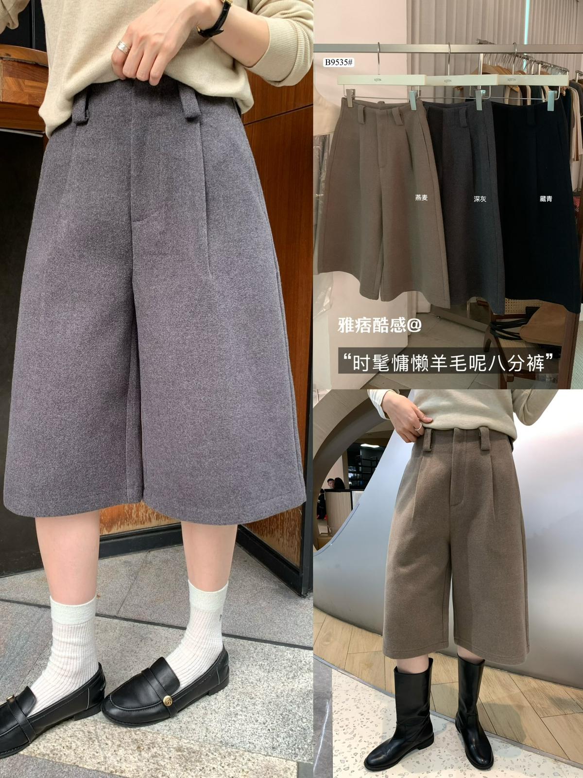 3. 【C7530】高腰寬鬆羊毛毛呢八分闊腿休閒褲(含3%羊毛)