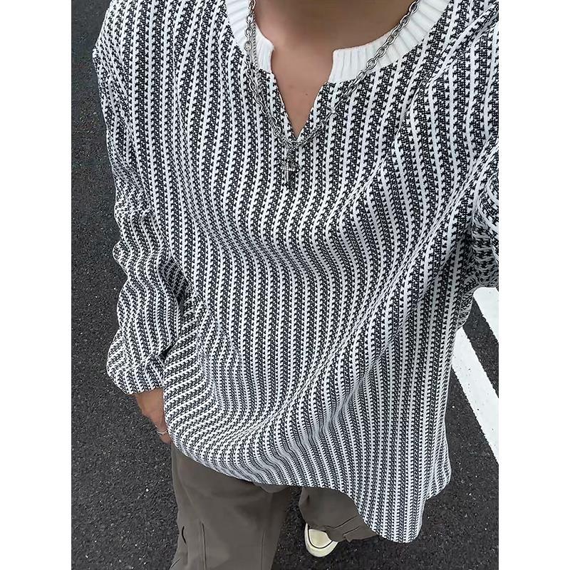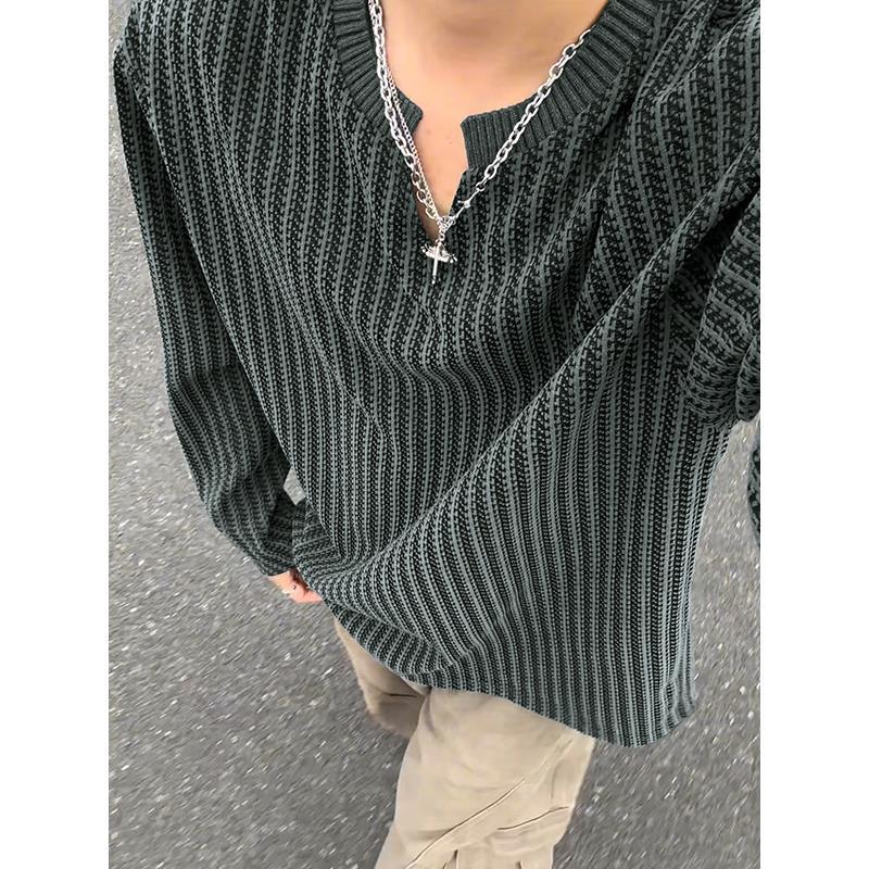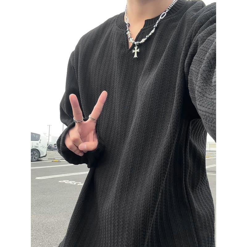 3. 【YS2382】設計感魚骨紋V領小香風長袖T恤