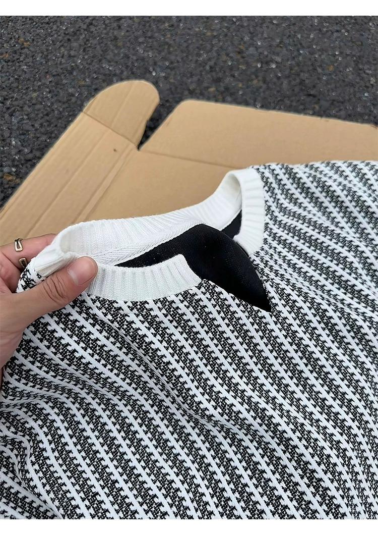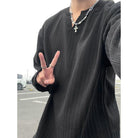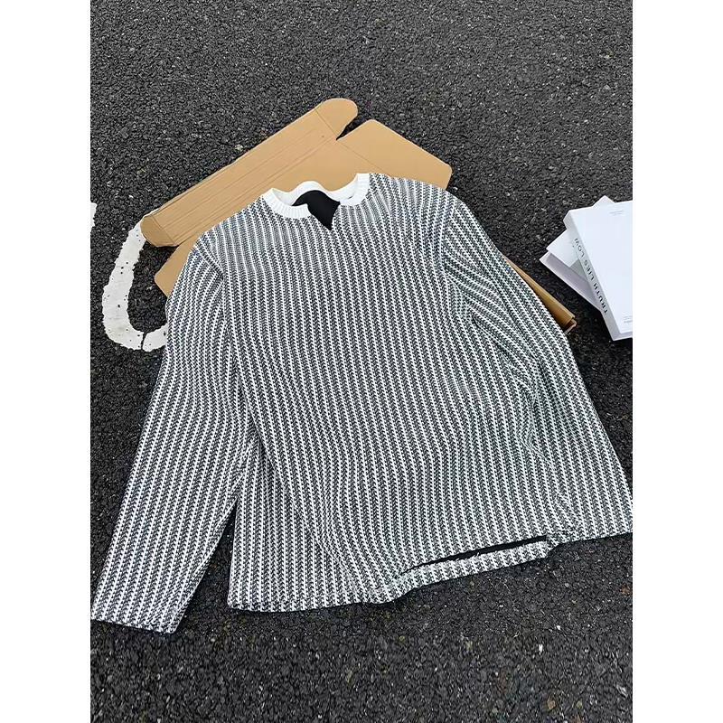 【YS2382】設計感魚骨紋V領小香風長袖T恤