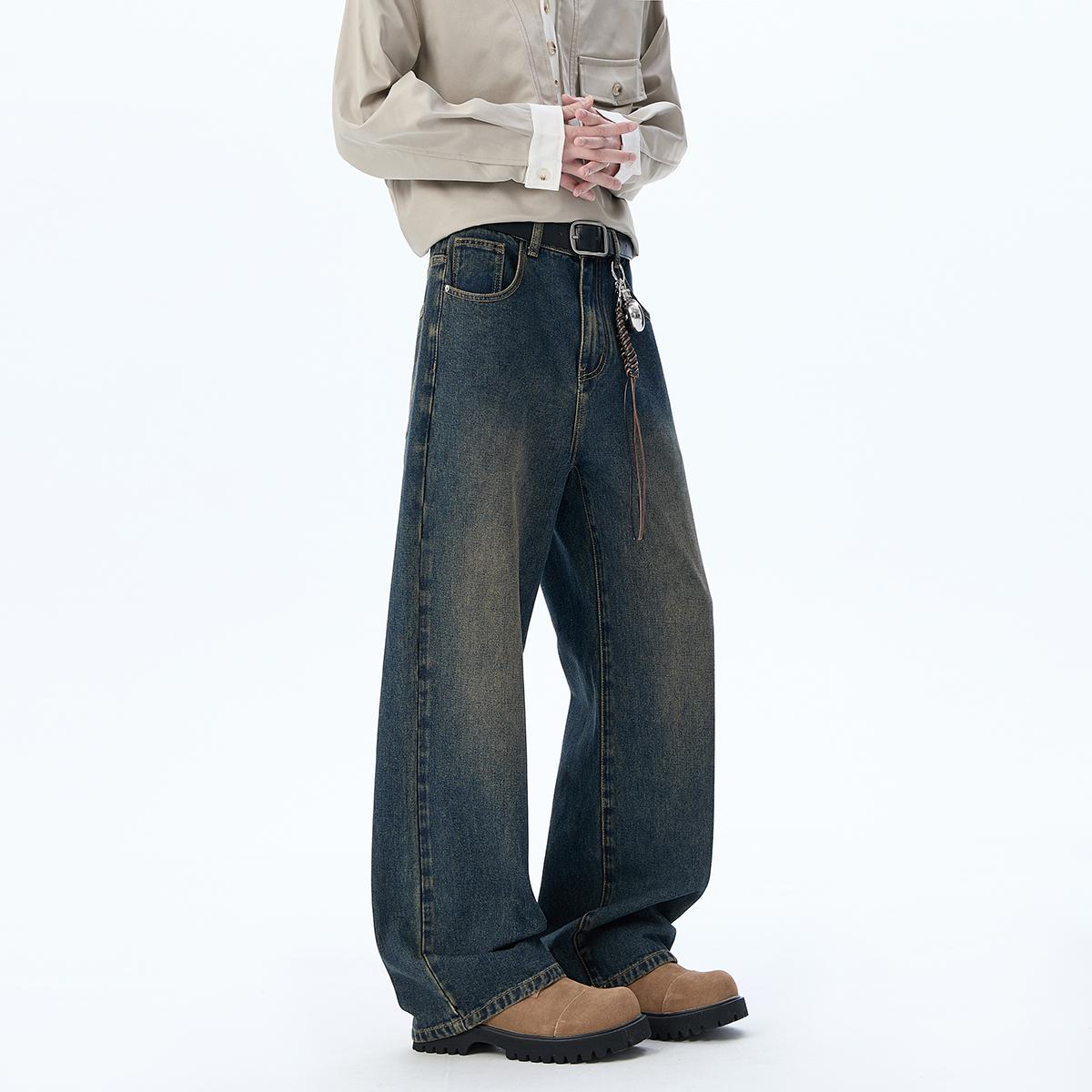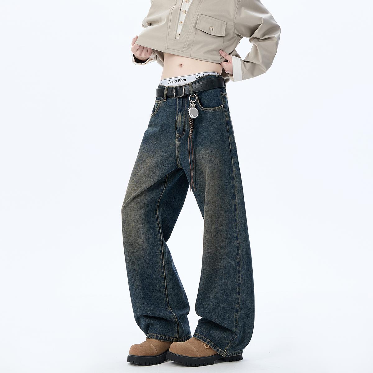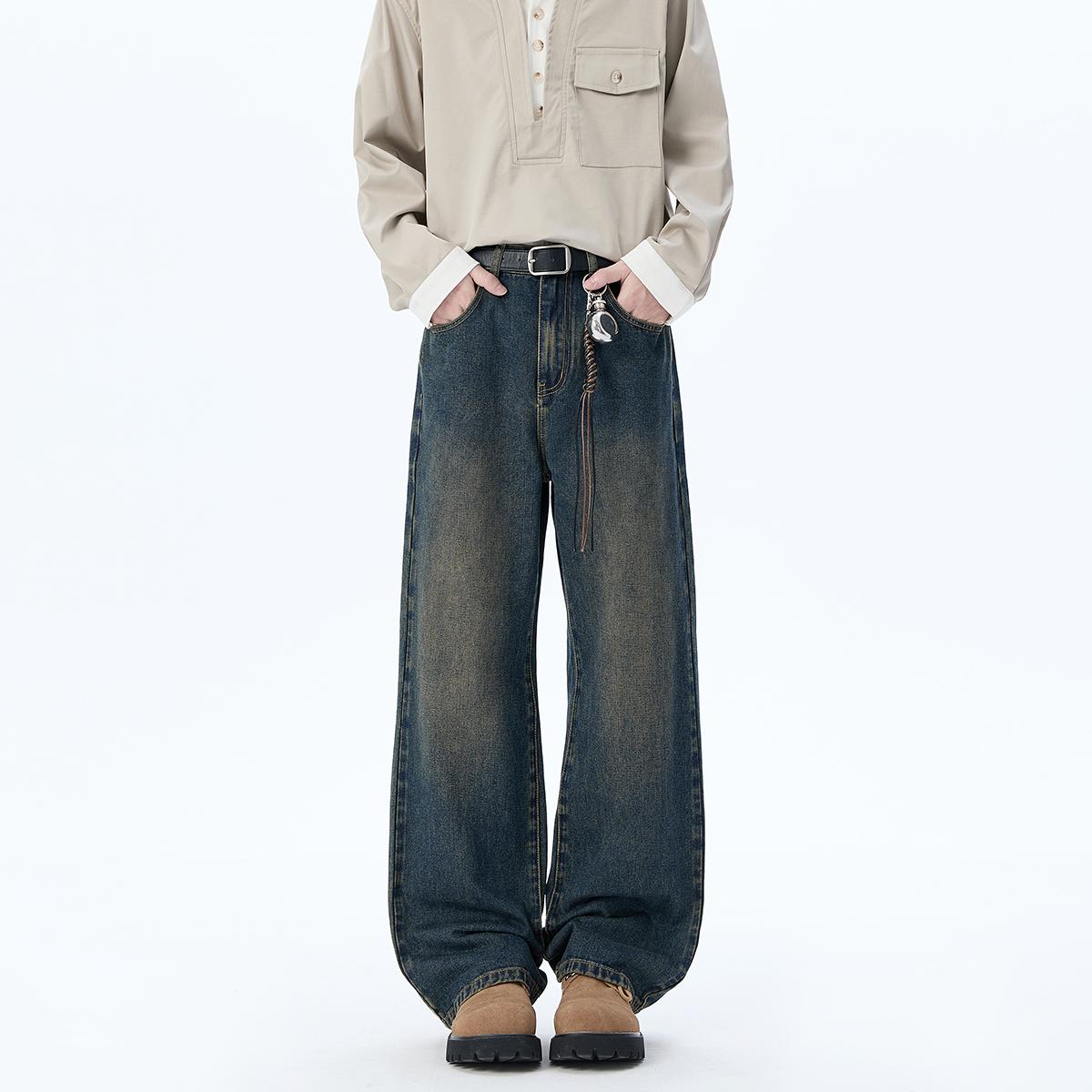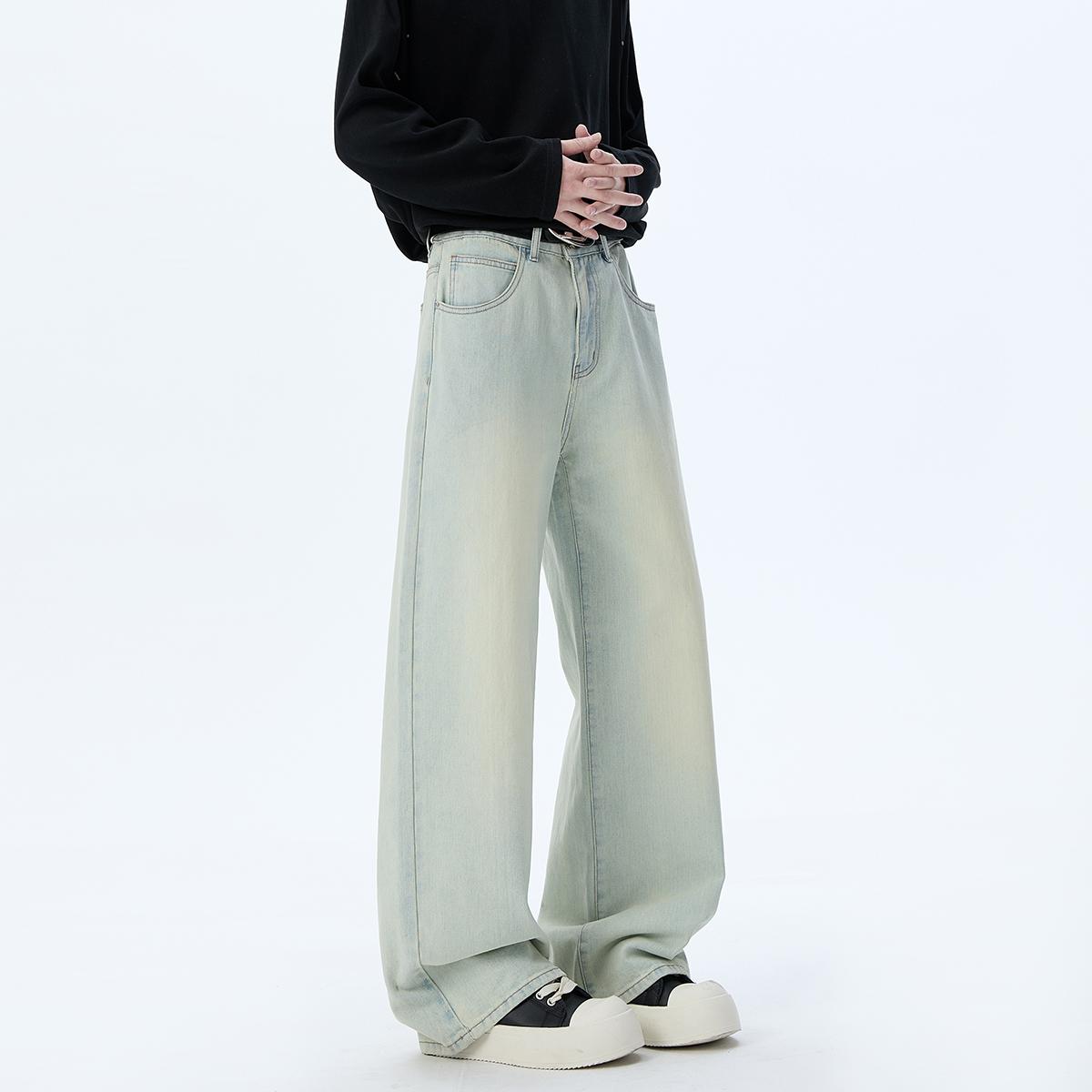 【YS2390】寬鬆水洗做舊闊腿牛仔褲