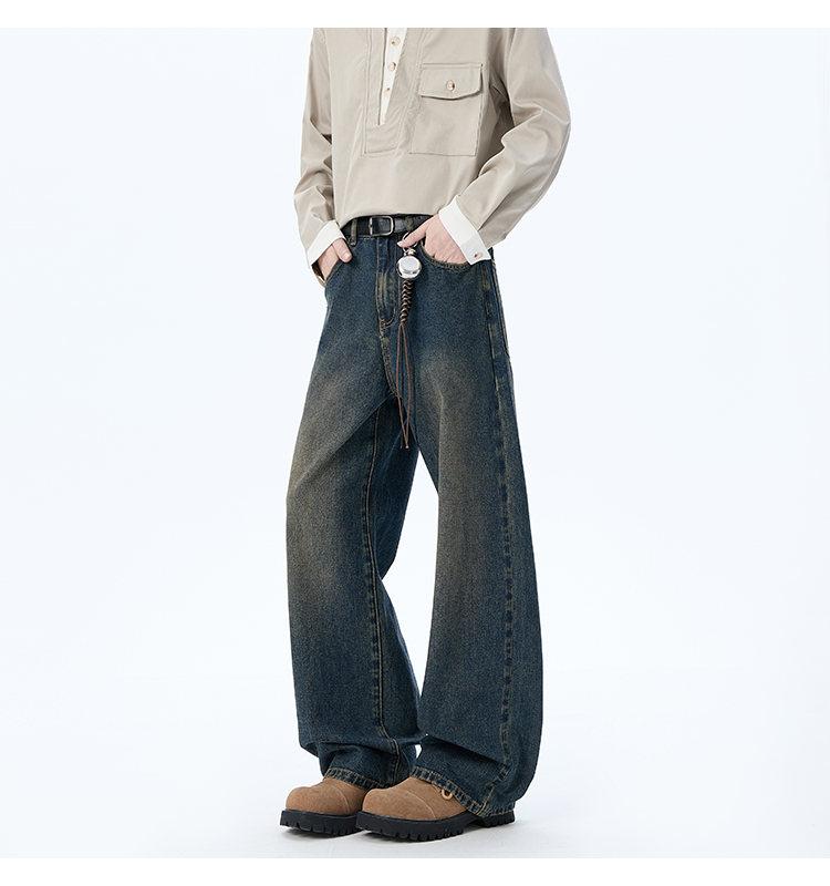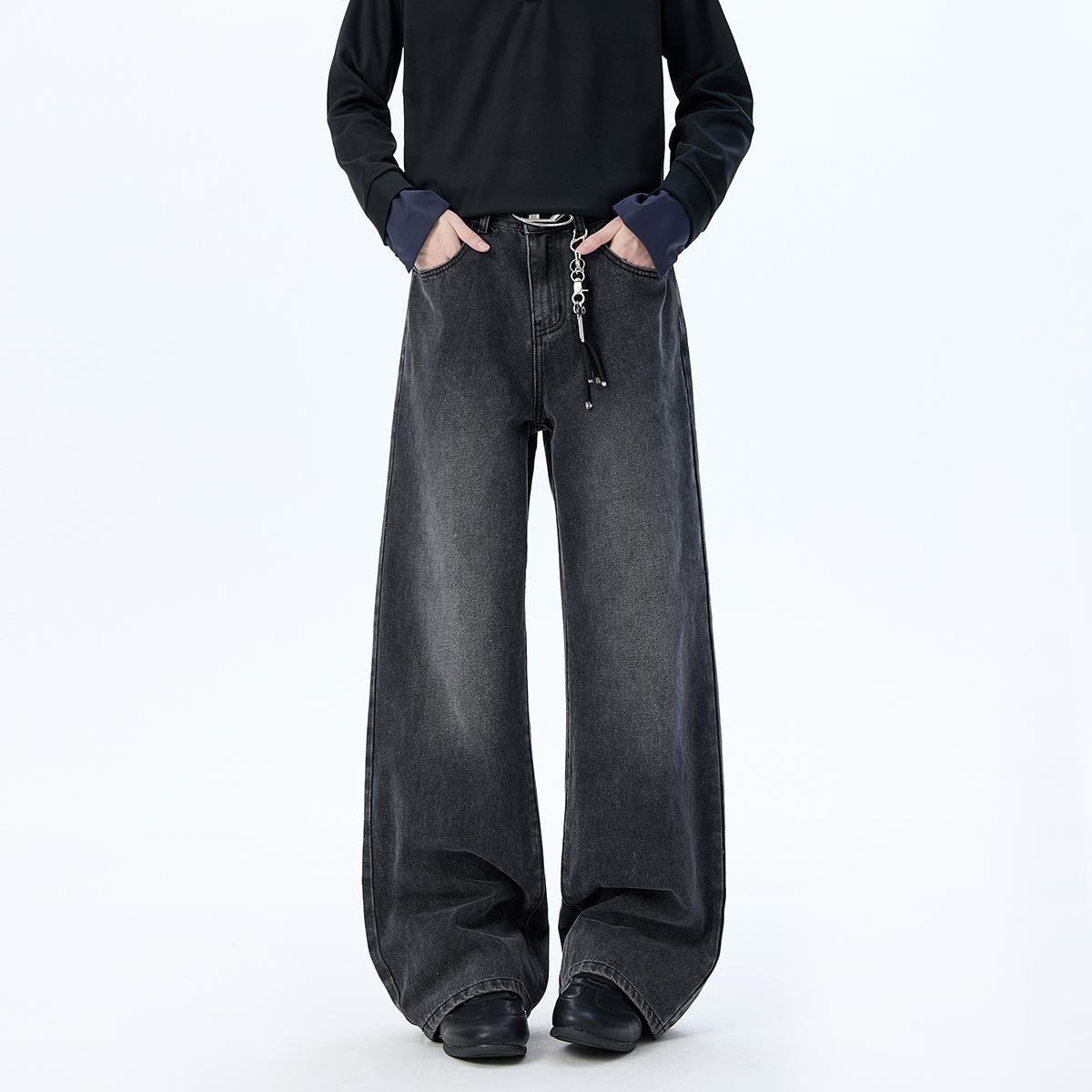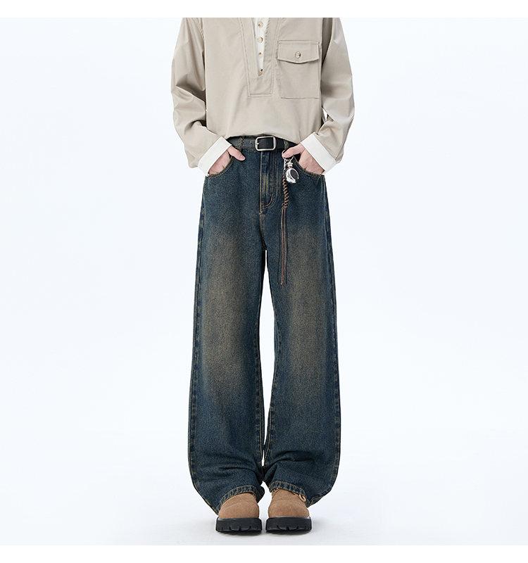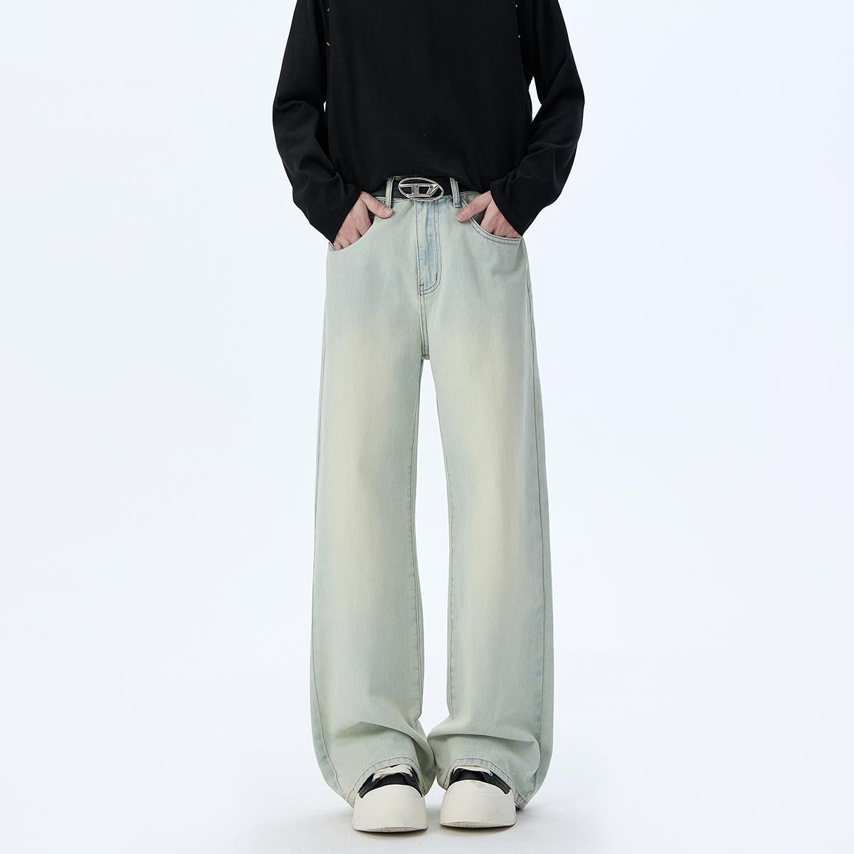 【YS2390】寬鬆水洗做舊闊腿牛仔褲