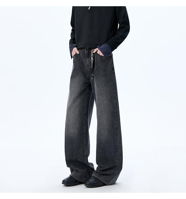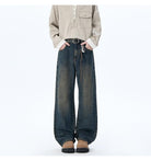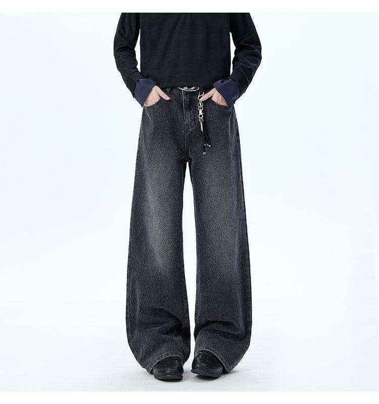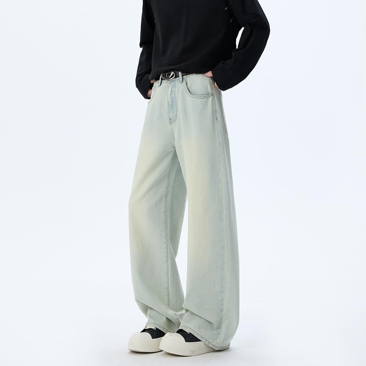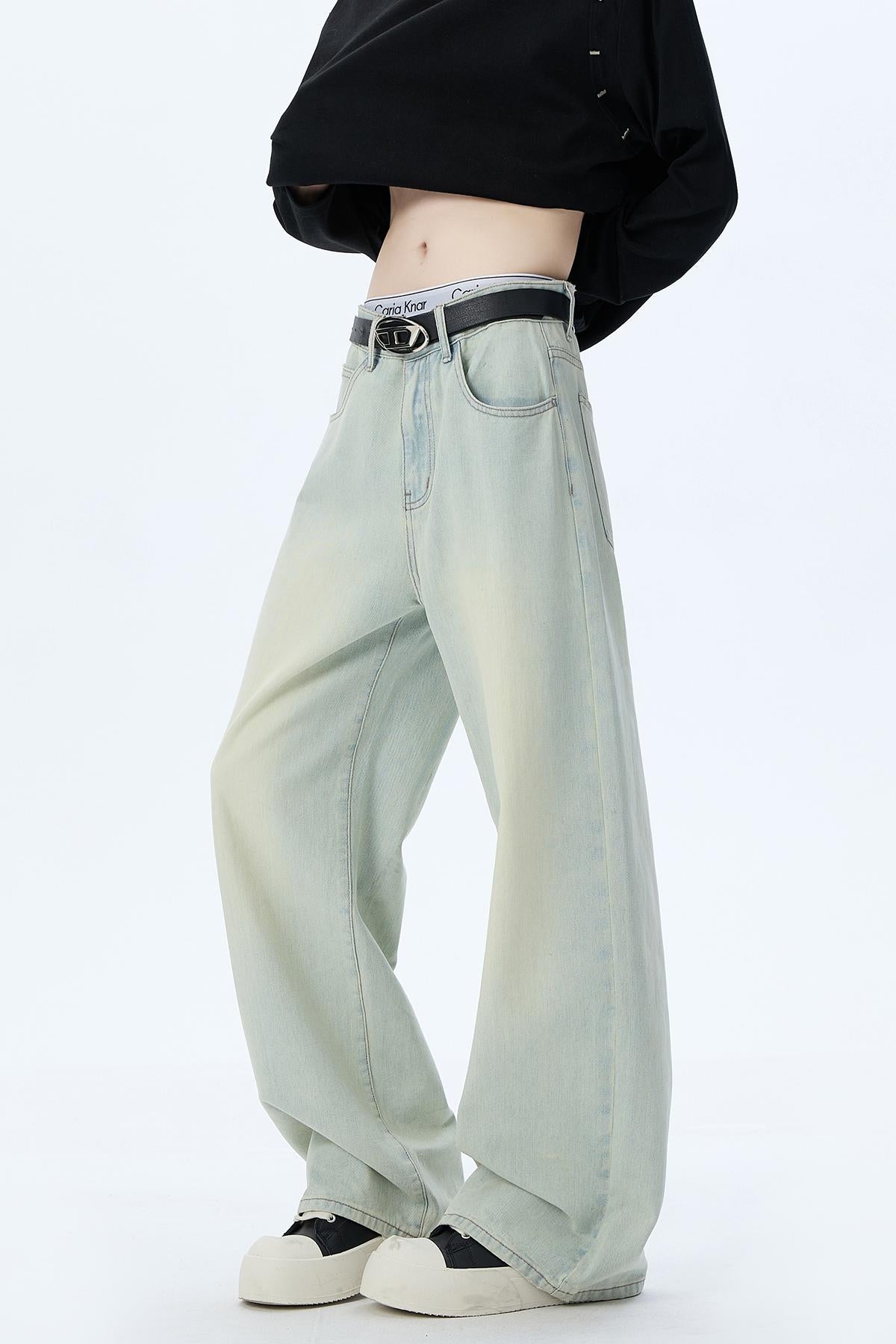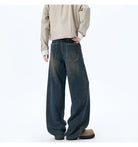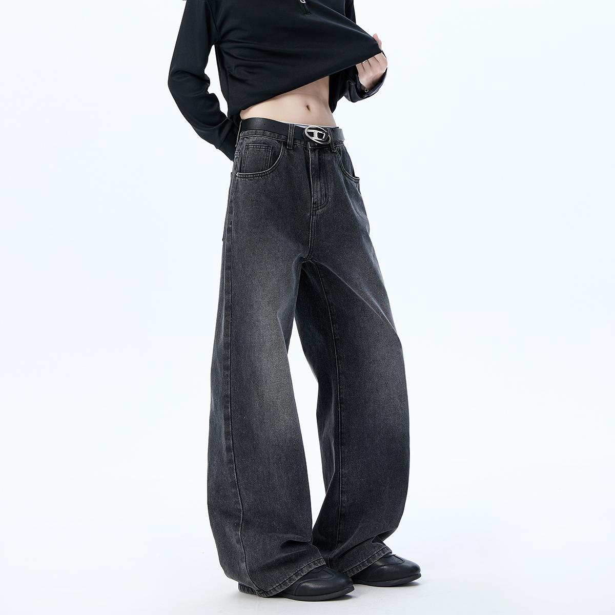 【YS2390】寬鬆水洗做舊闊腿牛仔褲