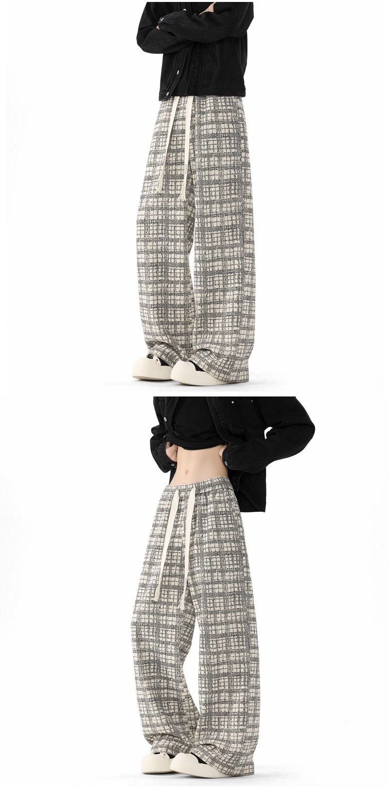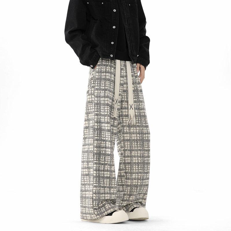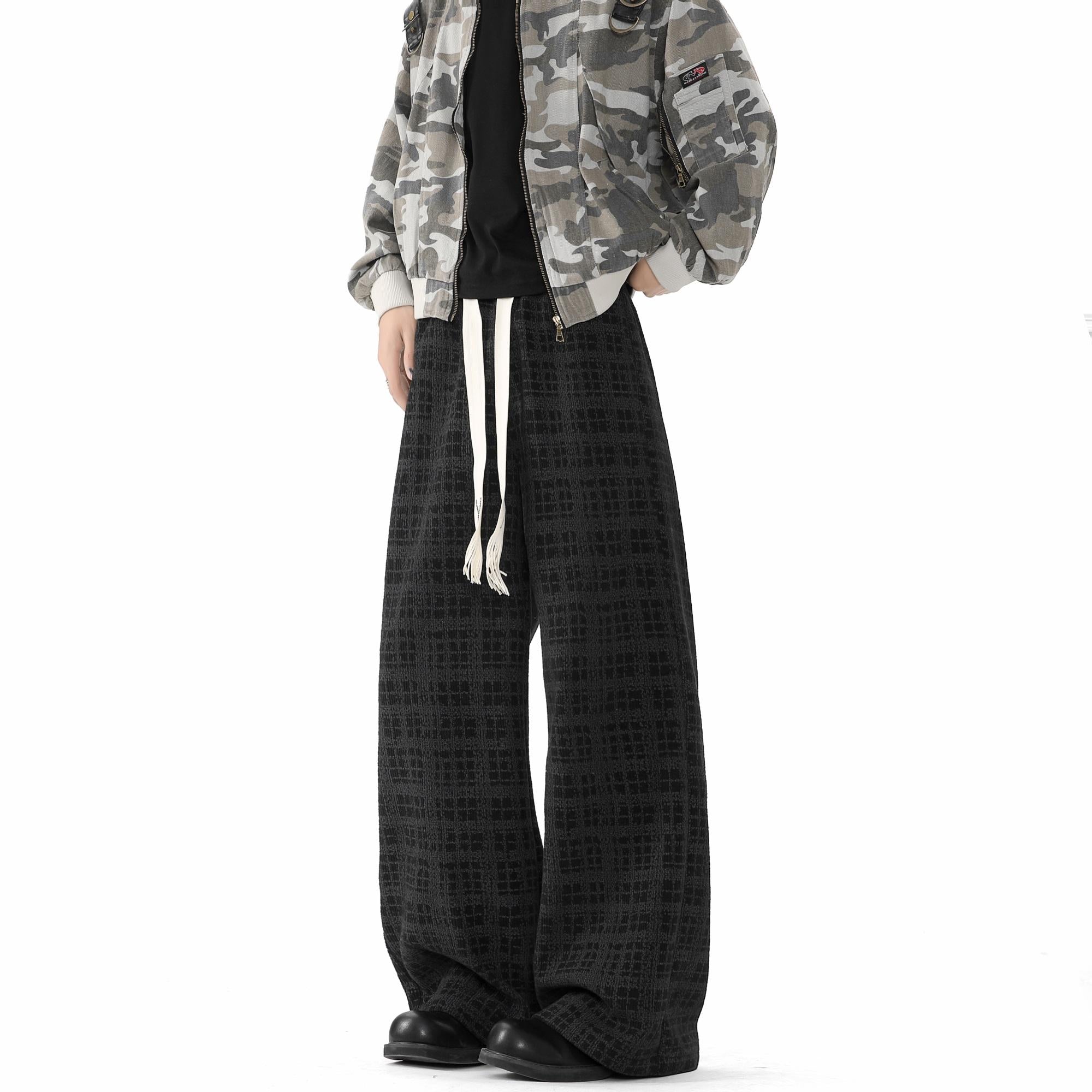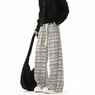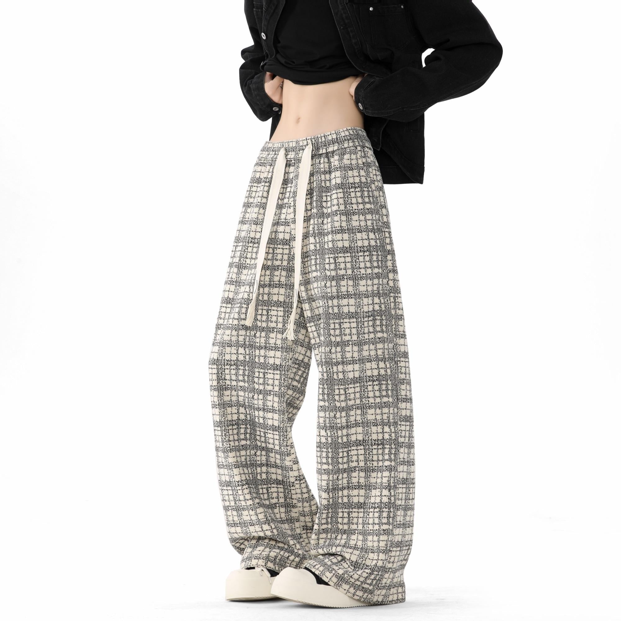 【YS2394】冬季加絨格紋褲復古百搭休閒褲