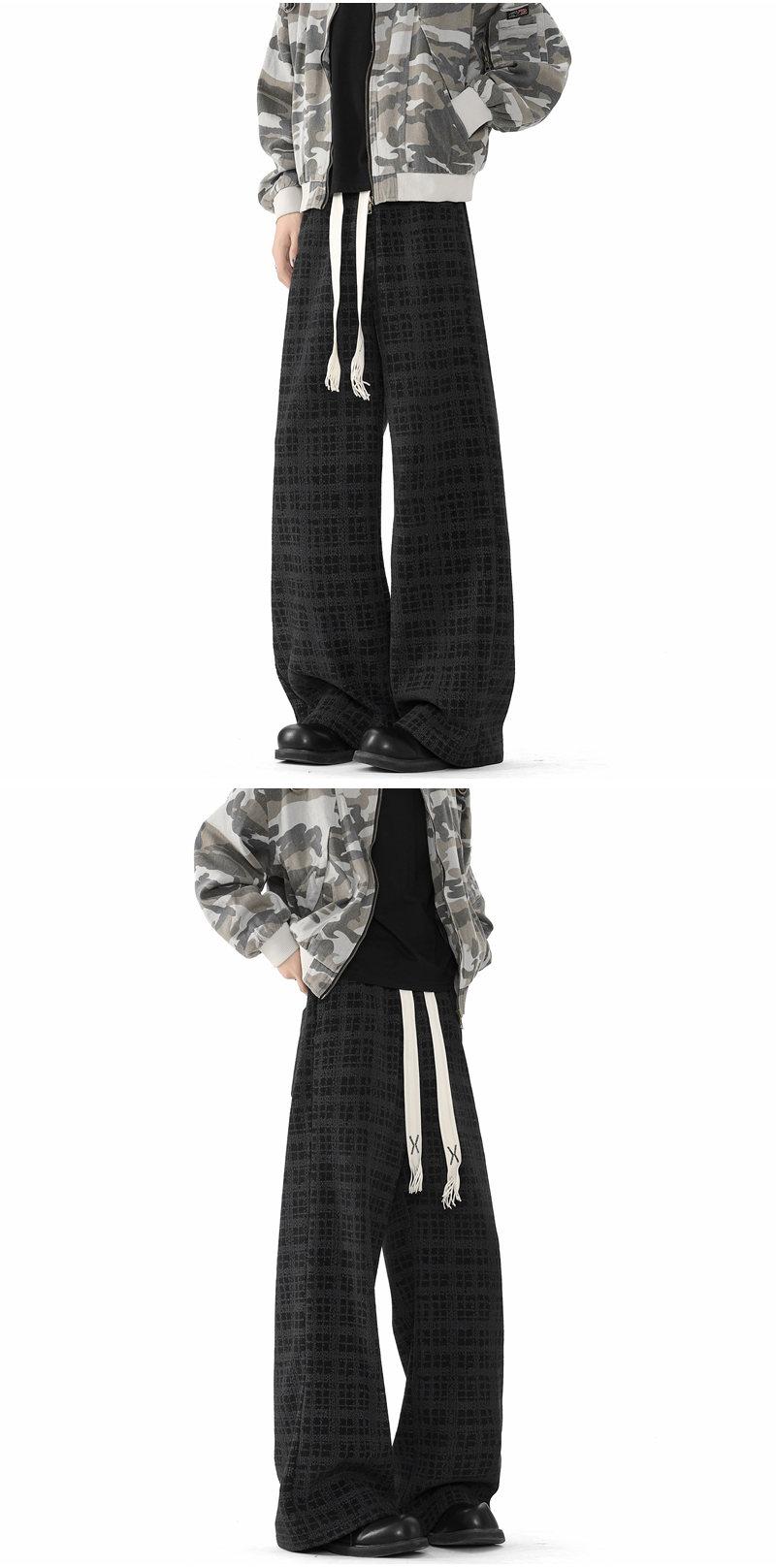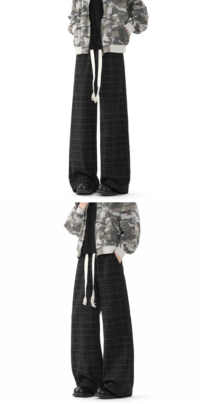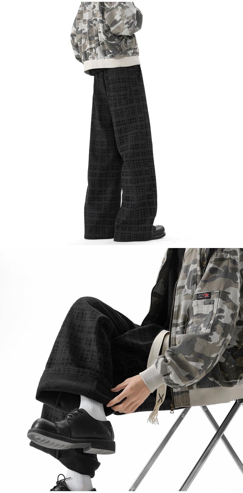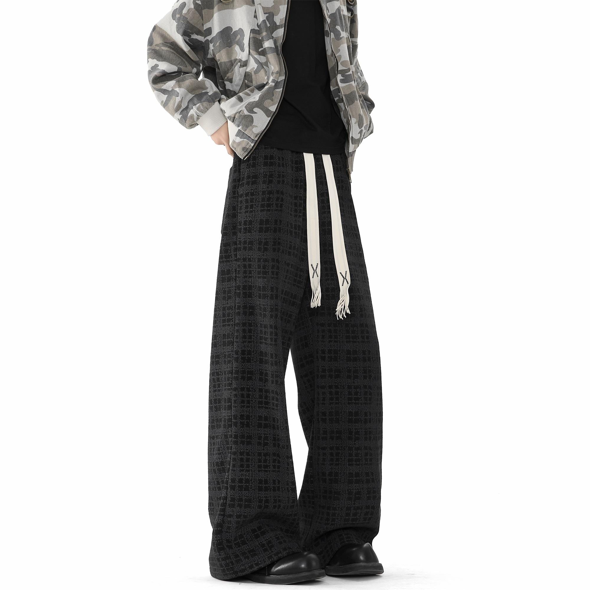 【YS2394】冬季加絨格紋褲復古百搭休閒褲