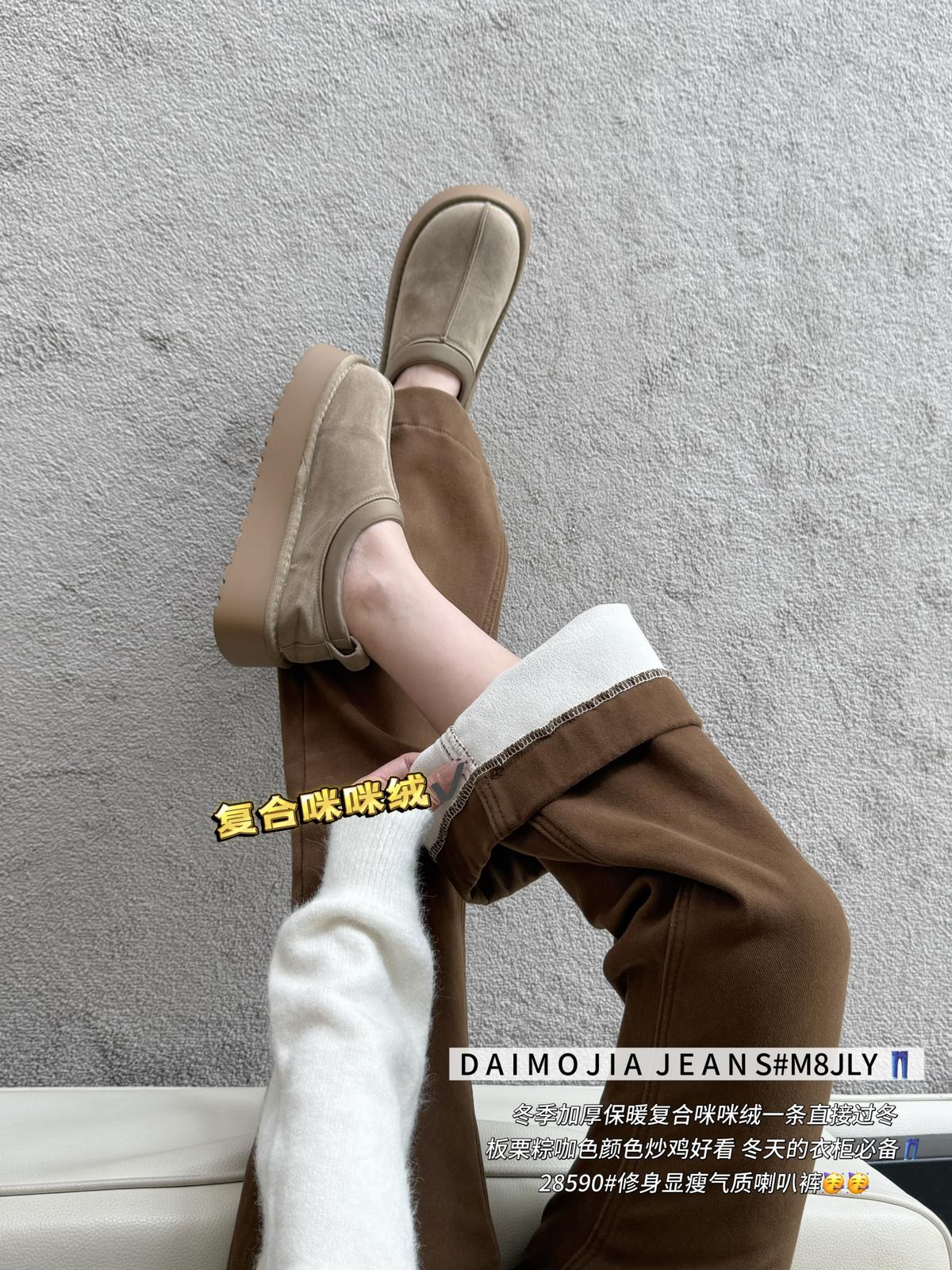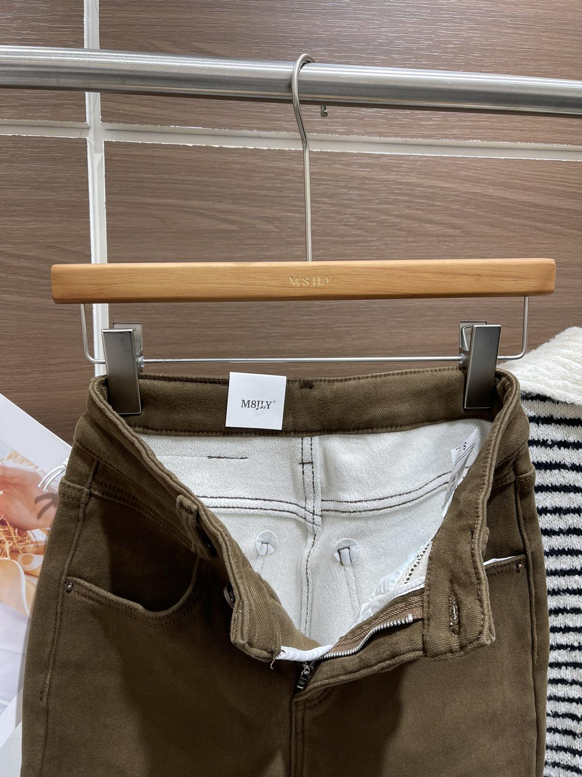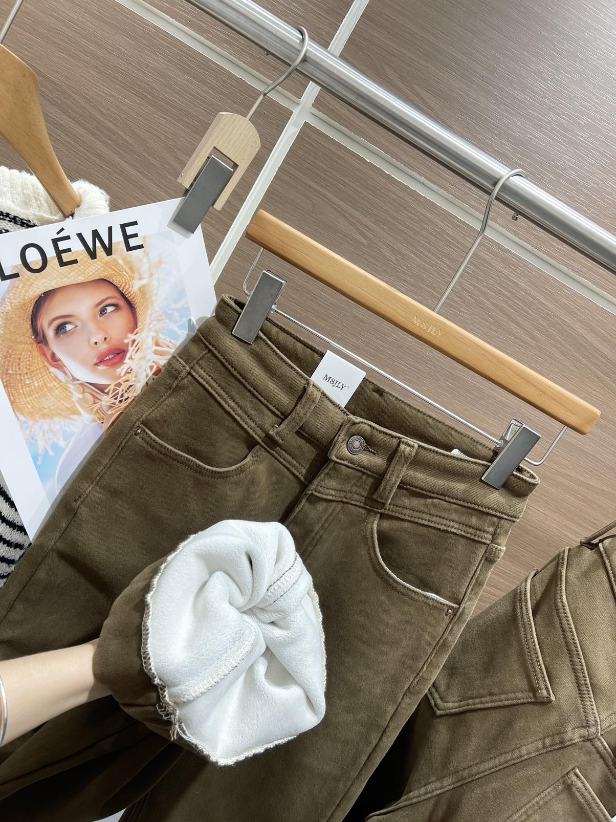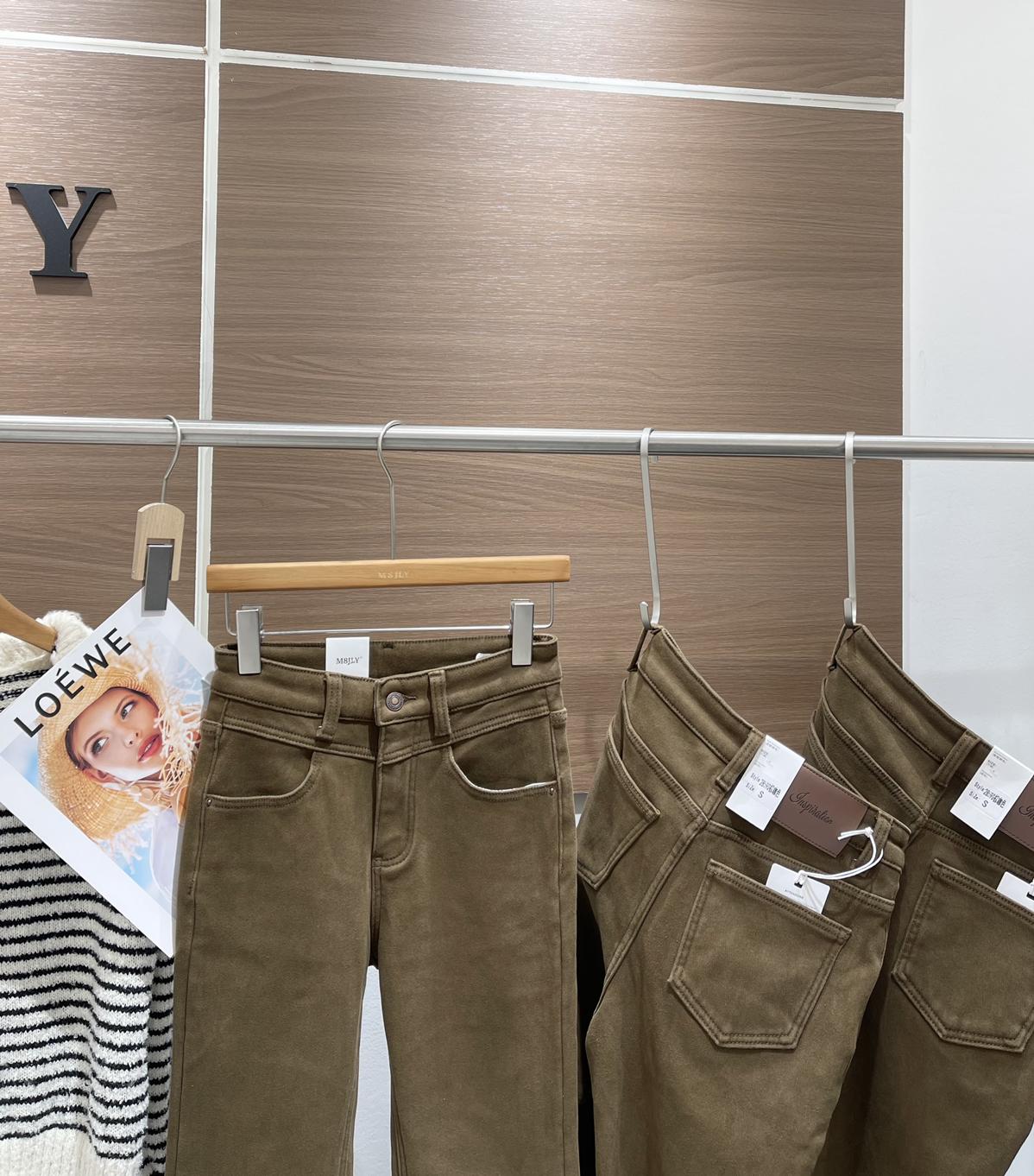 【C7537】冬季加厚保暖複合密密絨板栗糉咖色修身顯瘦彈力喇叭褲牛仔褲