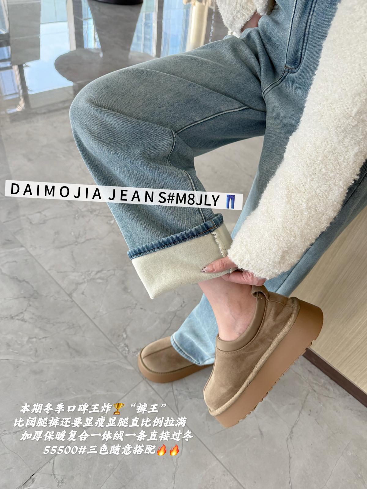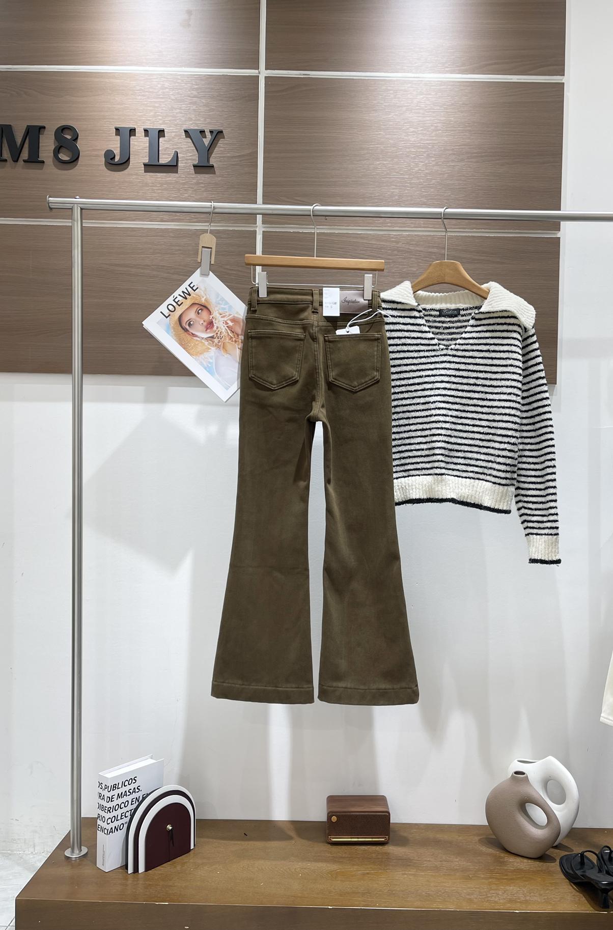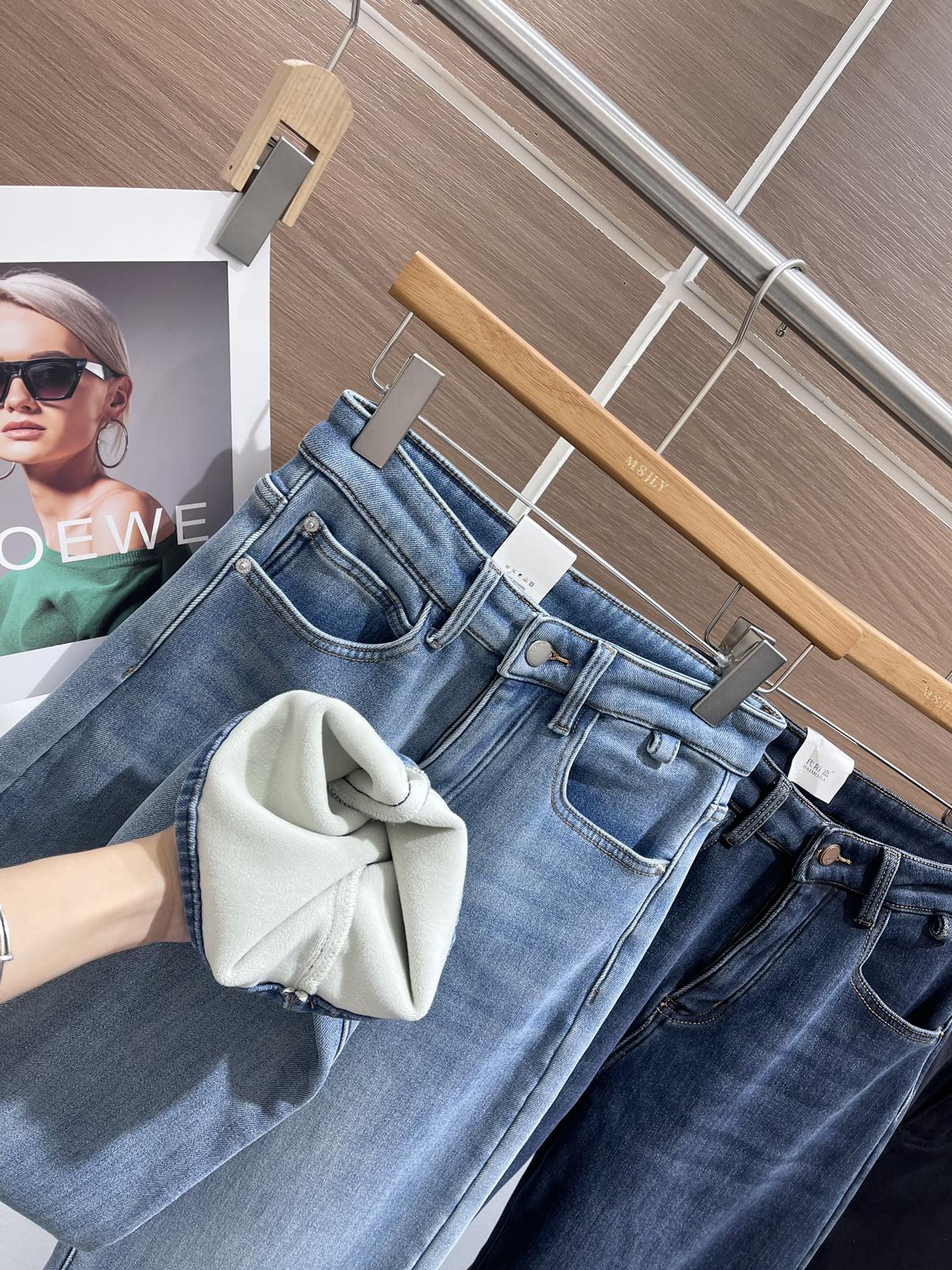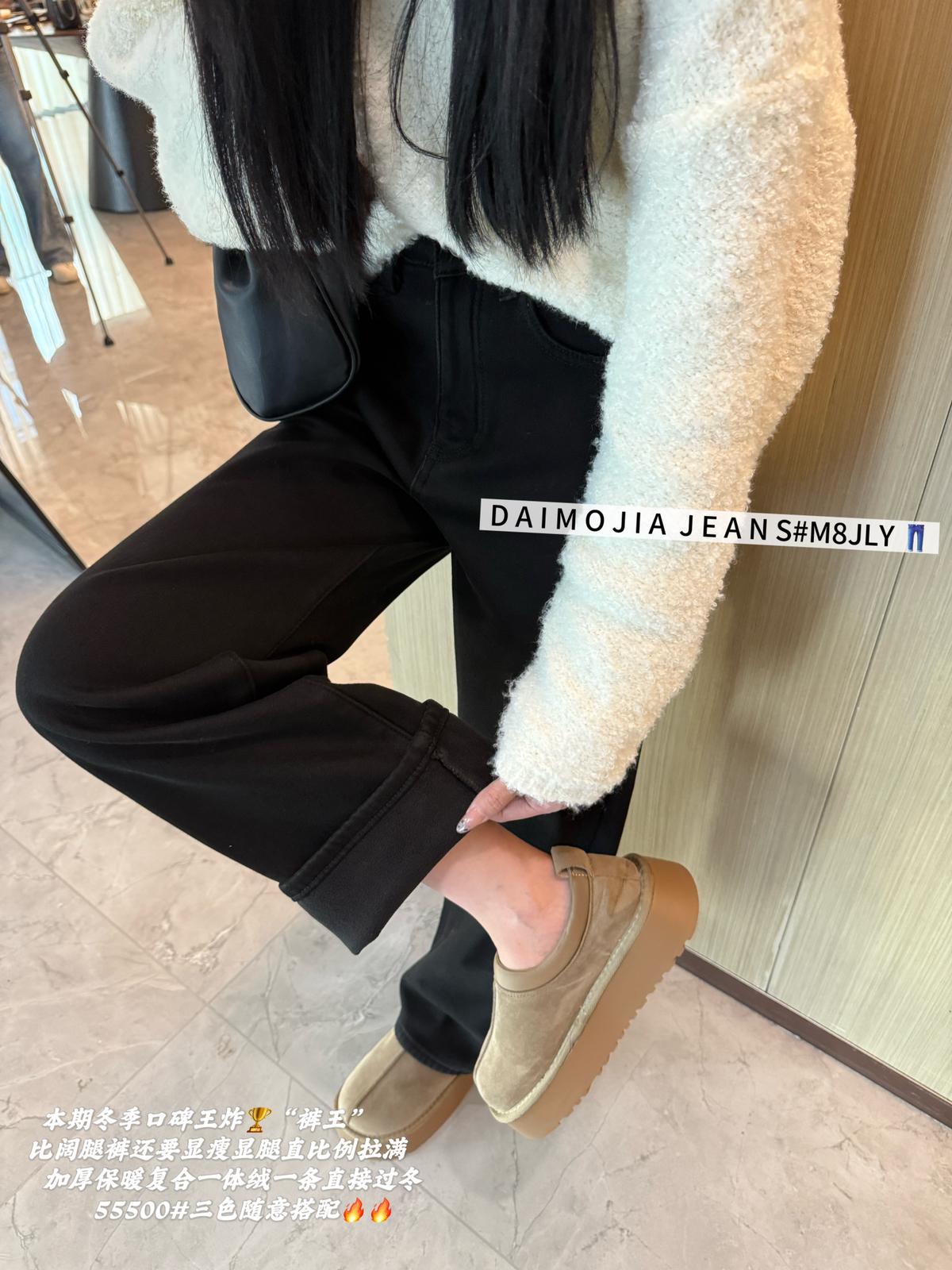 【C7537】冬季加厚保暖複合密密絨板栗糉咖色修身顯瘦彈力喇叭褲牛仔褲