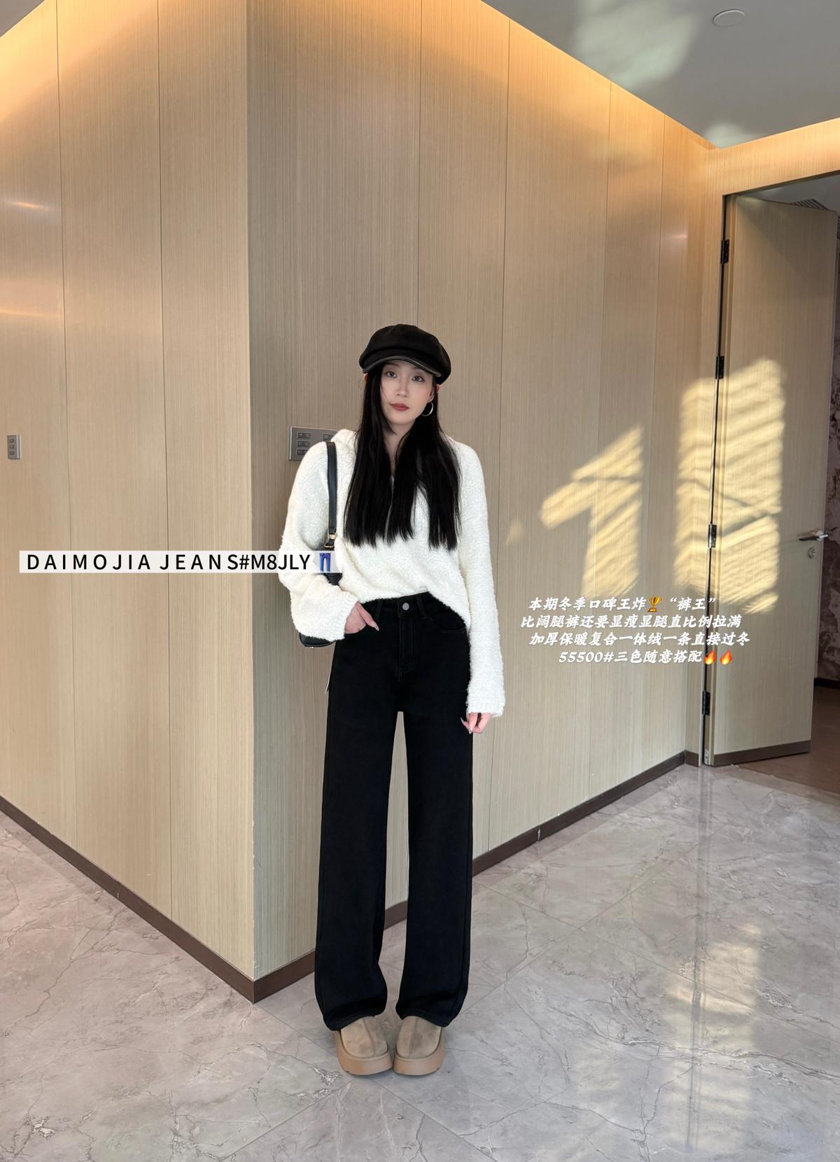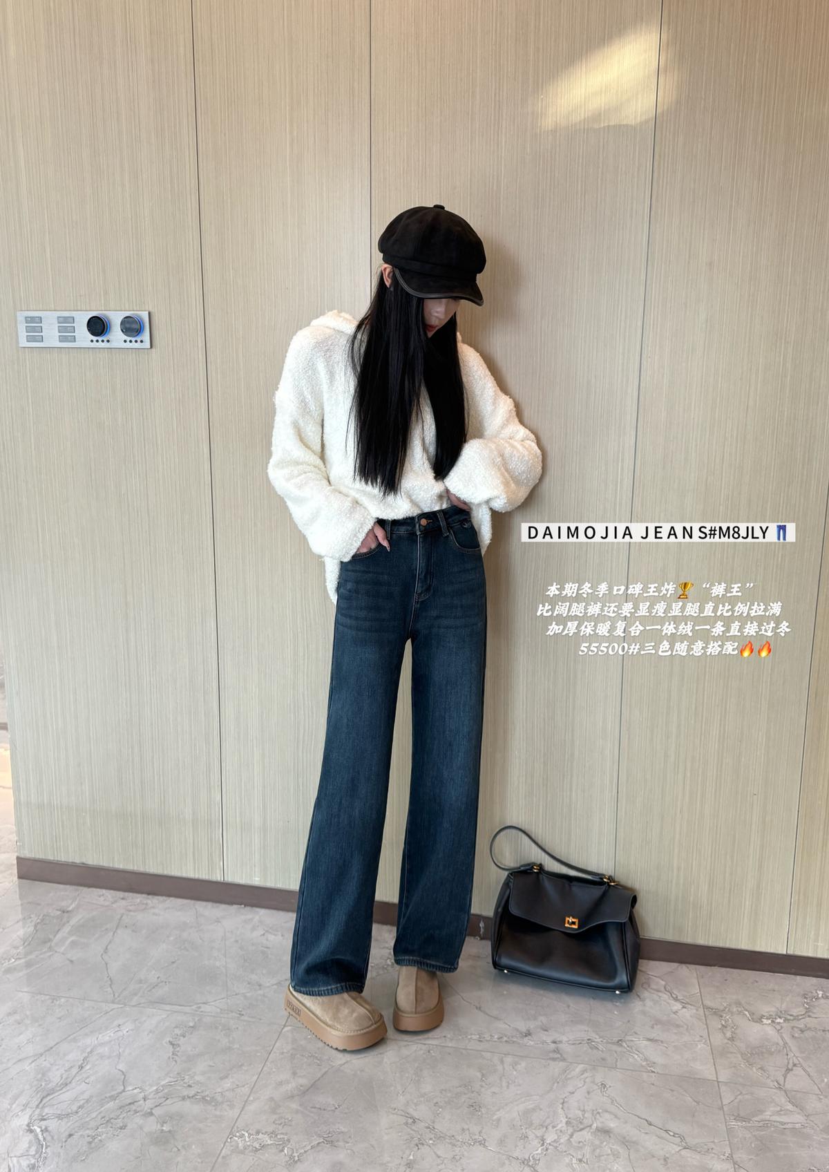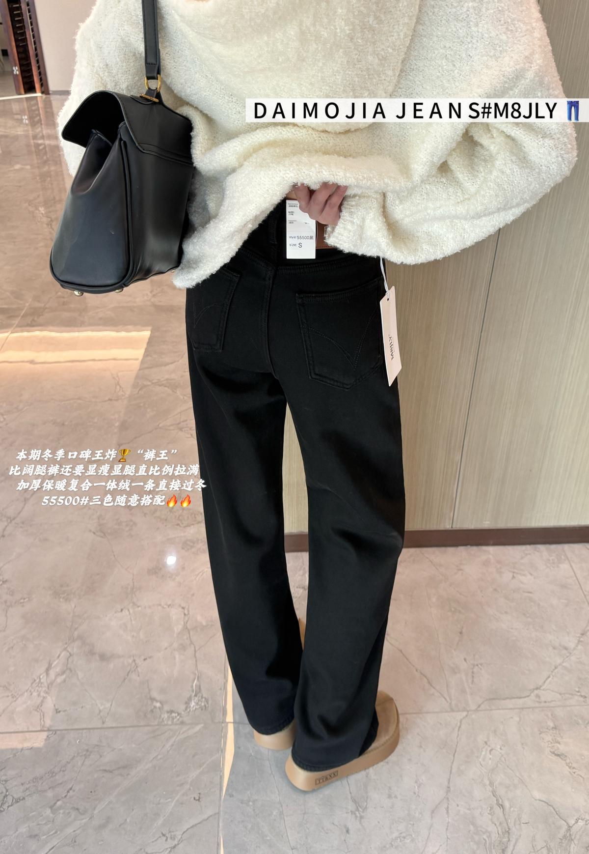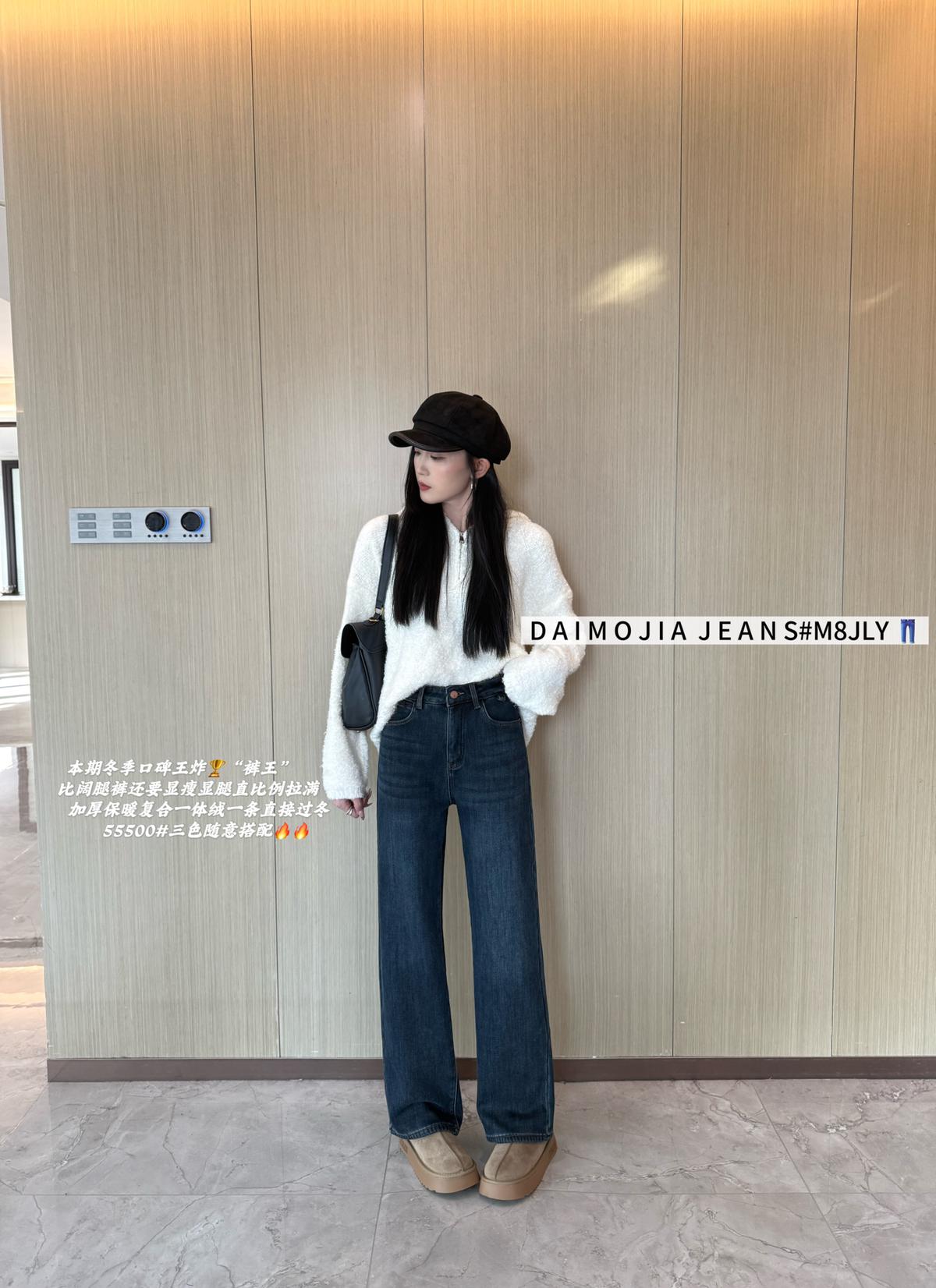 【C7538】冬季保暖加厚複合絨三色可選後口袋撞色繡線彈力窄版直筒褲牛仔褲