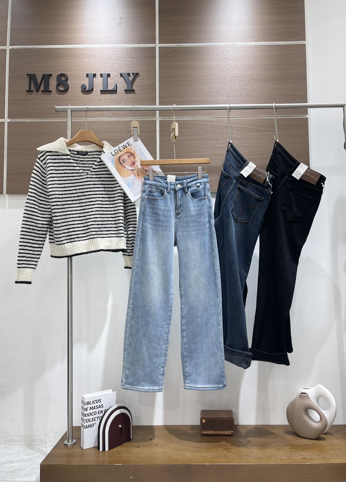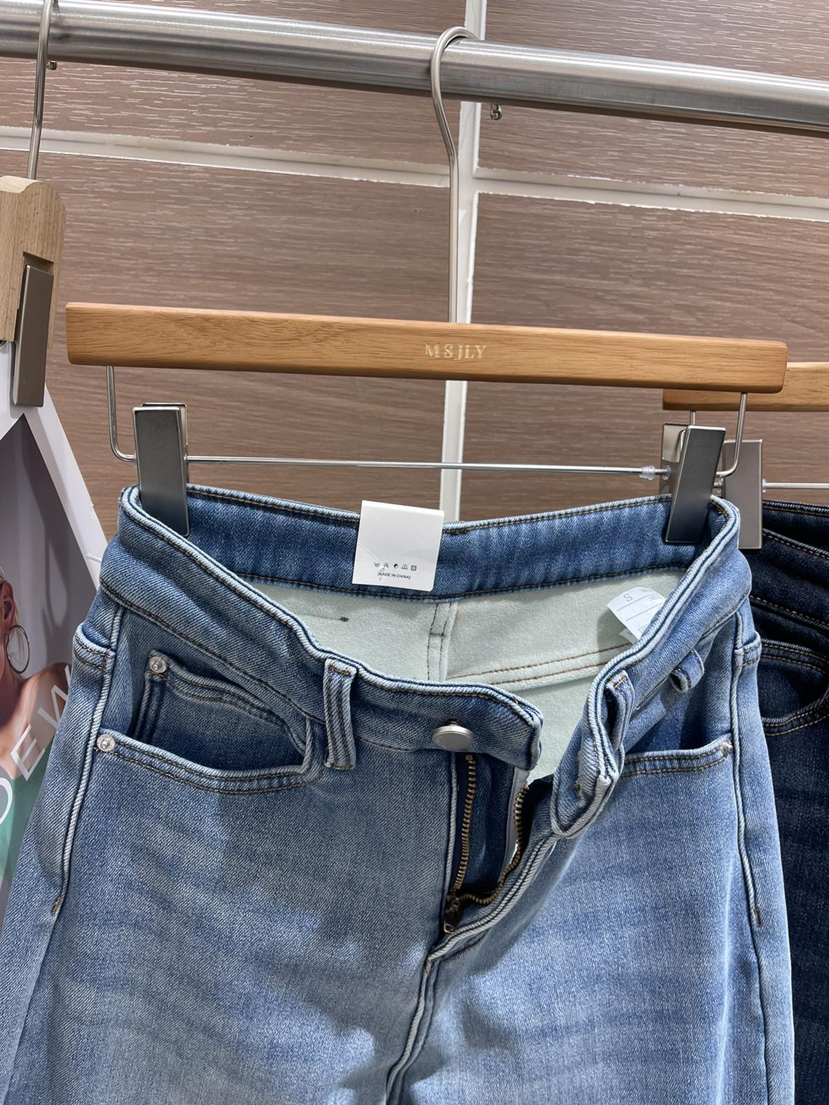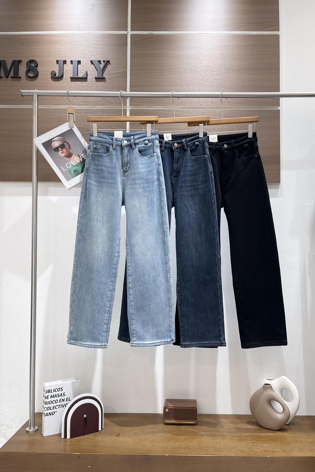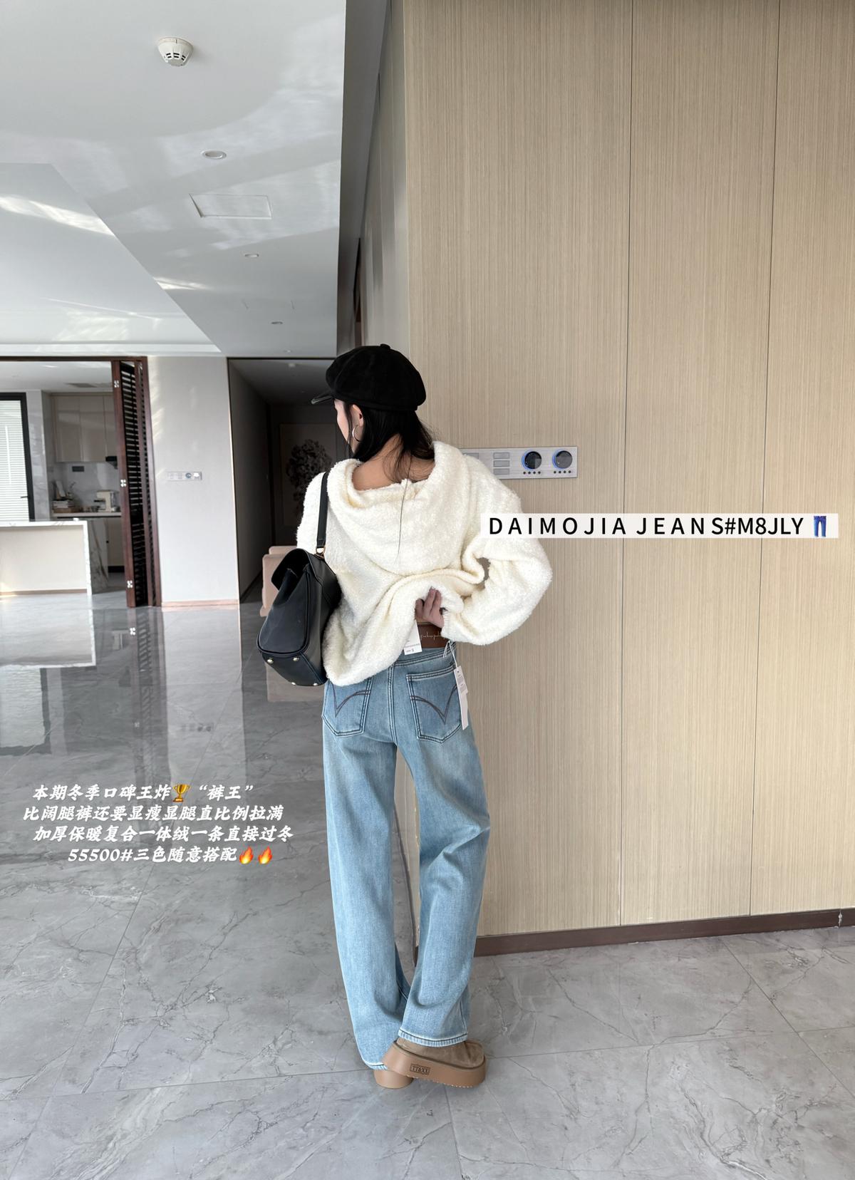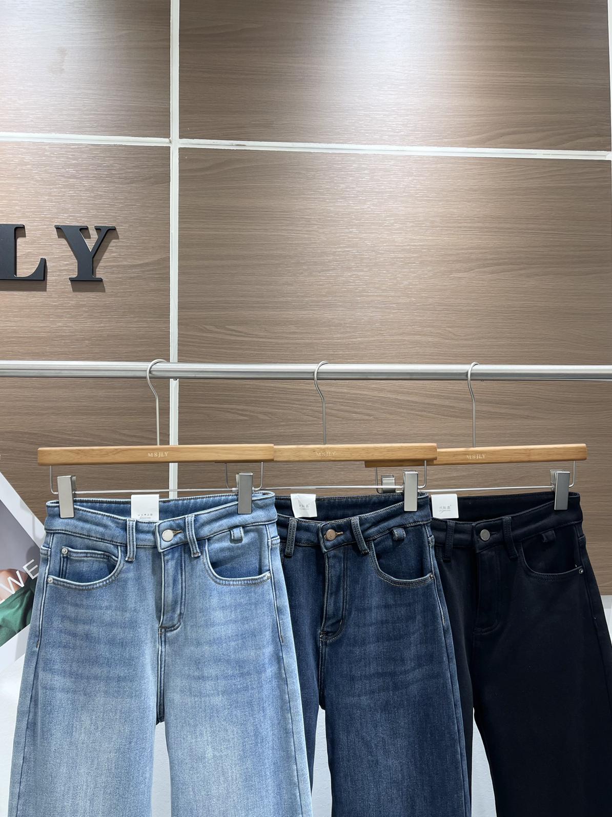 【C7538】冬季保暖加厚複合絨三色可選後口袋撞色繡線彈力窄版直筒褲牛仔褲