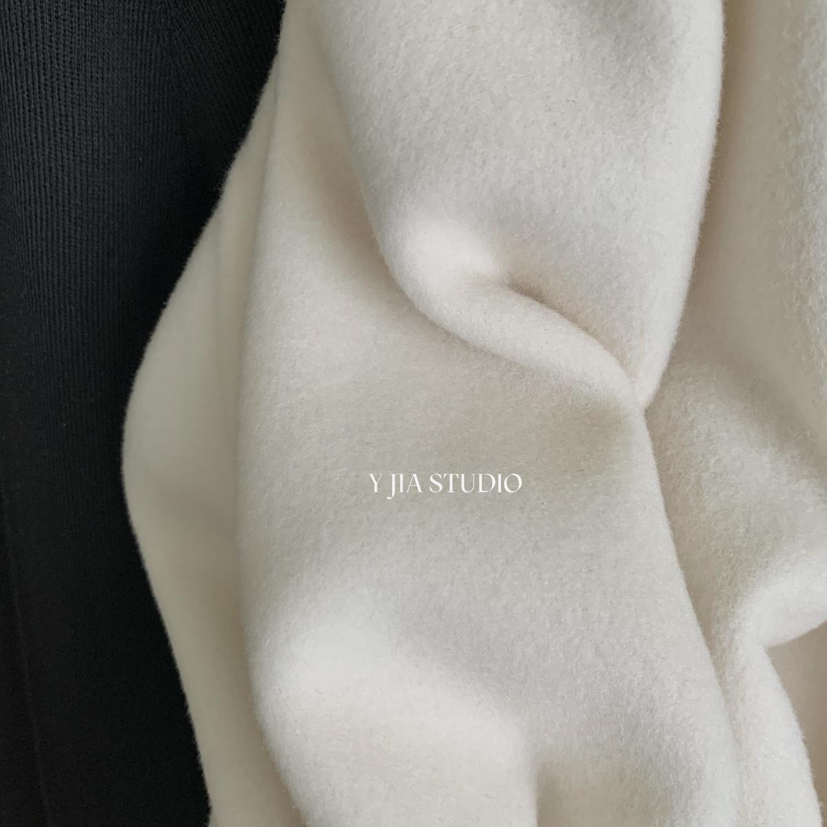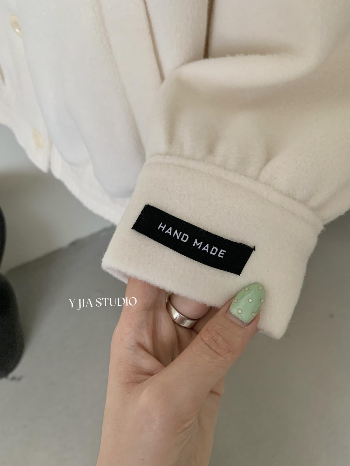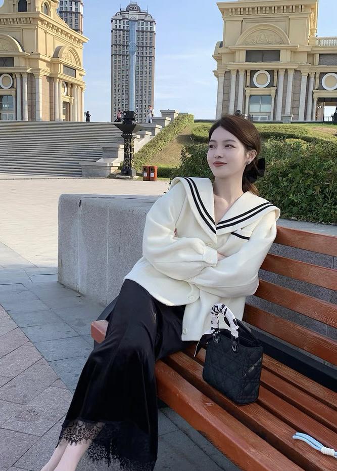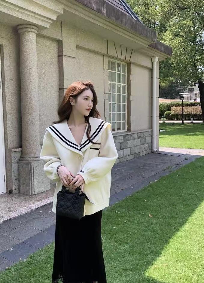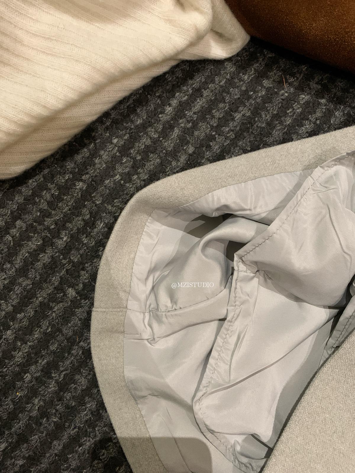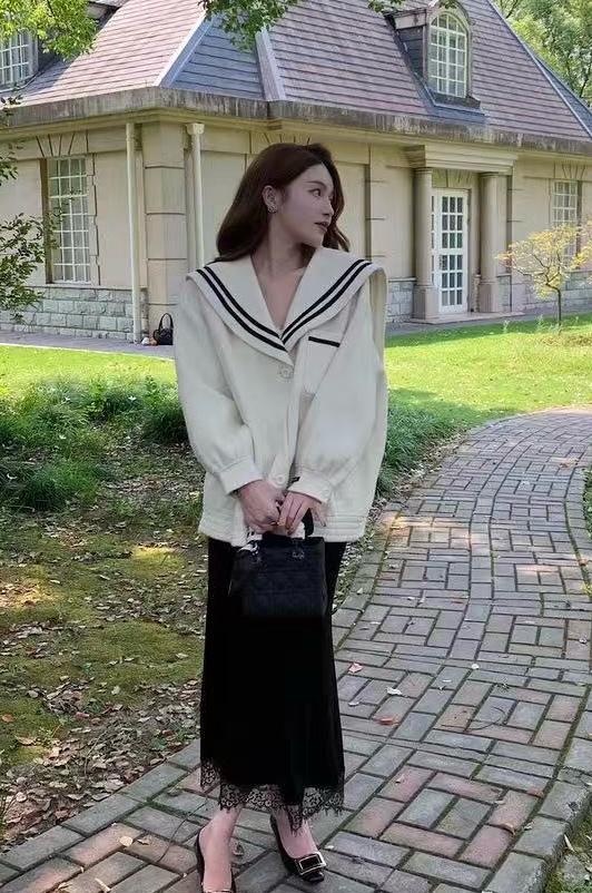 【C7543】miu系海軍領寬鬆顯瘦撞色毛呢短外套