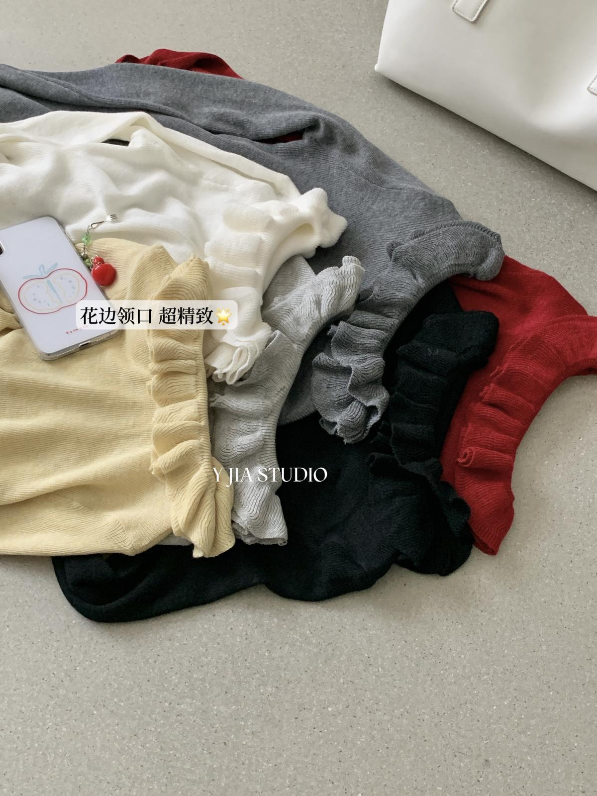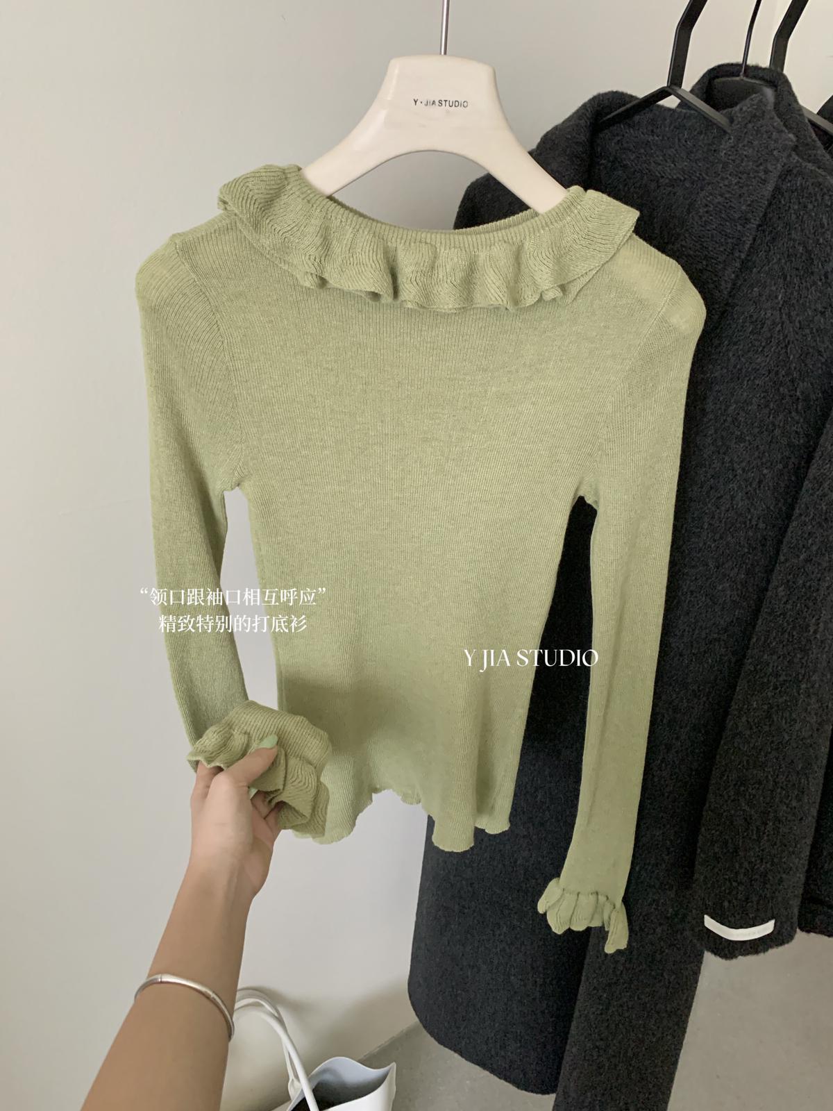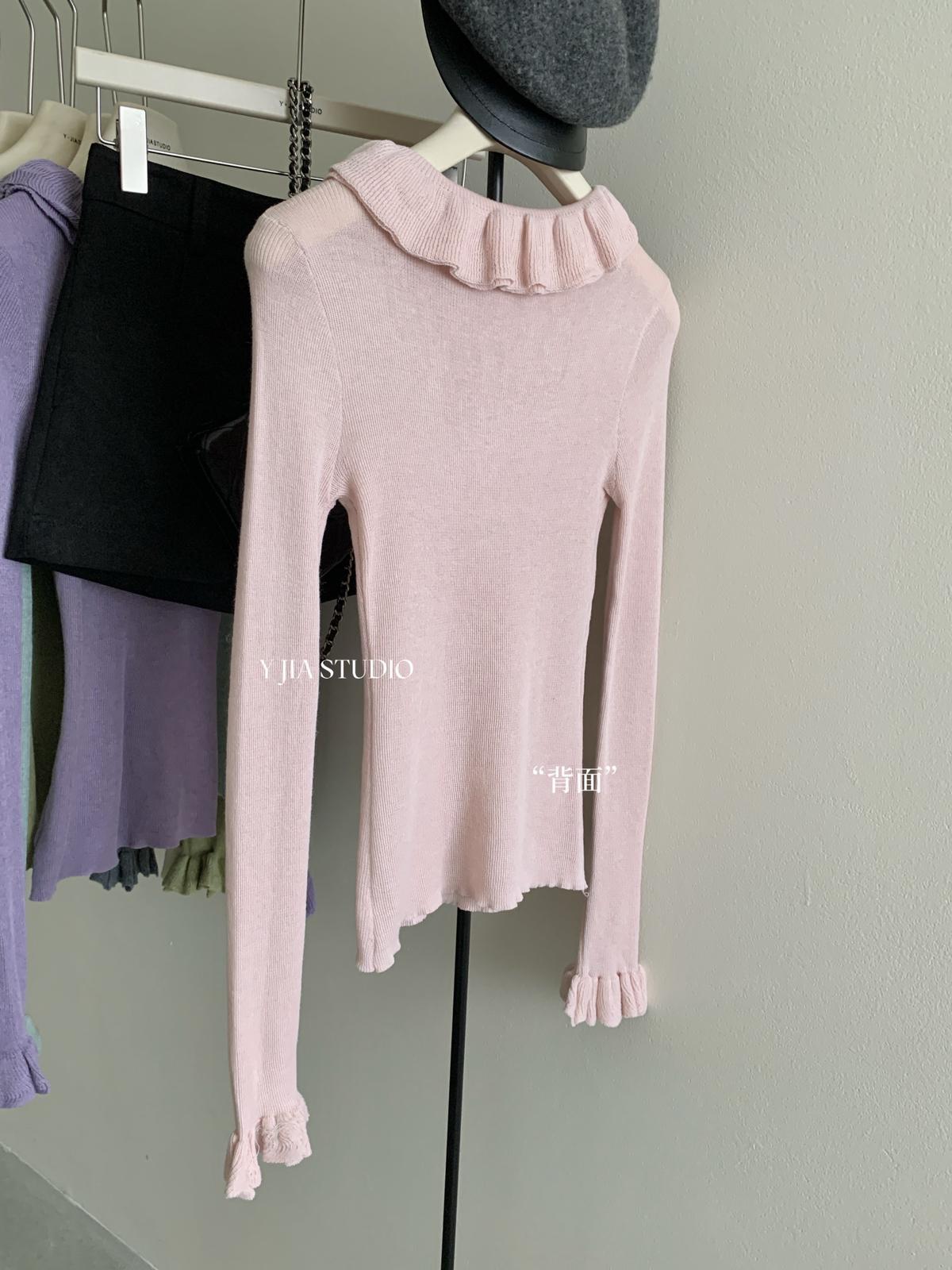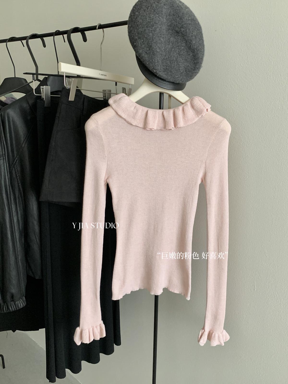 【C7544】13色 花邊領簡約純色修身顯瘦打底衫針織衫