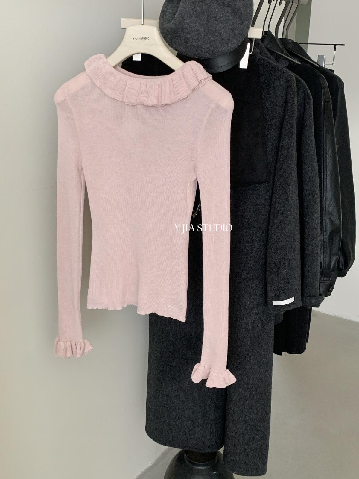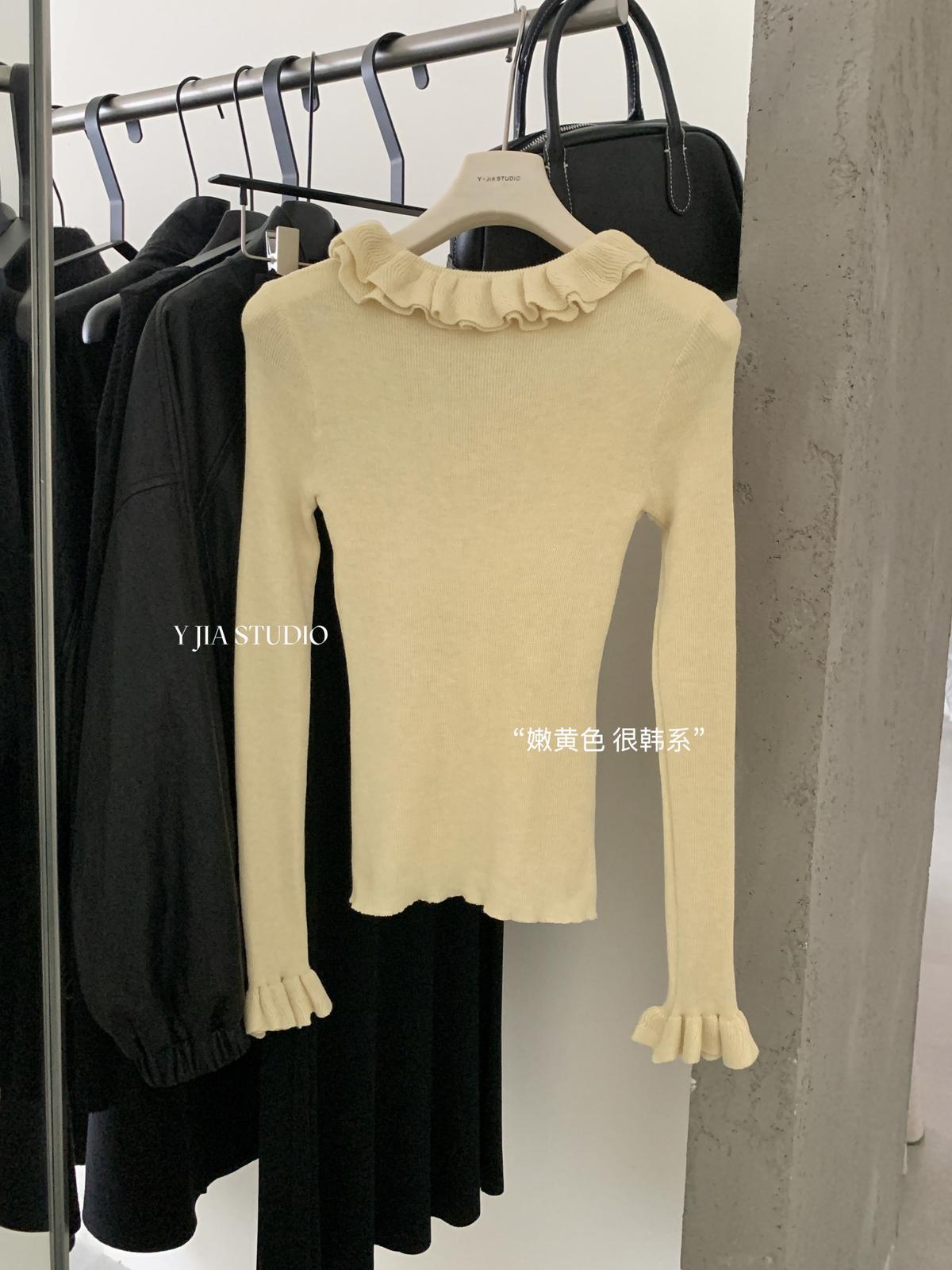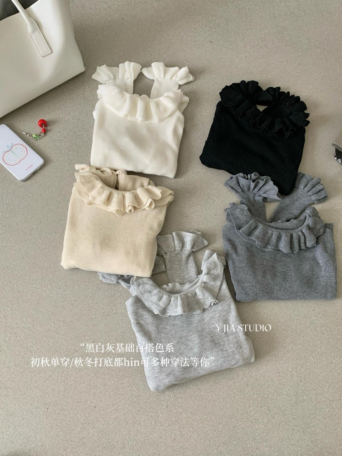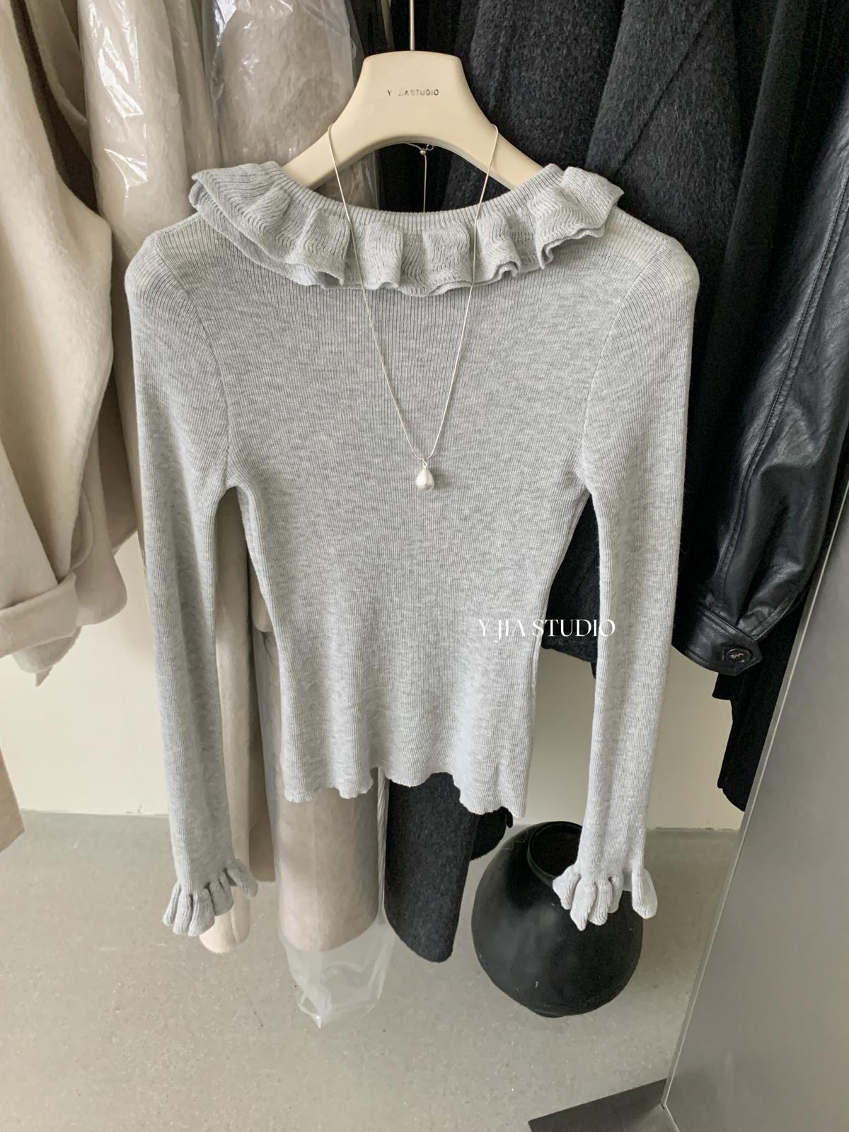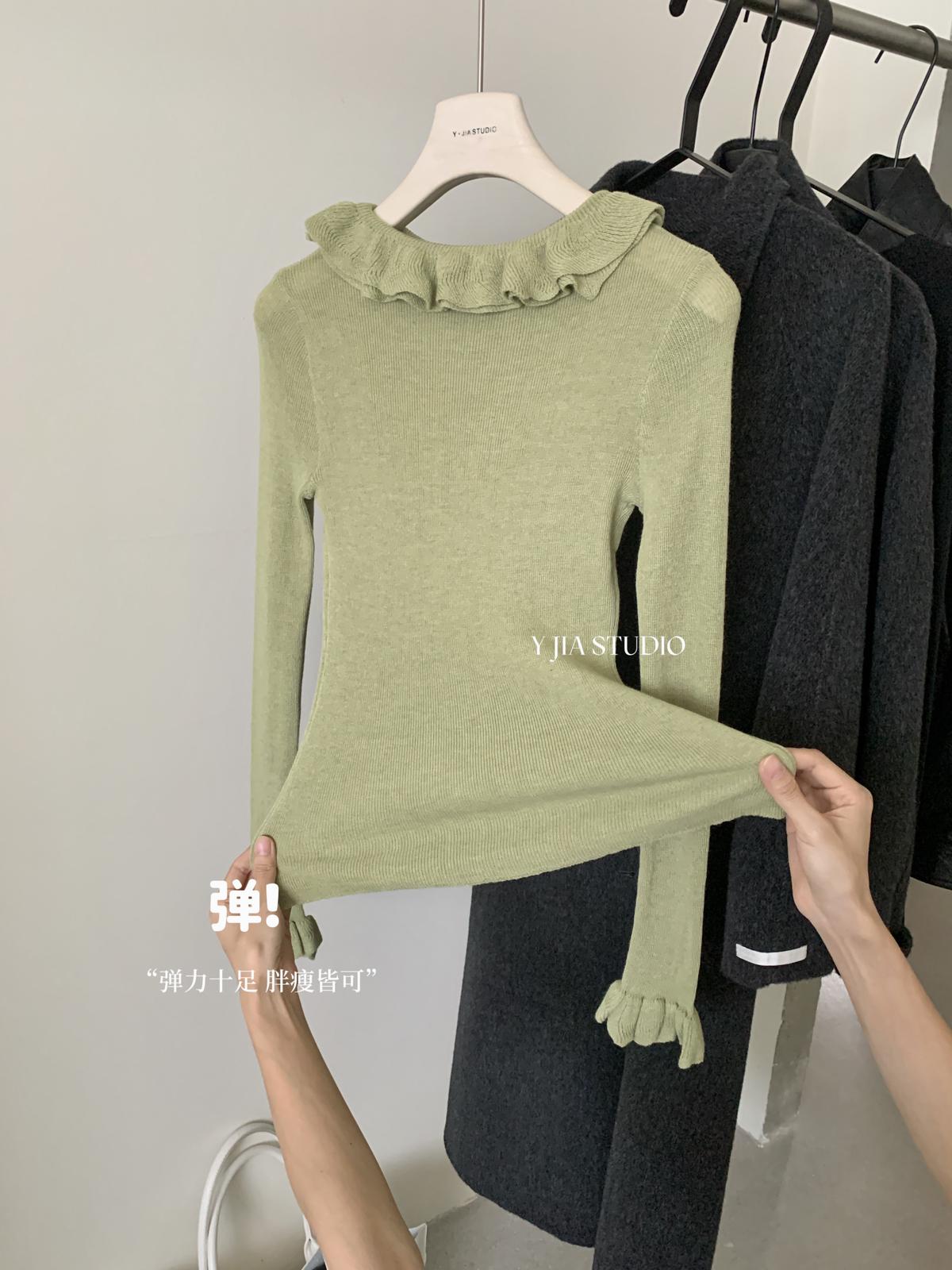 【C7544】13色 花邊領簡約純色修身顯瘦打底衫針織衫