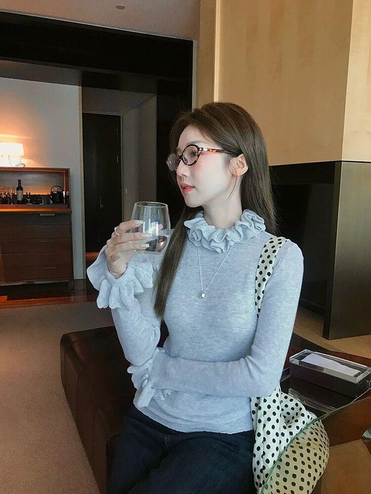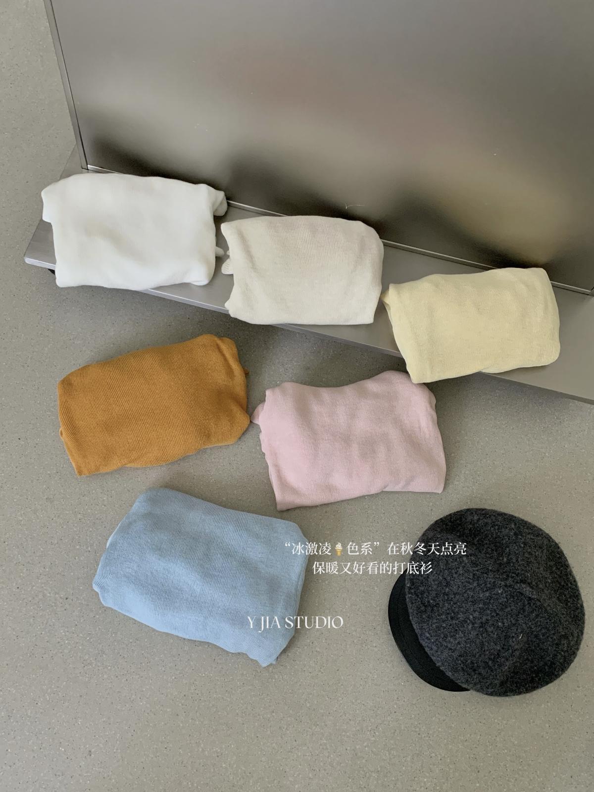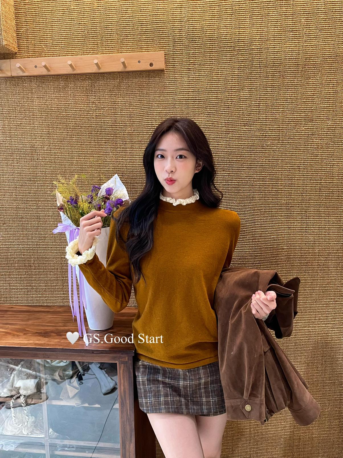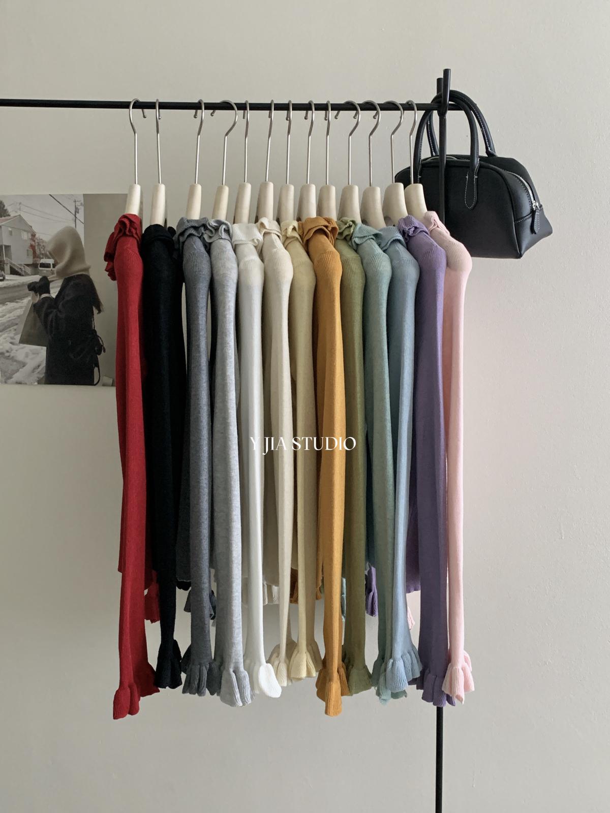 【C7544】13色 花邊領簡約純色修身顯瘦打底衫針織衫