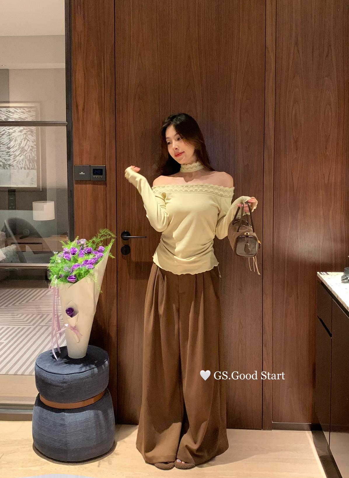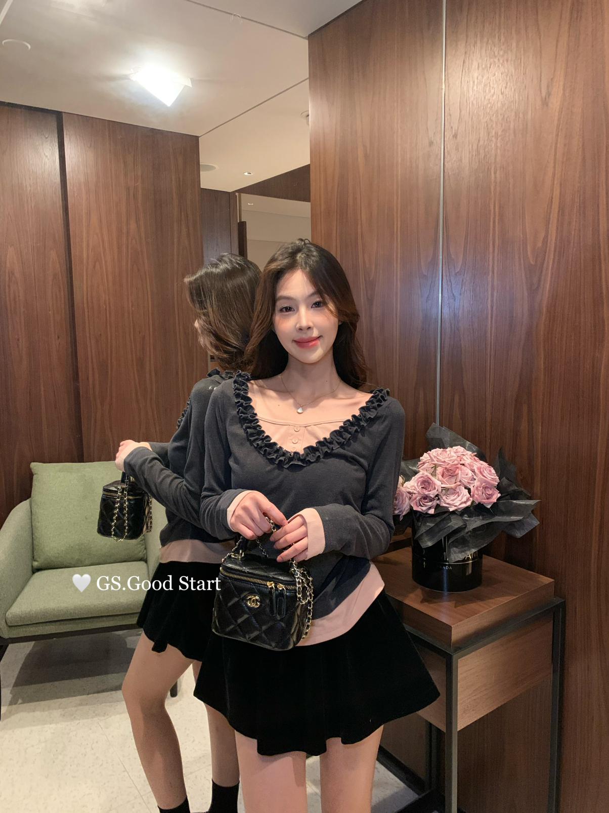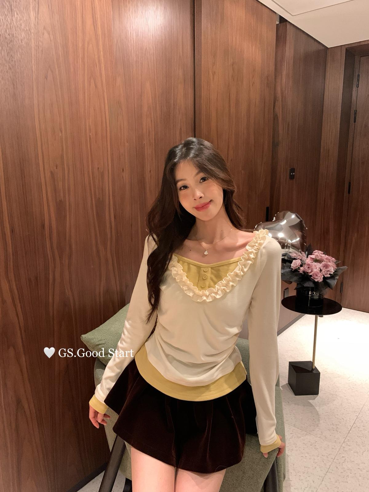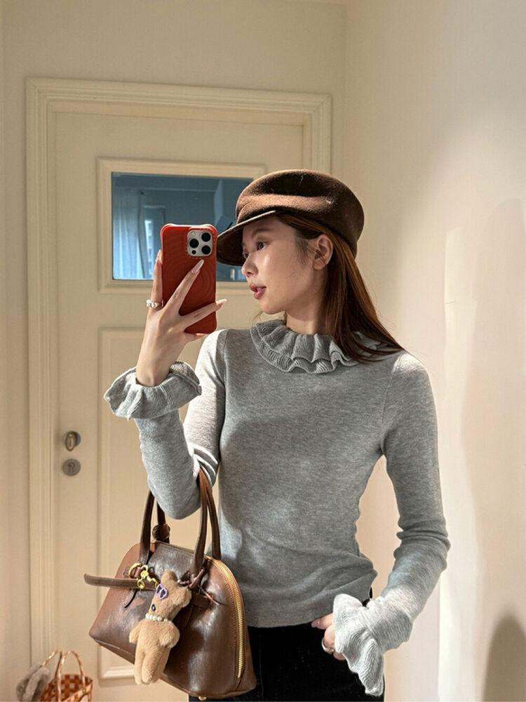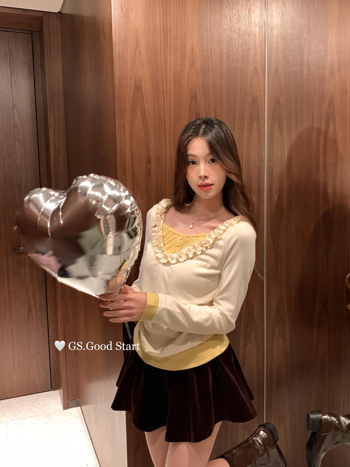 【C7544】13色 花邊領簡約純色修身顯瘦打底衫針織衫