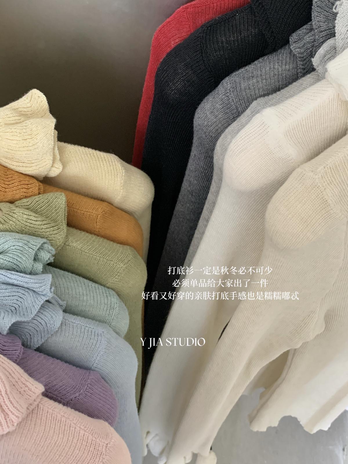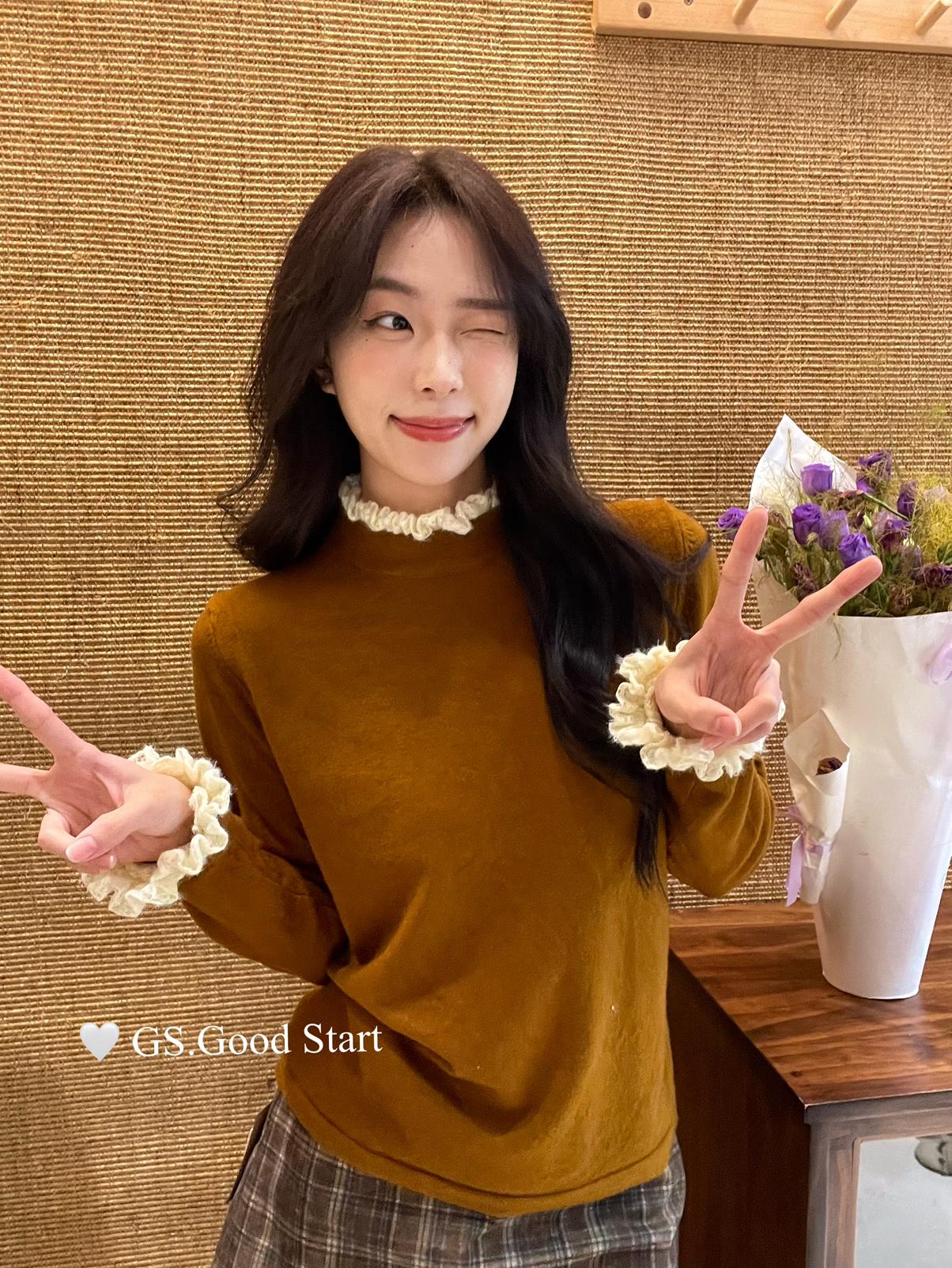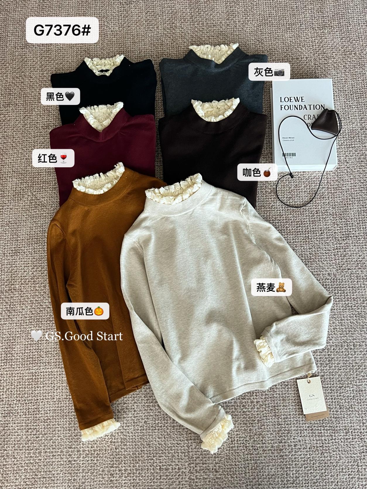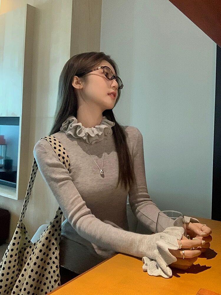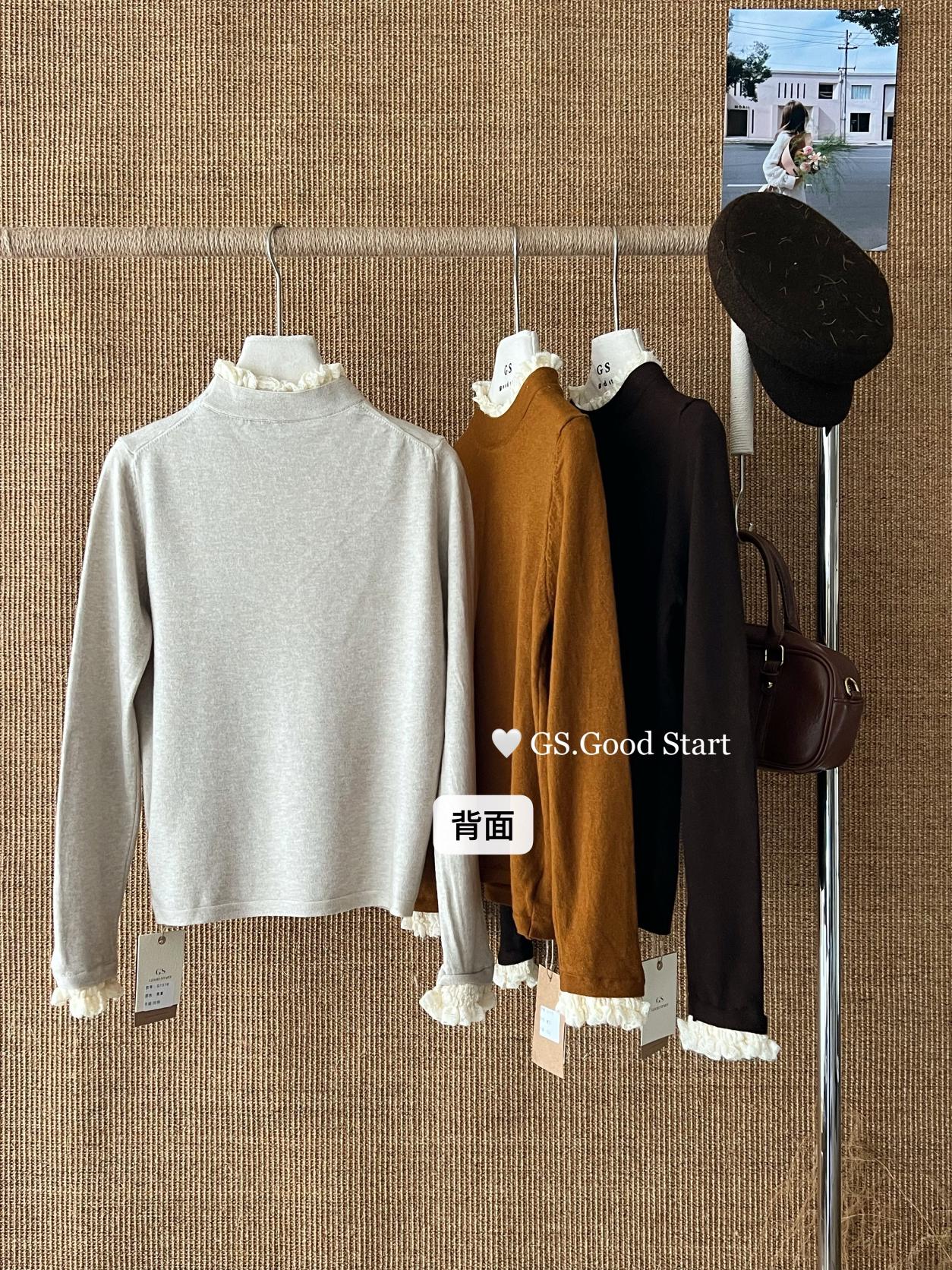 【C7560】面料超軟糯~好穿!秋法式氣質蕾絲花邊高領打底針織小衫