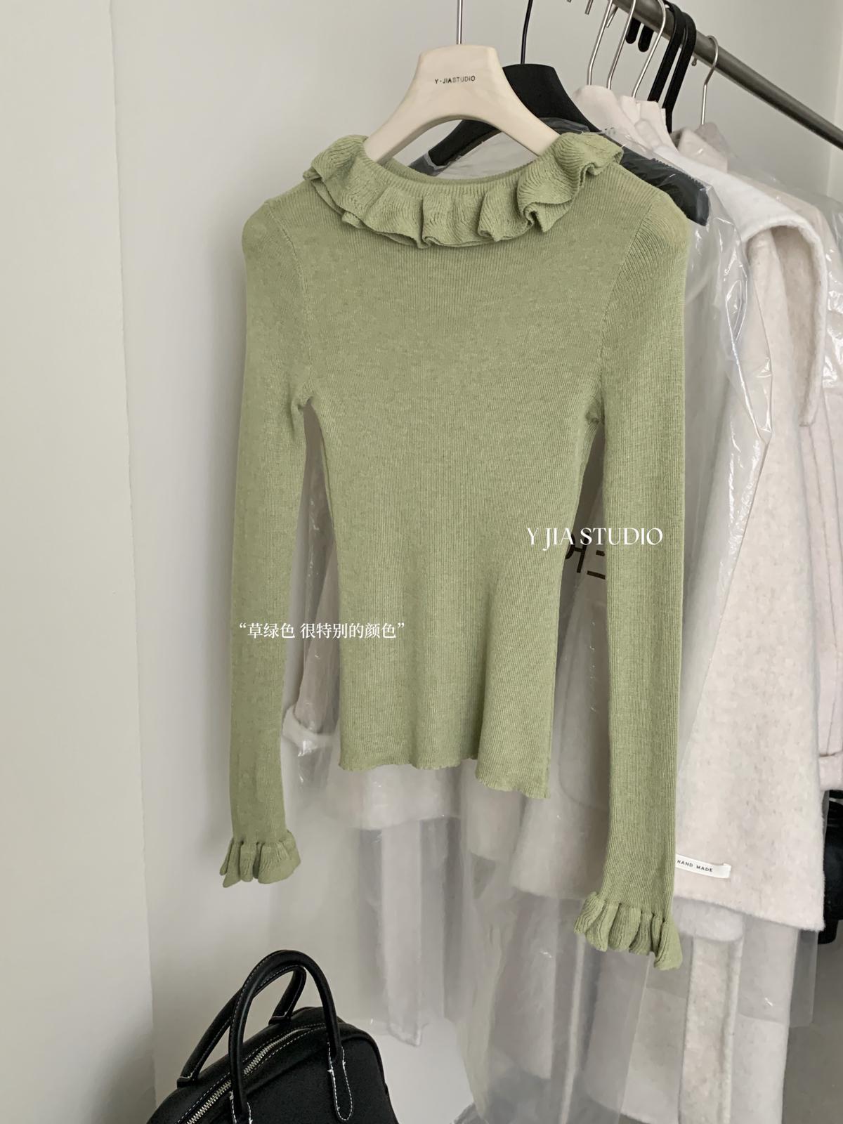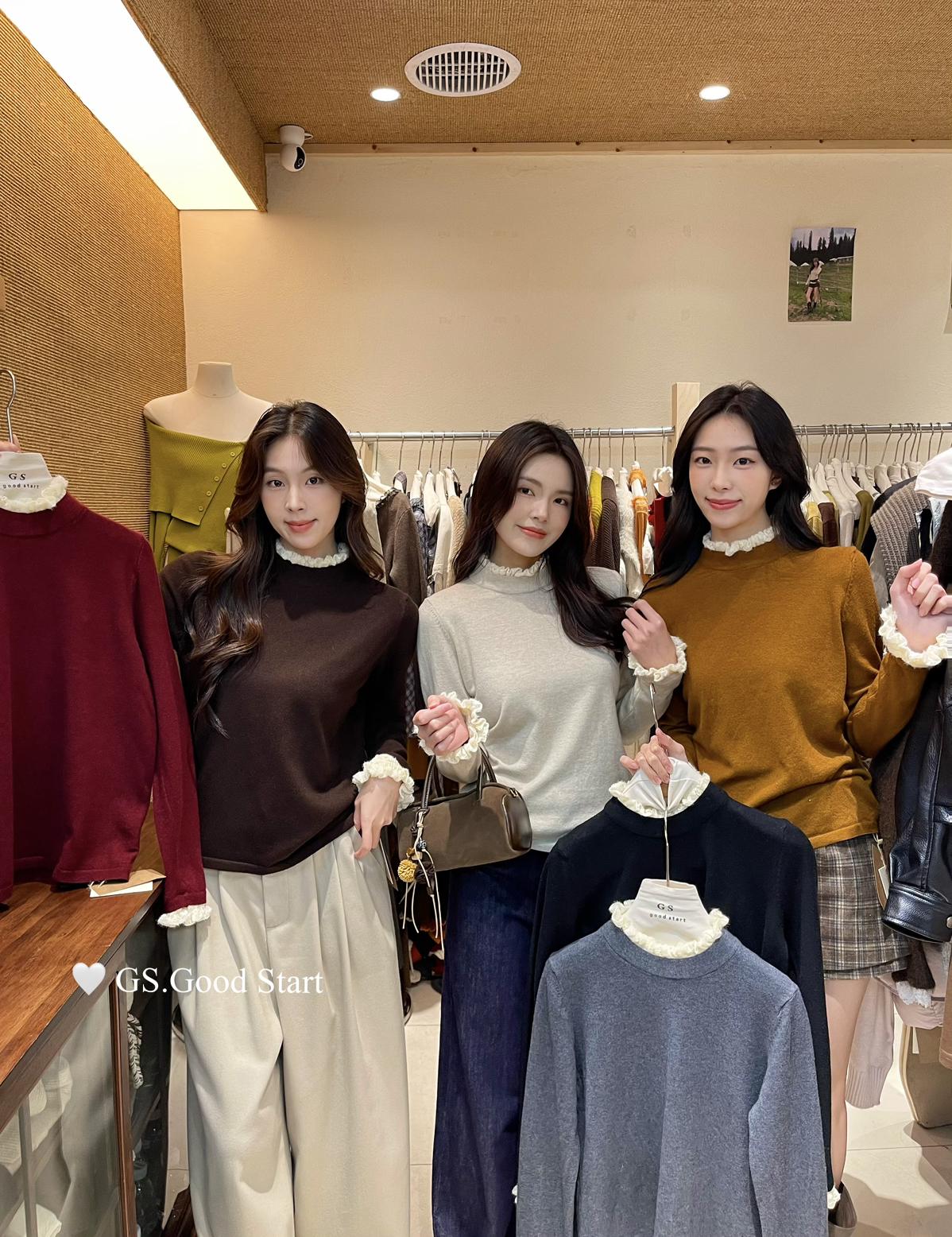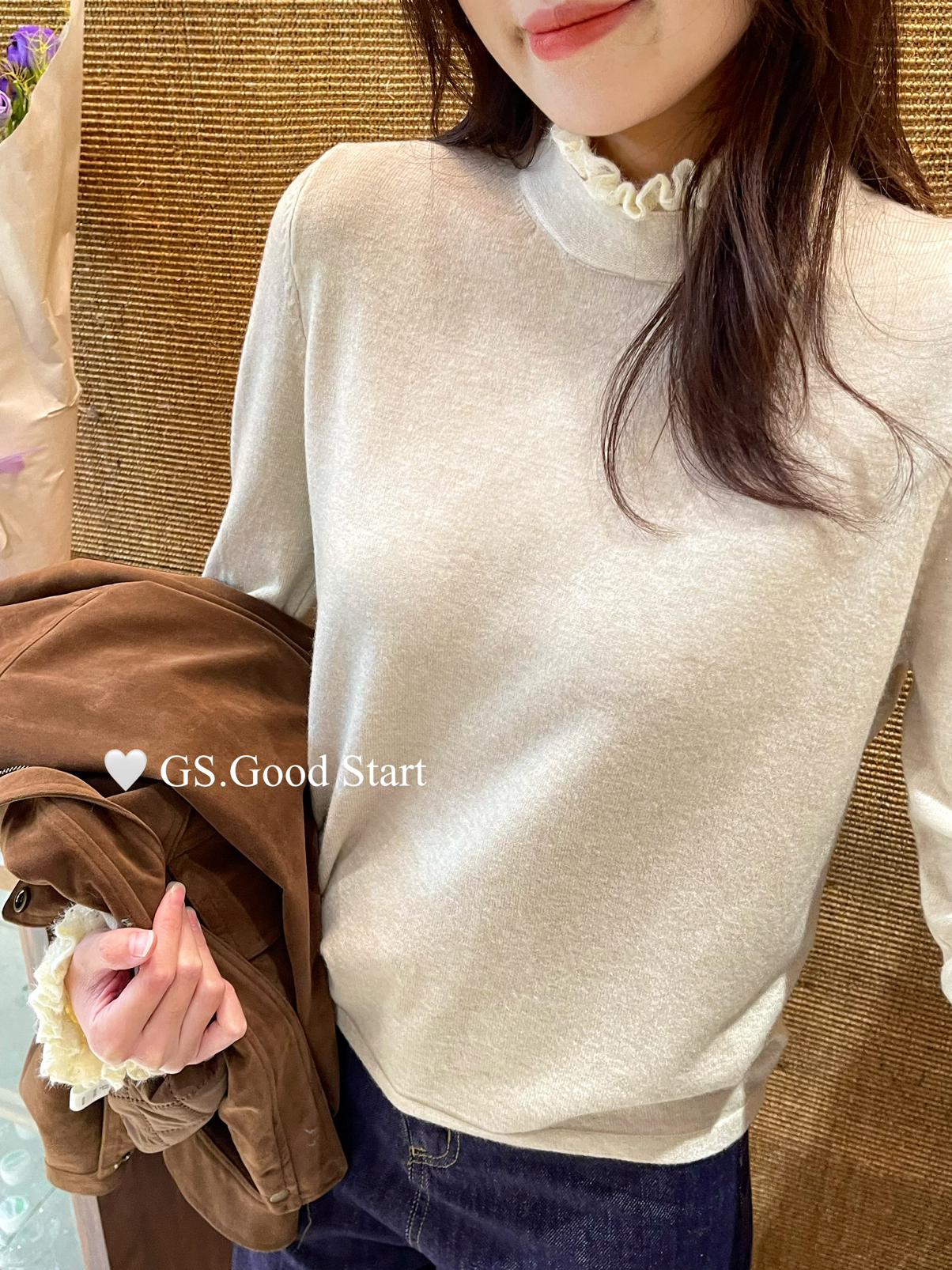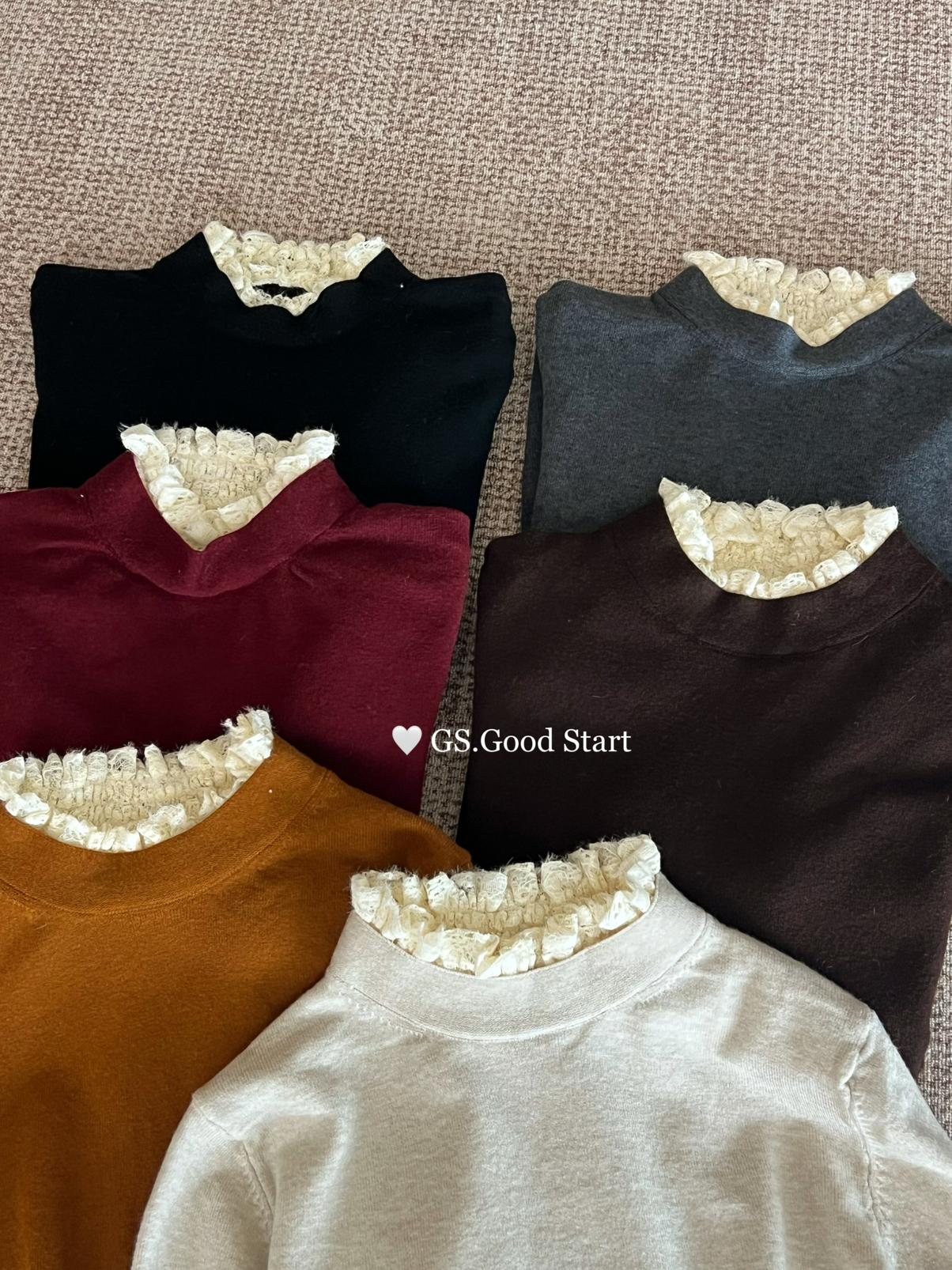 【C7560】面料超軟糯~好穿!秋法式氣質蕾絲花邊高領打底針織小衫