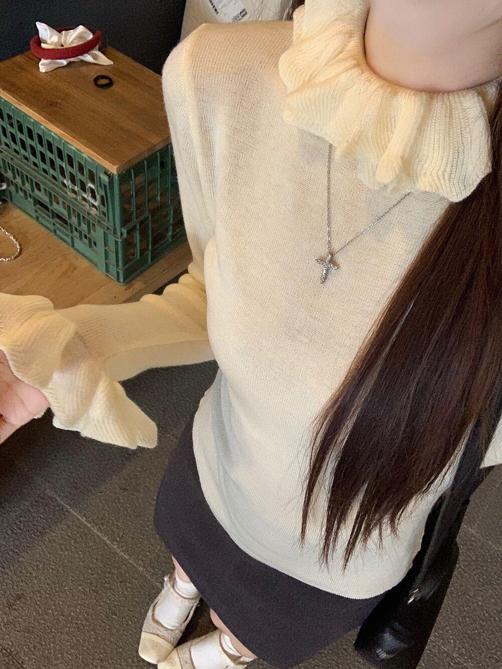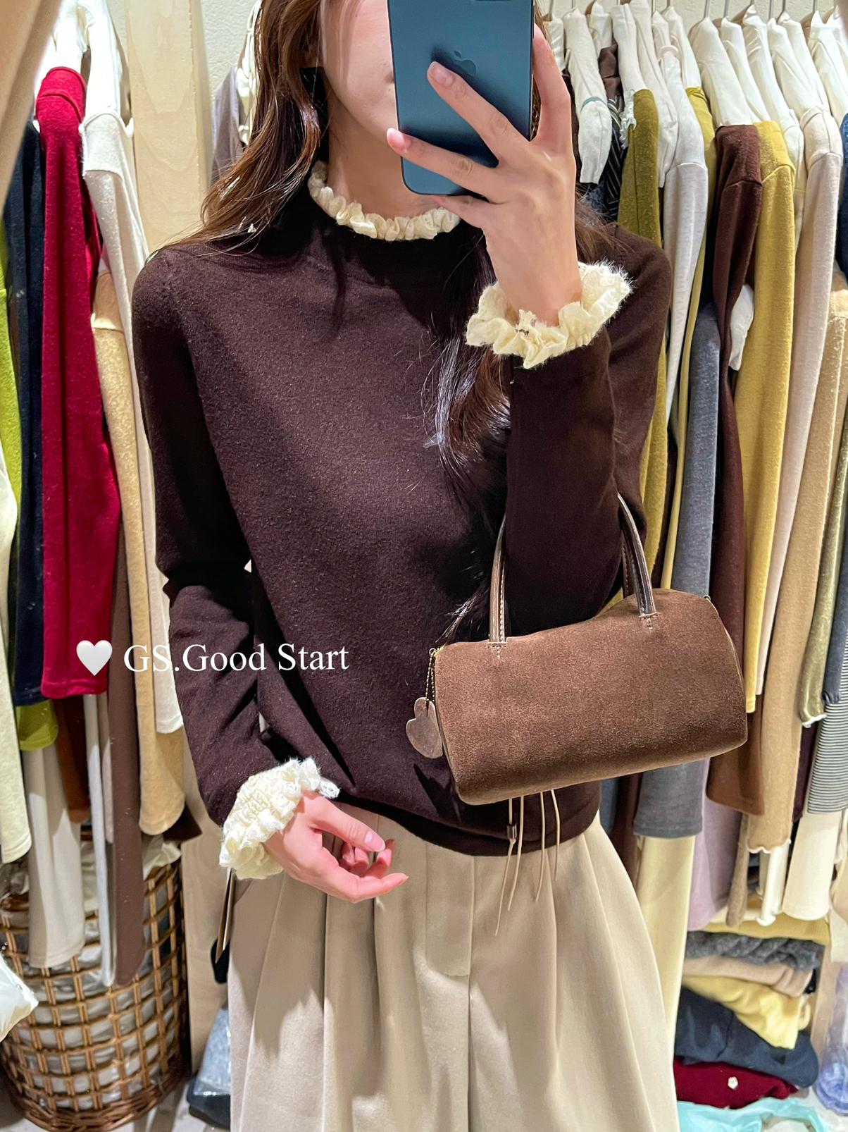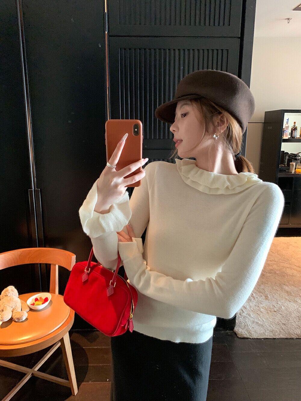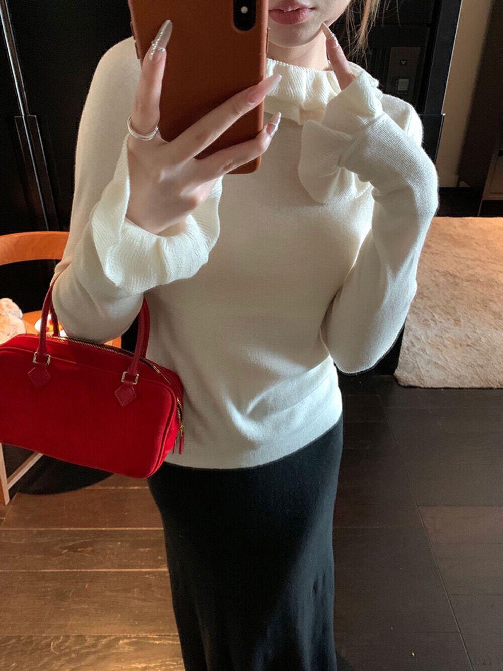 【C7560】面料超軟糯~好穿!秋法式氣質蕾絲花邊高領打底針織小衫