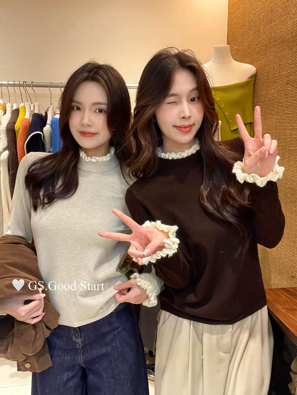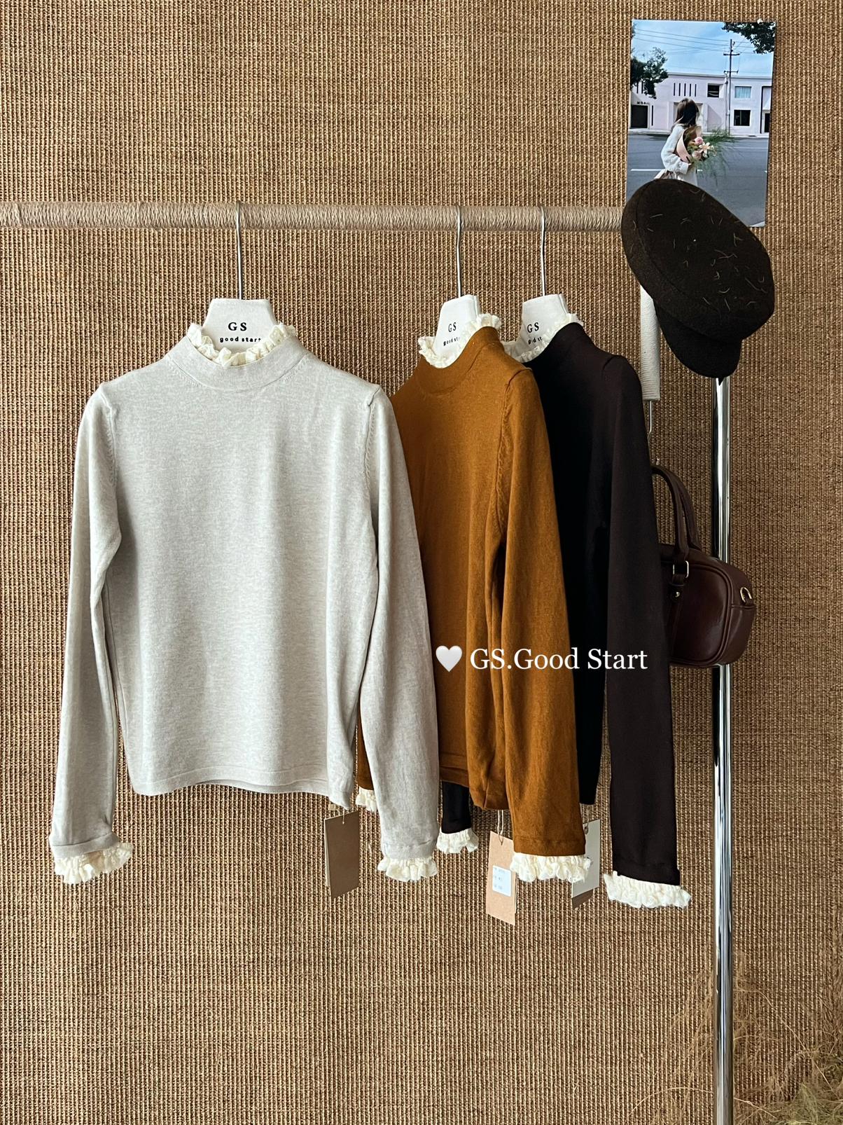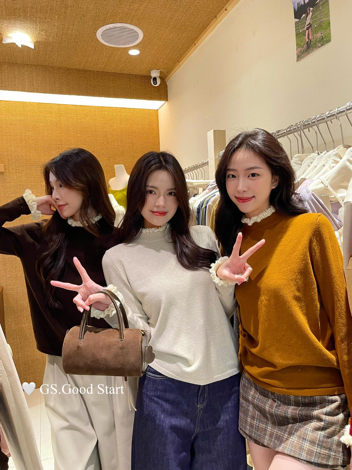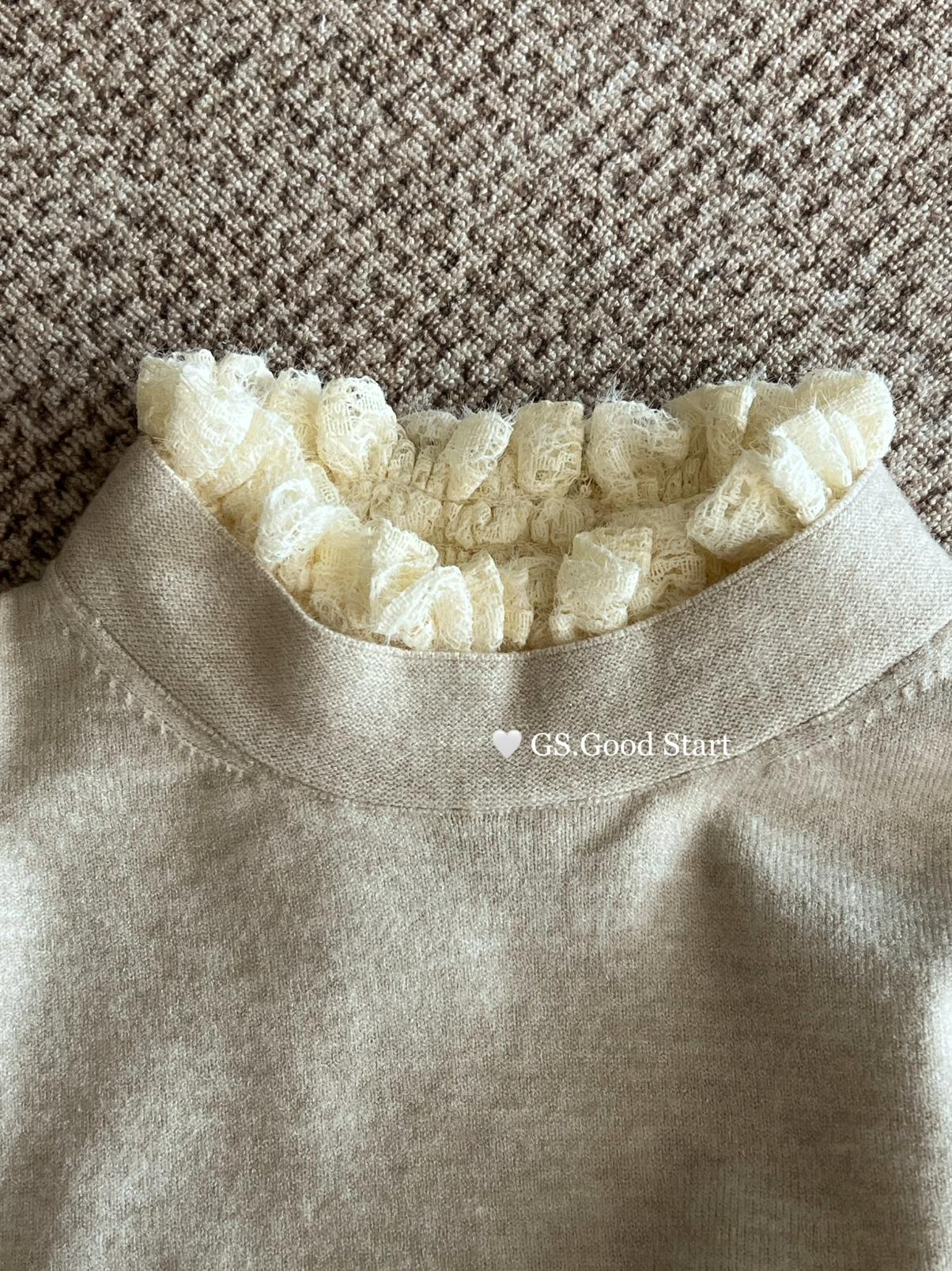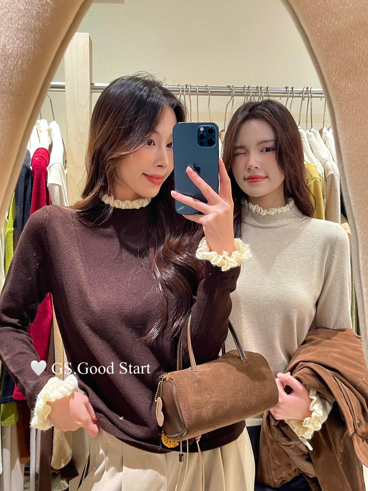 【C7560】面料超軟糯~好穿!秋法式氣質蕾絲花邊高領打底針織小衫