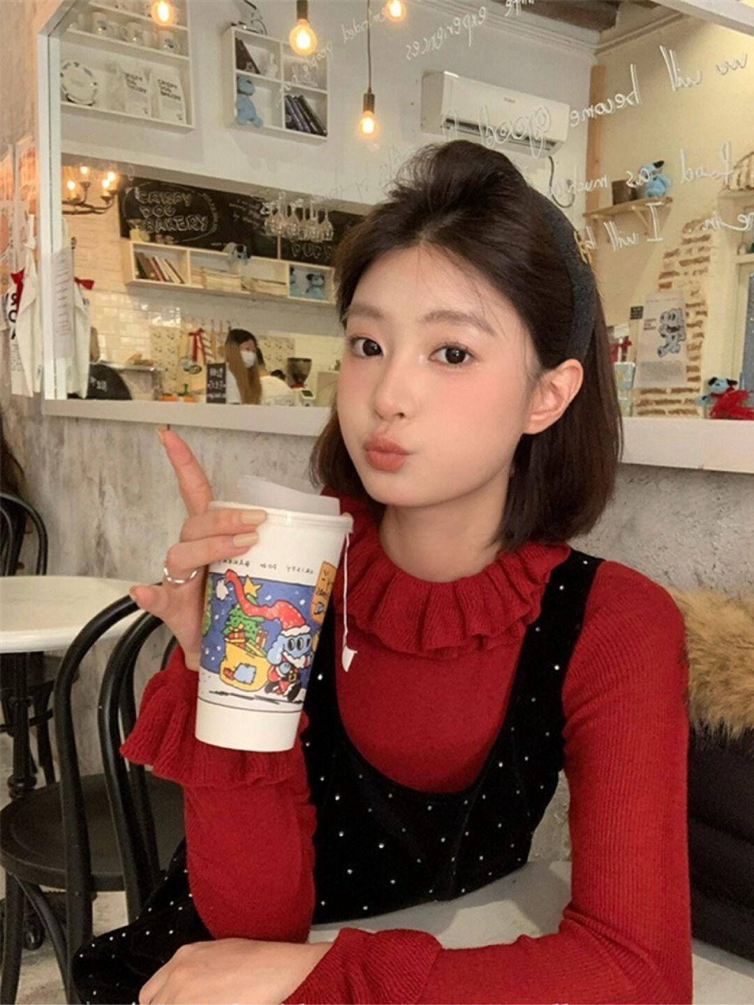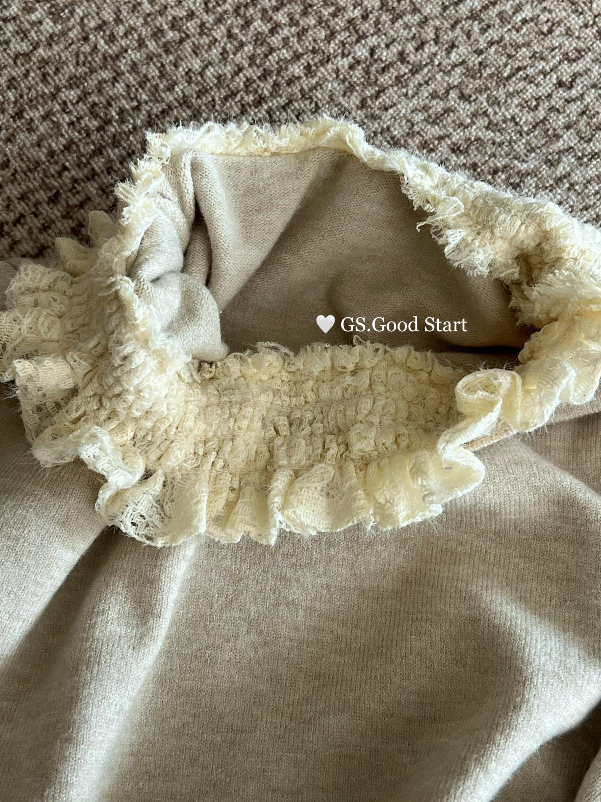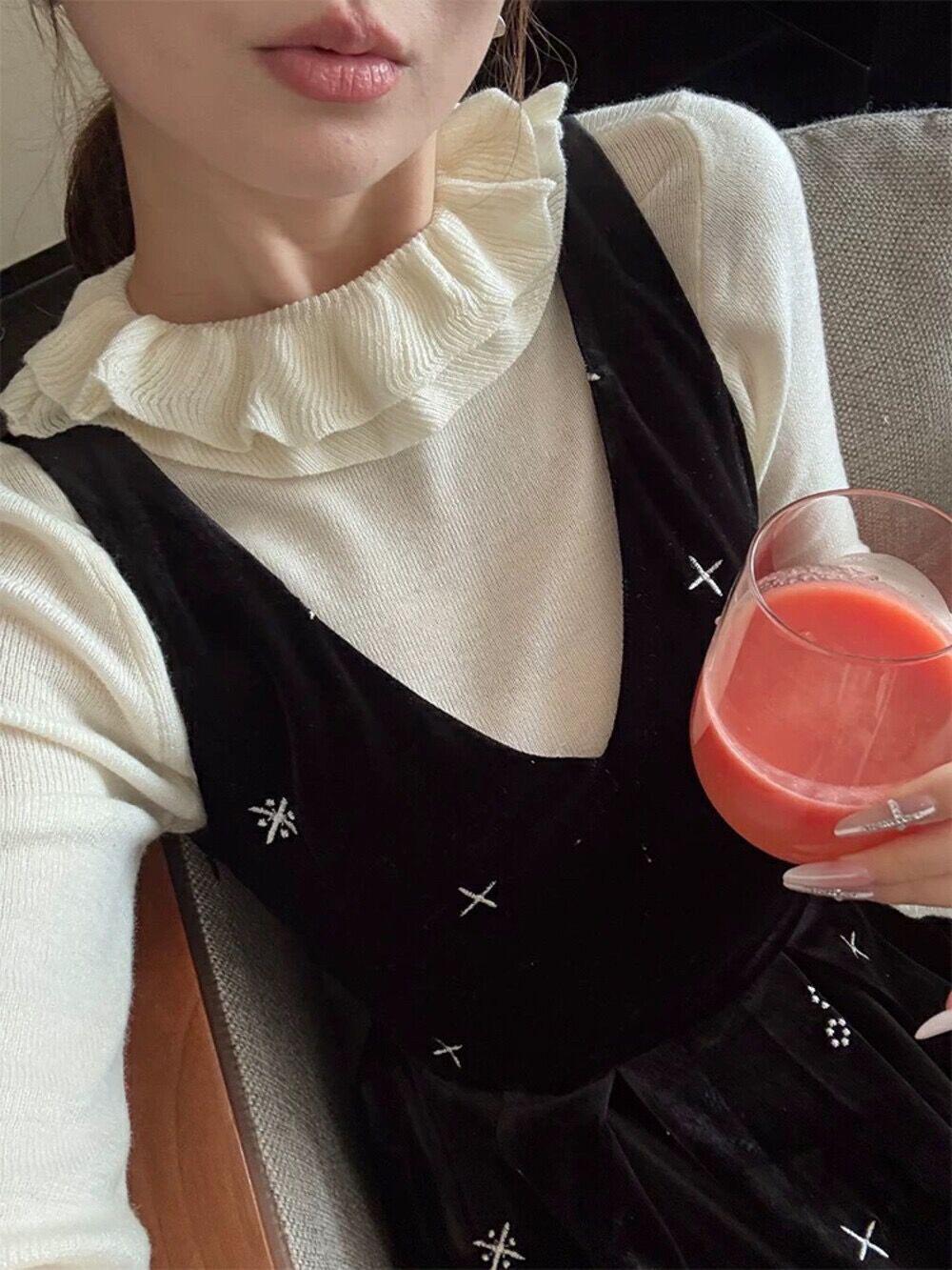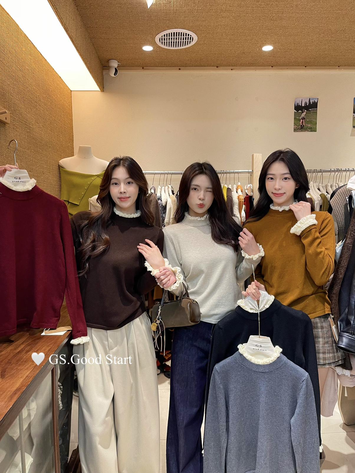 【C7560】面料超軟糯~好穿!秋法式氣質蕾絲花邊高領打底針織小衫