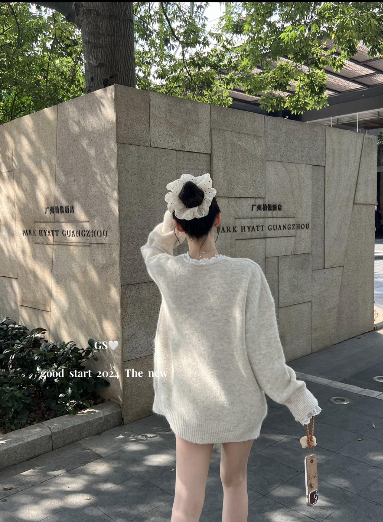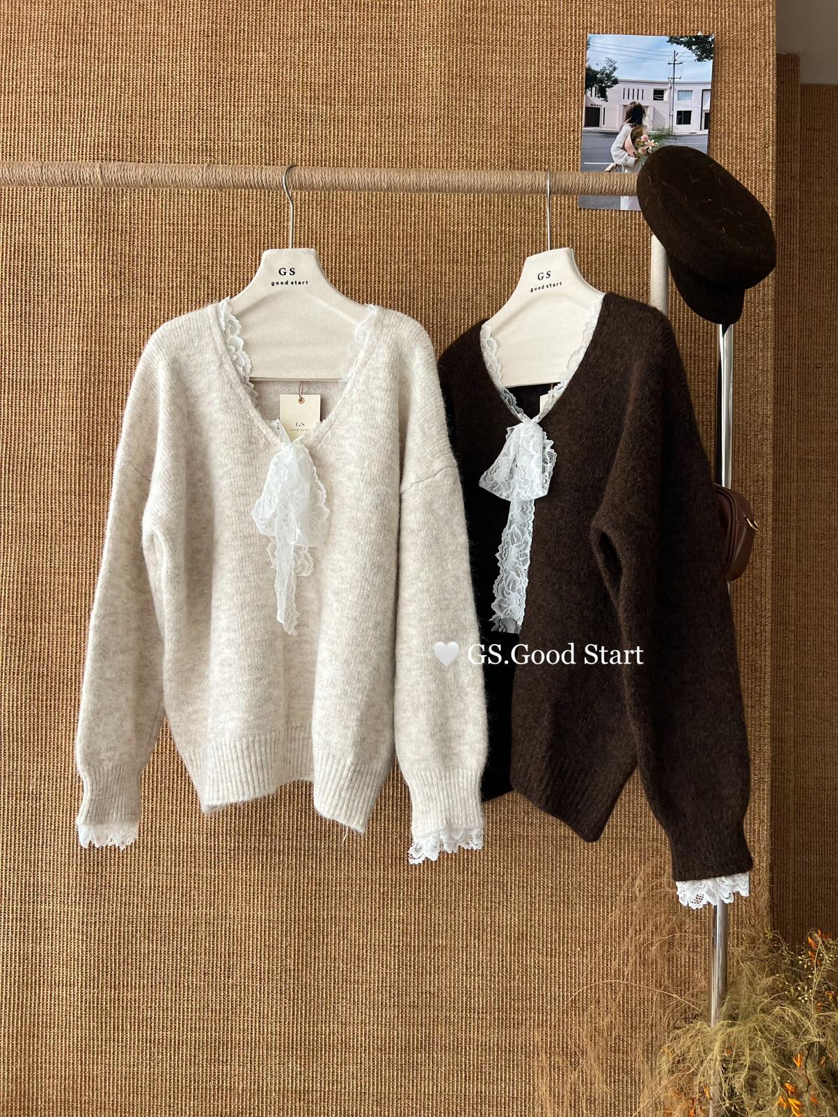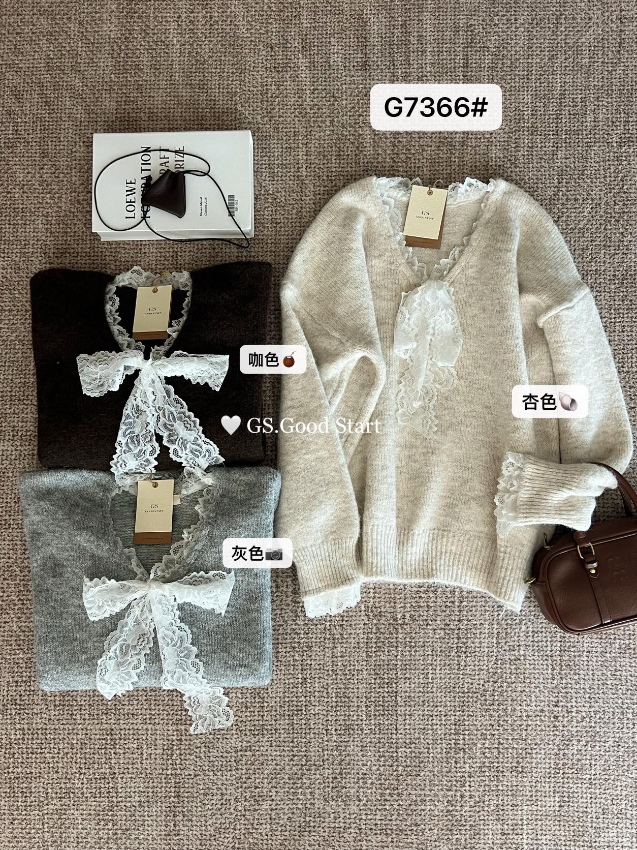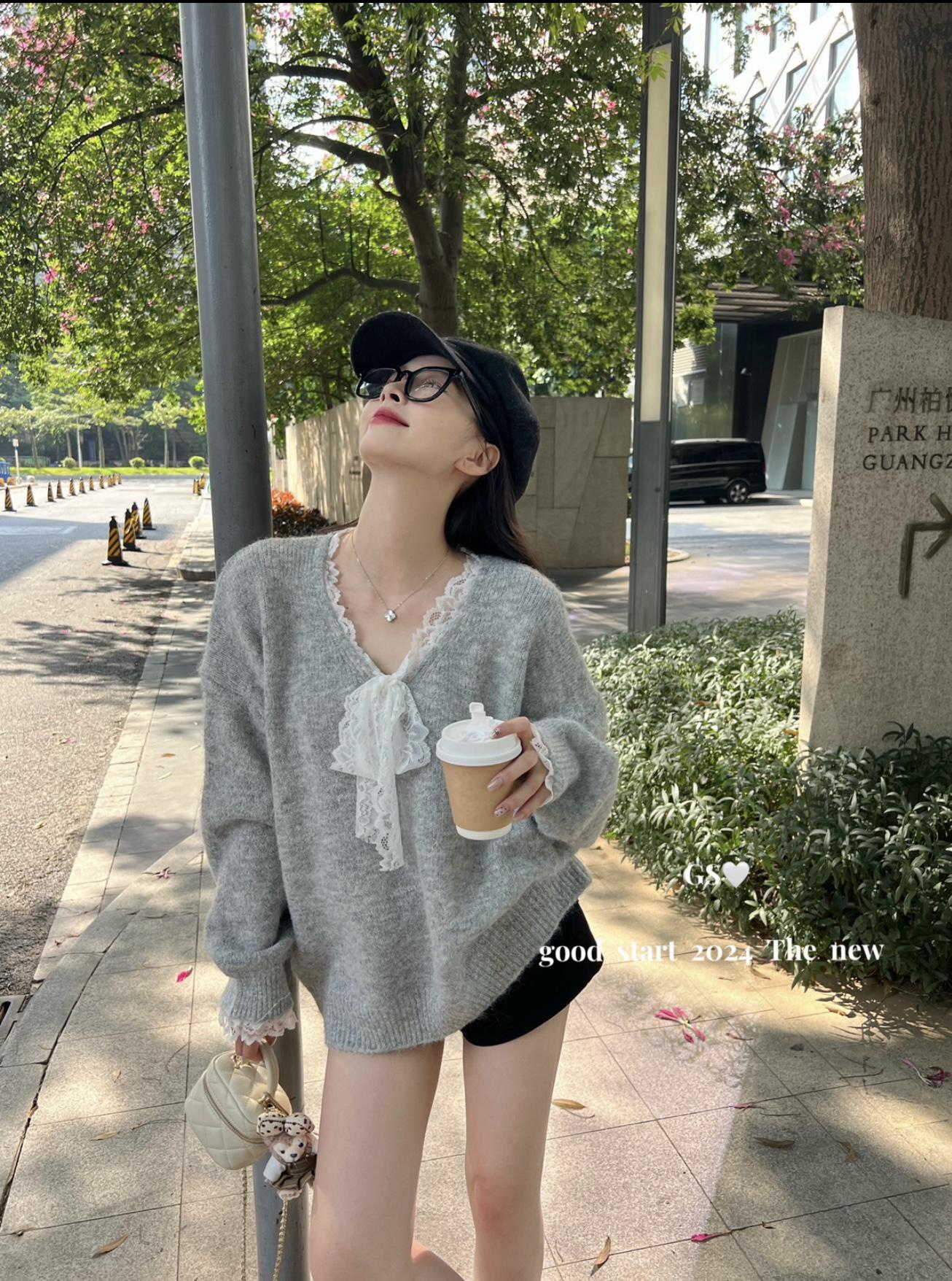 【C7559】香香爆款!pick一萬次~秋法式蕾絲蝴蝶結氛圍感寬鬆慵懶保暖毛衣