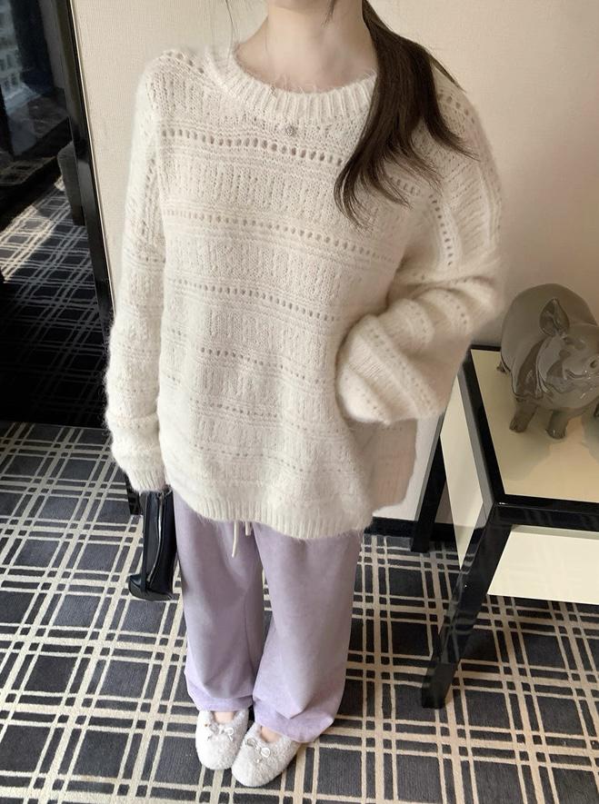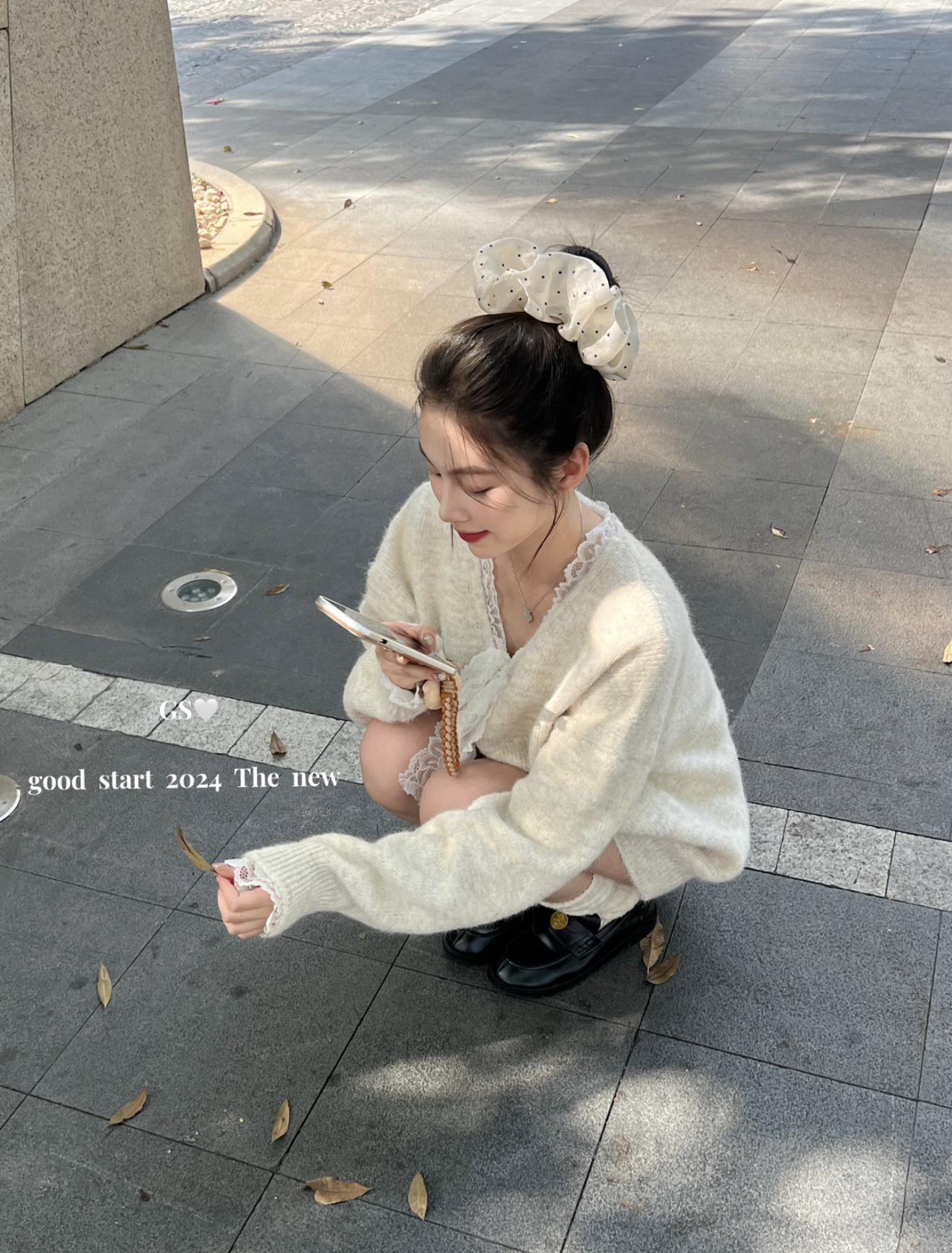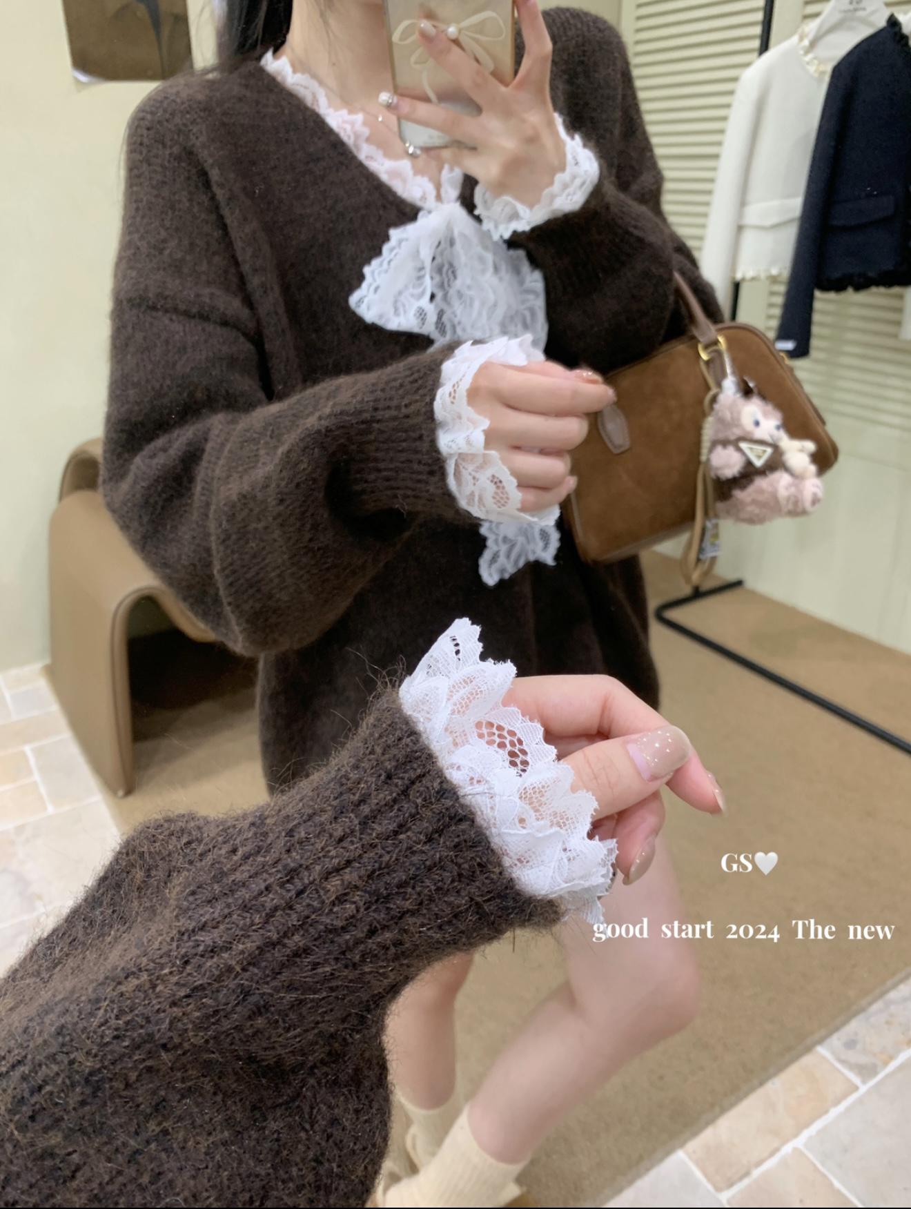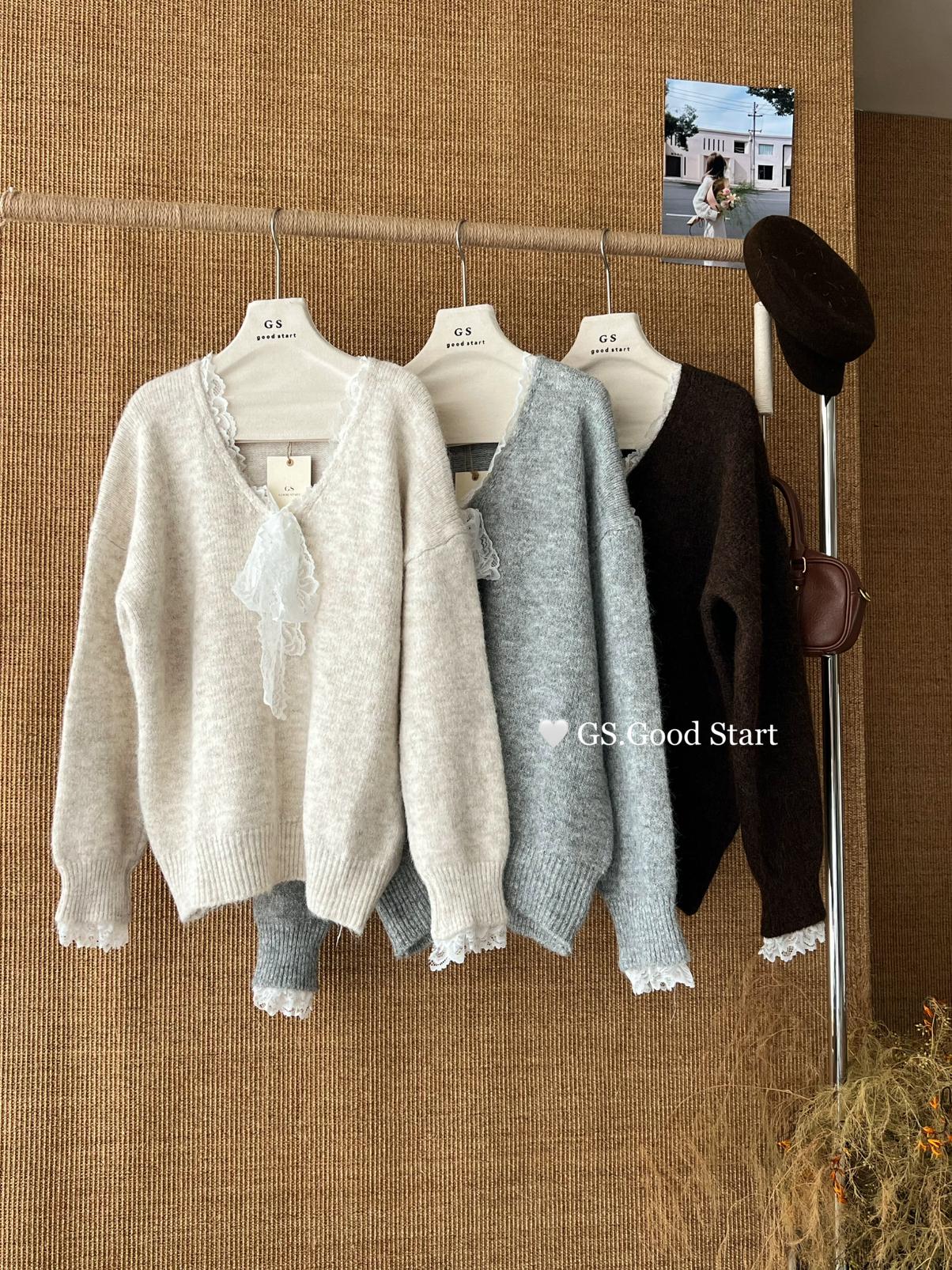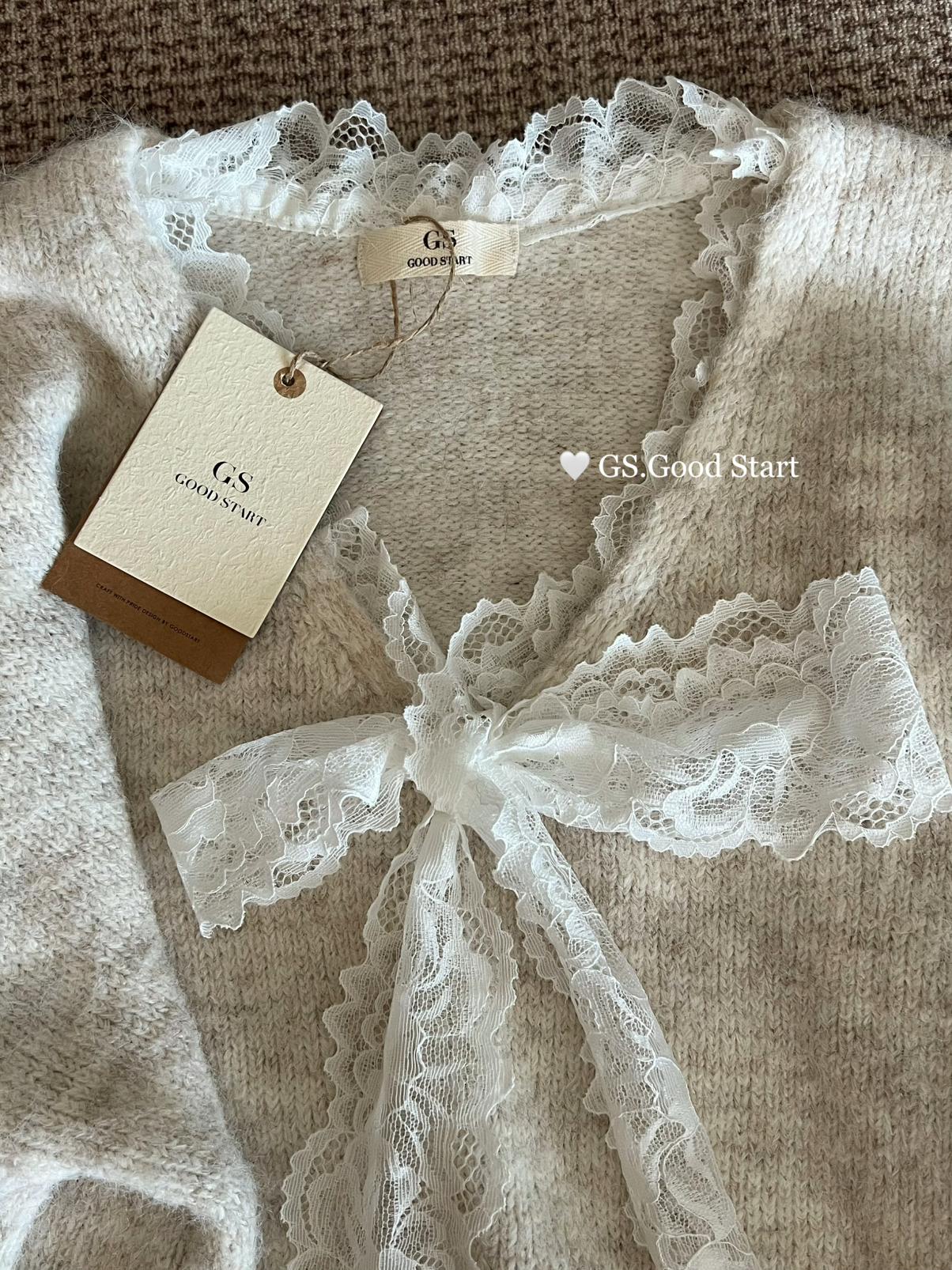【C7559】香香爆款!pick一萬次~秋法式蕾絲蝴蝶結氛圍感寬鬆慵懶保暖毛衣