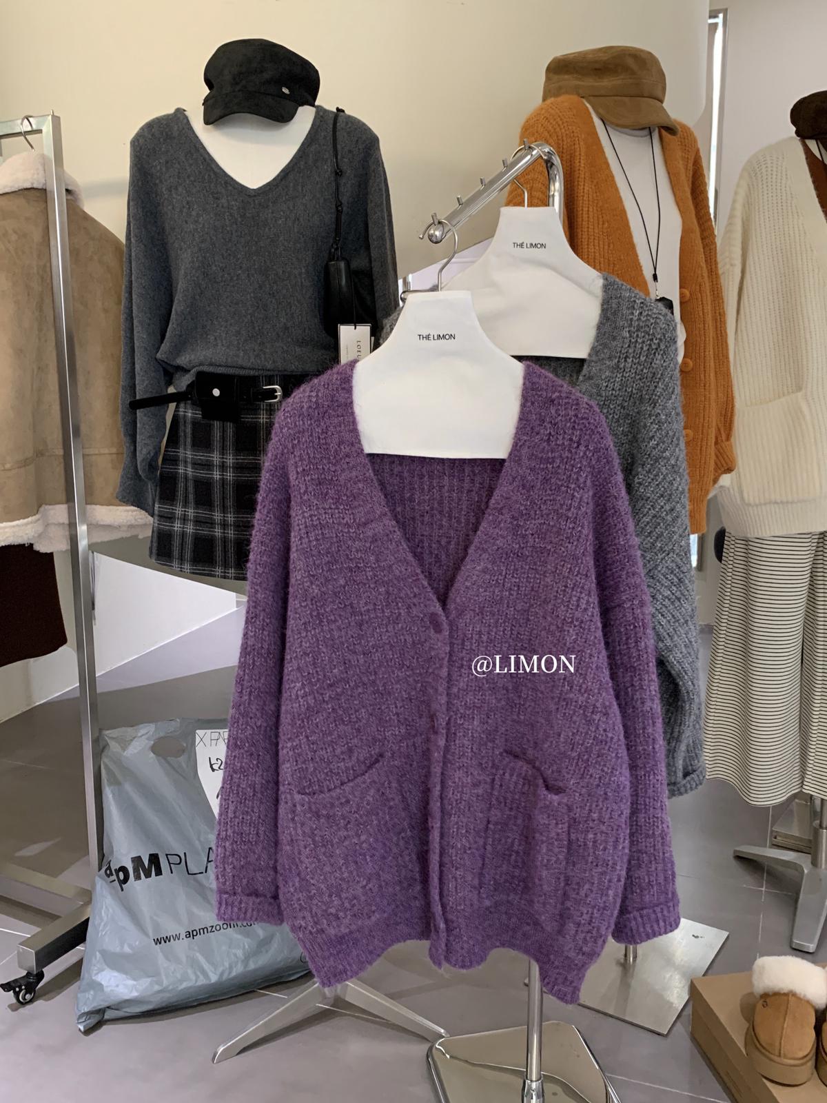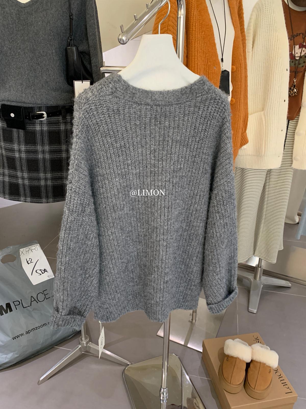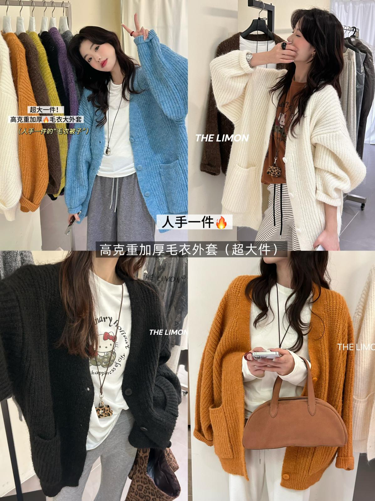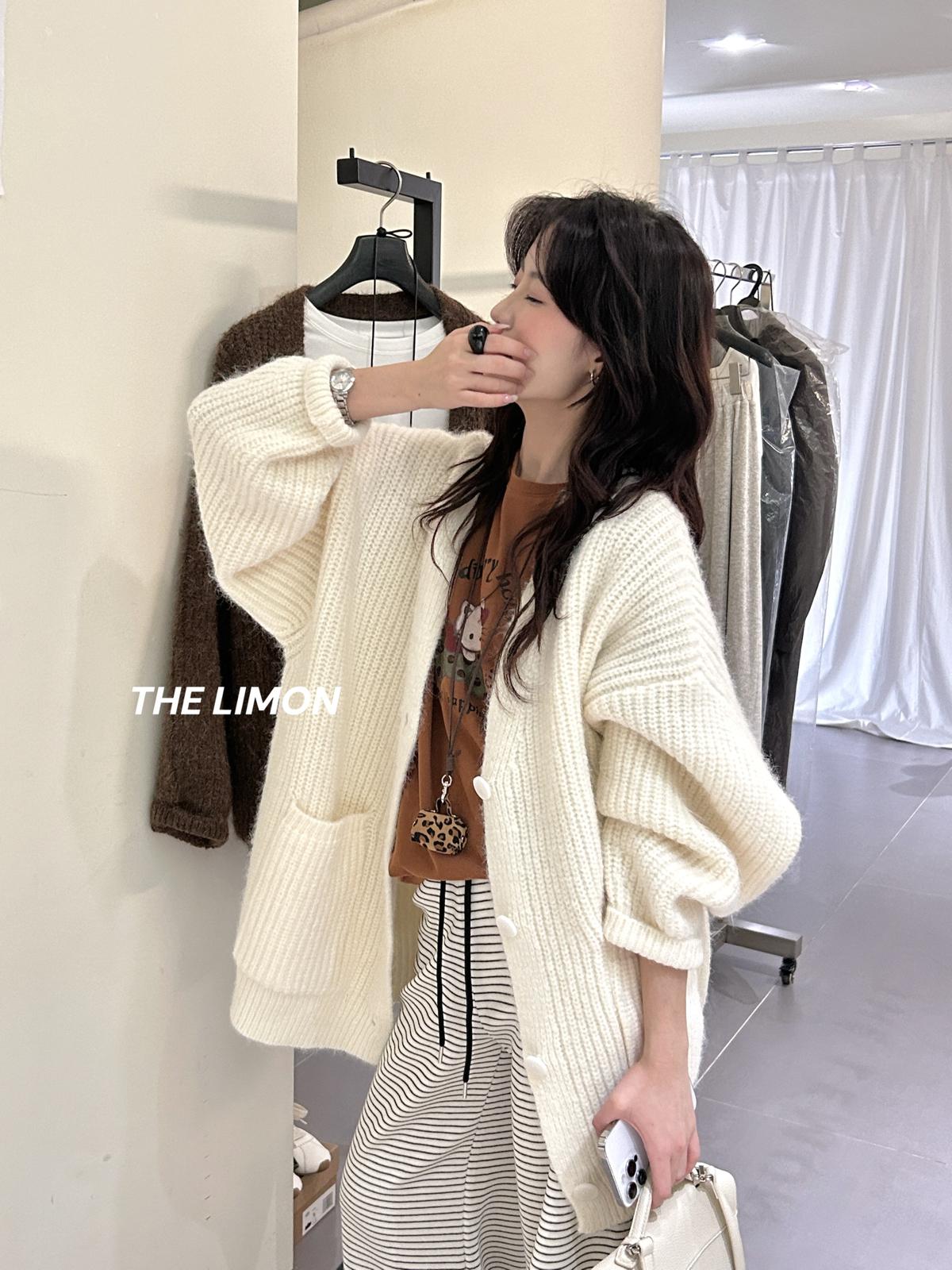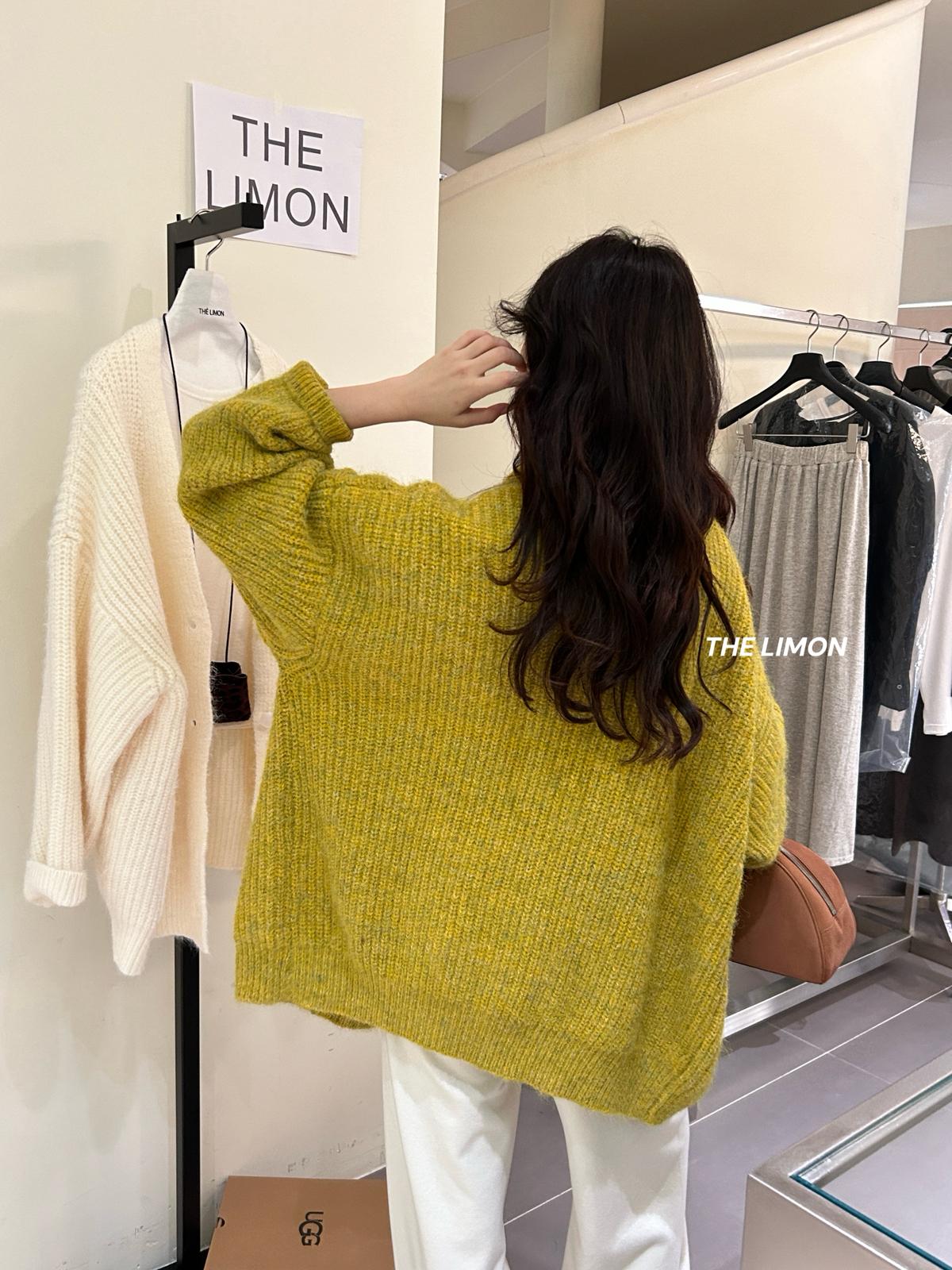 【C7548】高克重燈籠袖寬鬆羊駝毛開衫保暖毛衣(含6%羊毛)