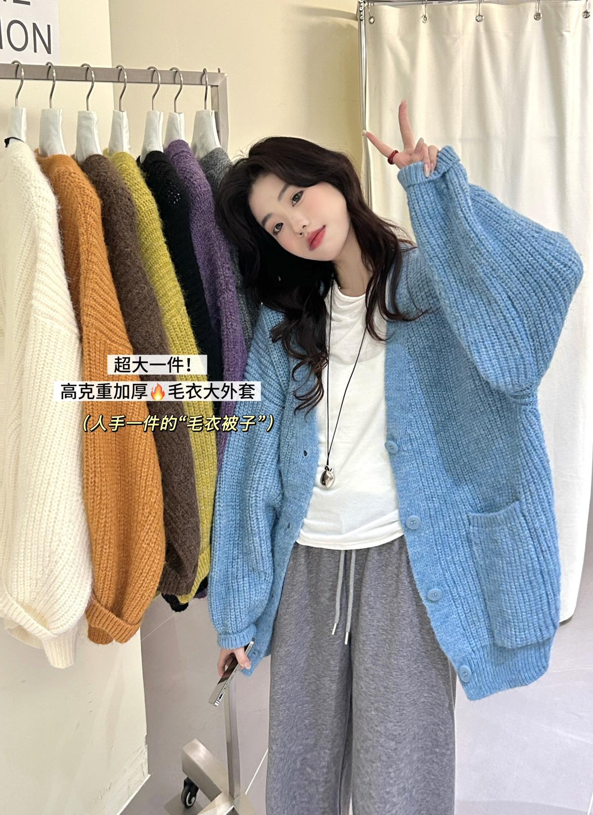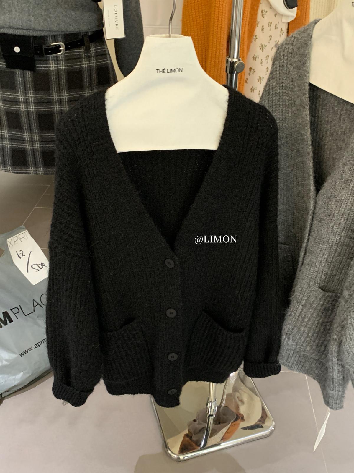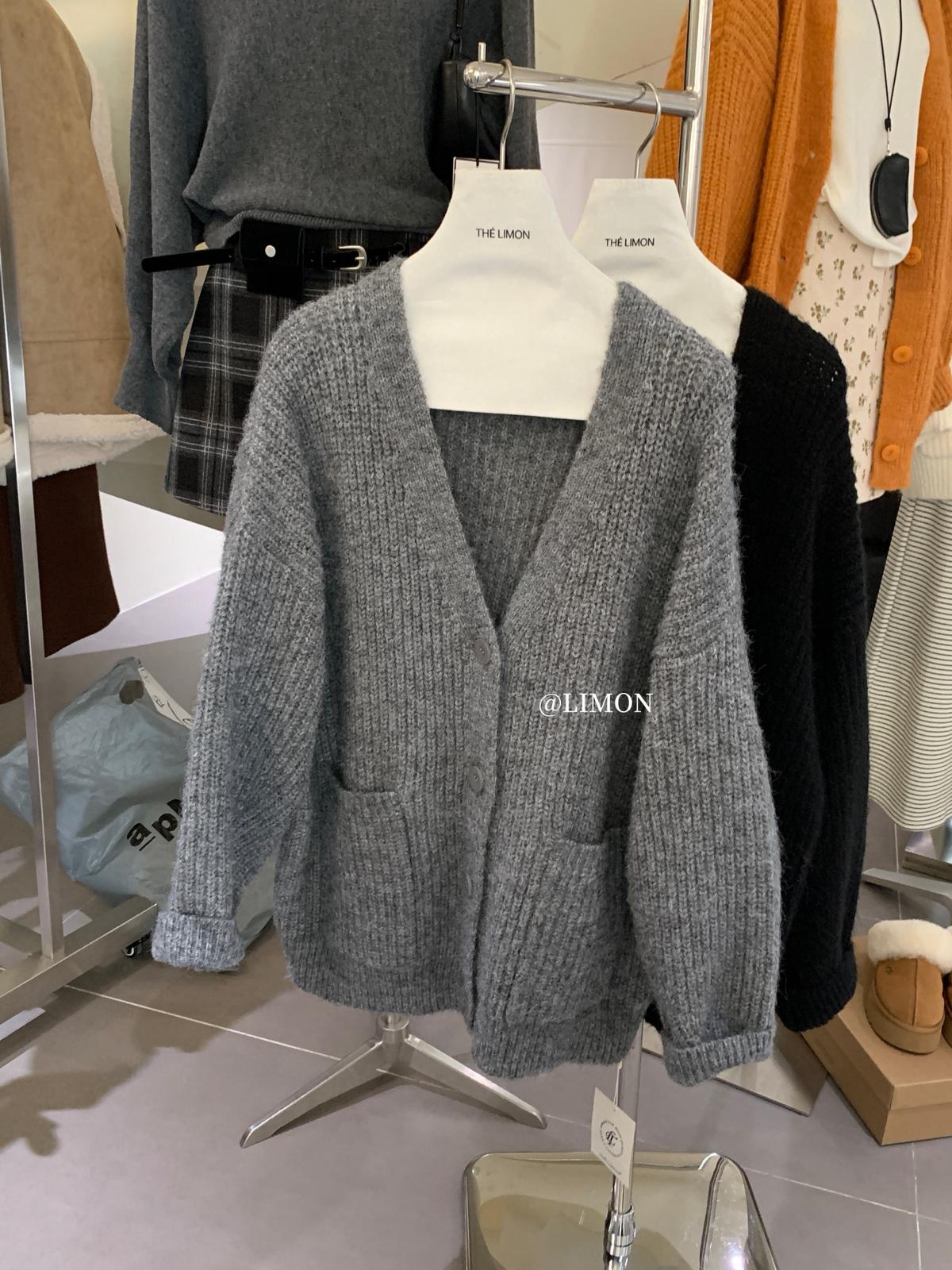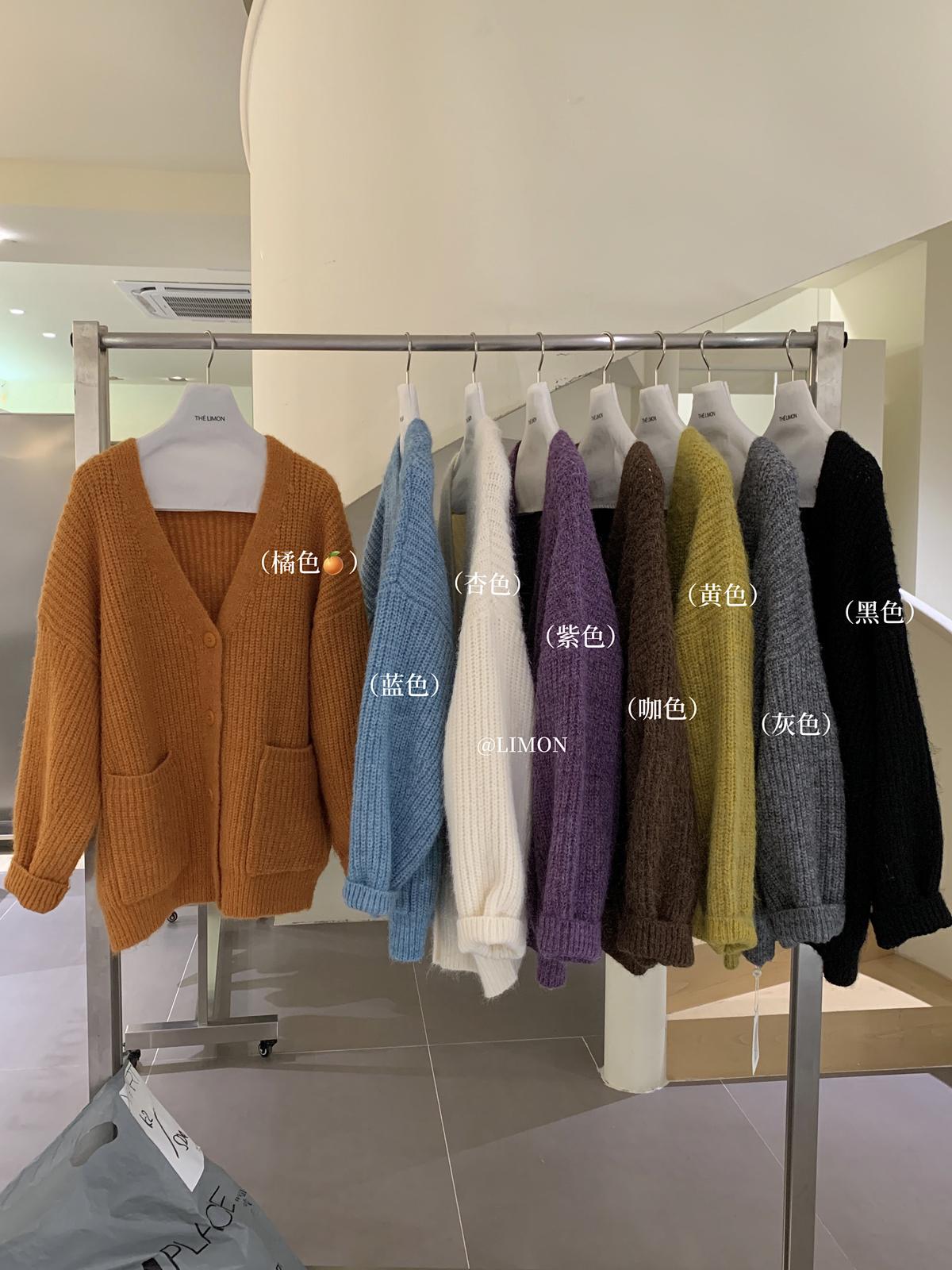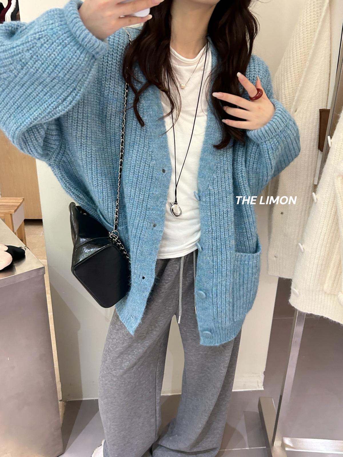 【C7548】高克重燈籠袖寬鬆羊駝毛開衫保暖毛衣(含6%羊毛)