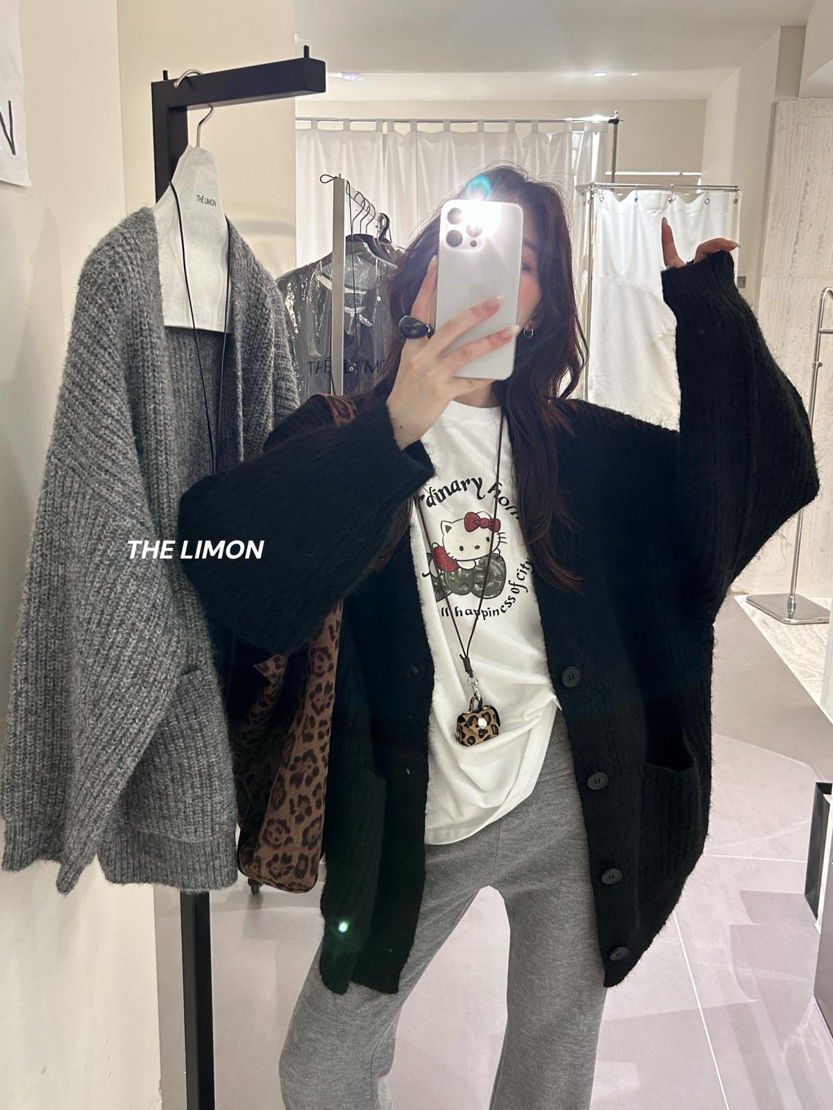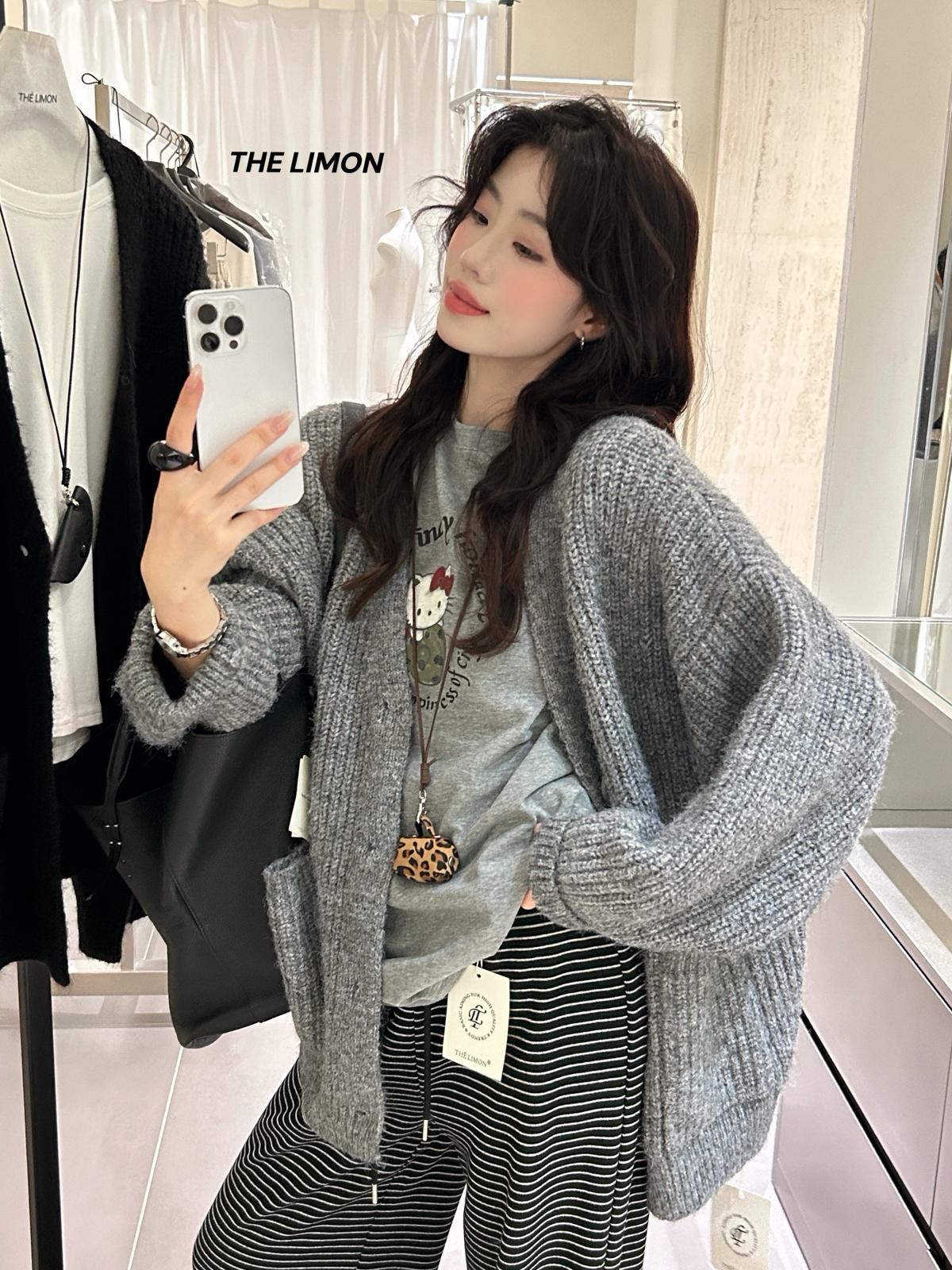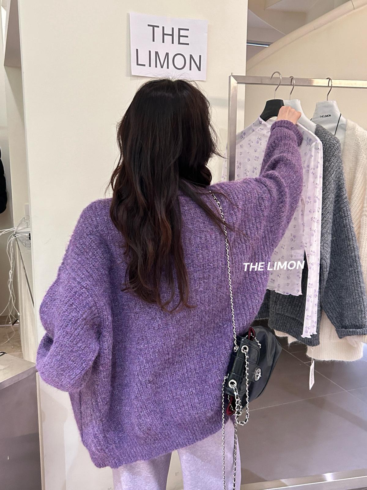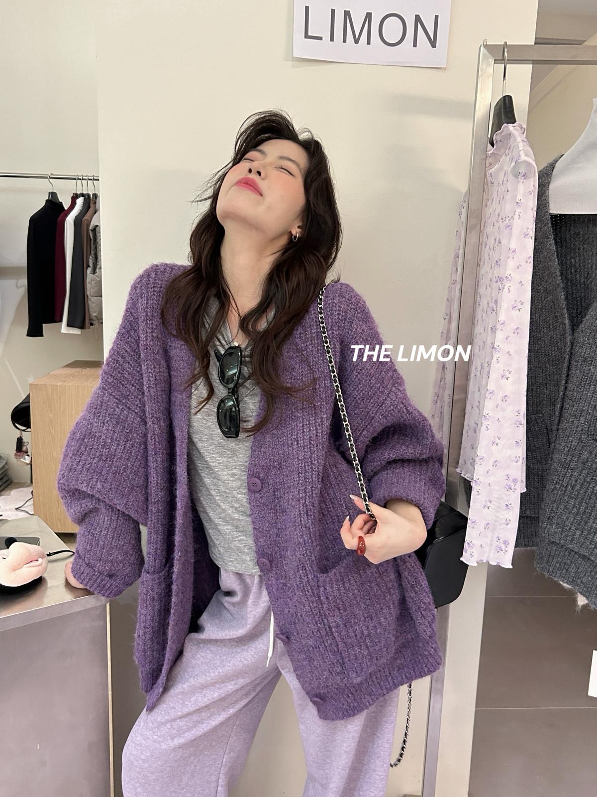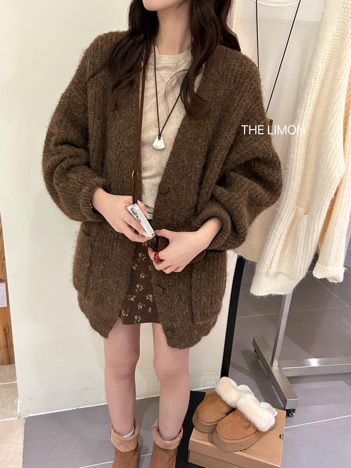 【C7548】高克重燈籠袖寬鬆羊駝毛開衫保暖毛衣(含6%羊毛)