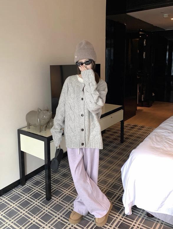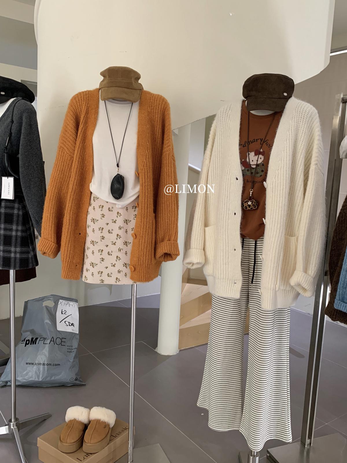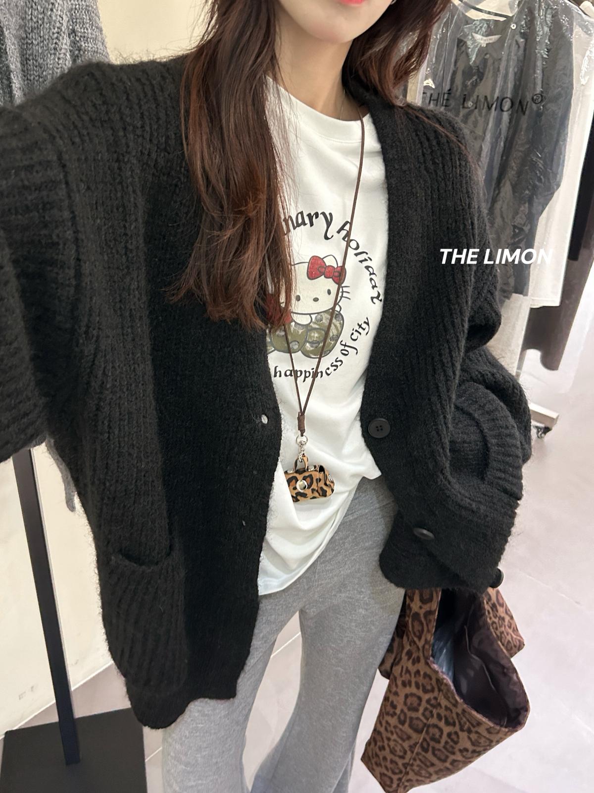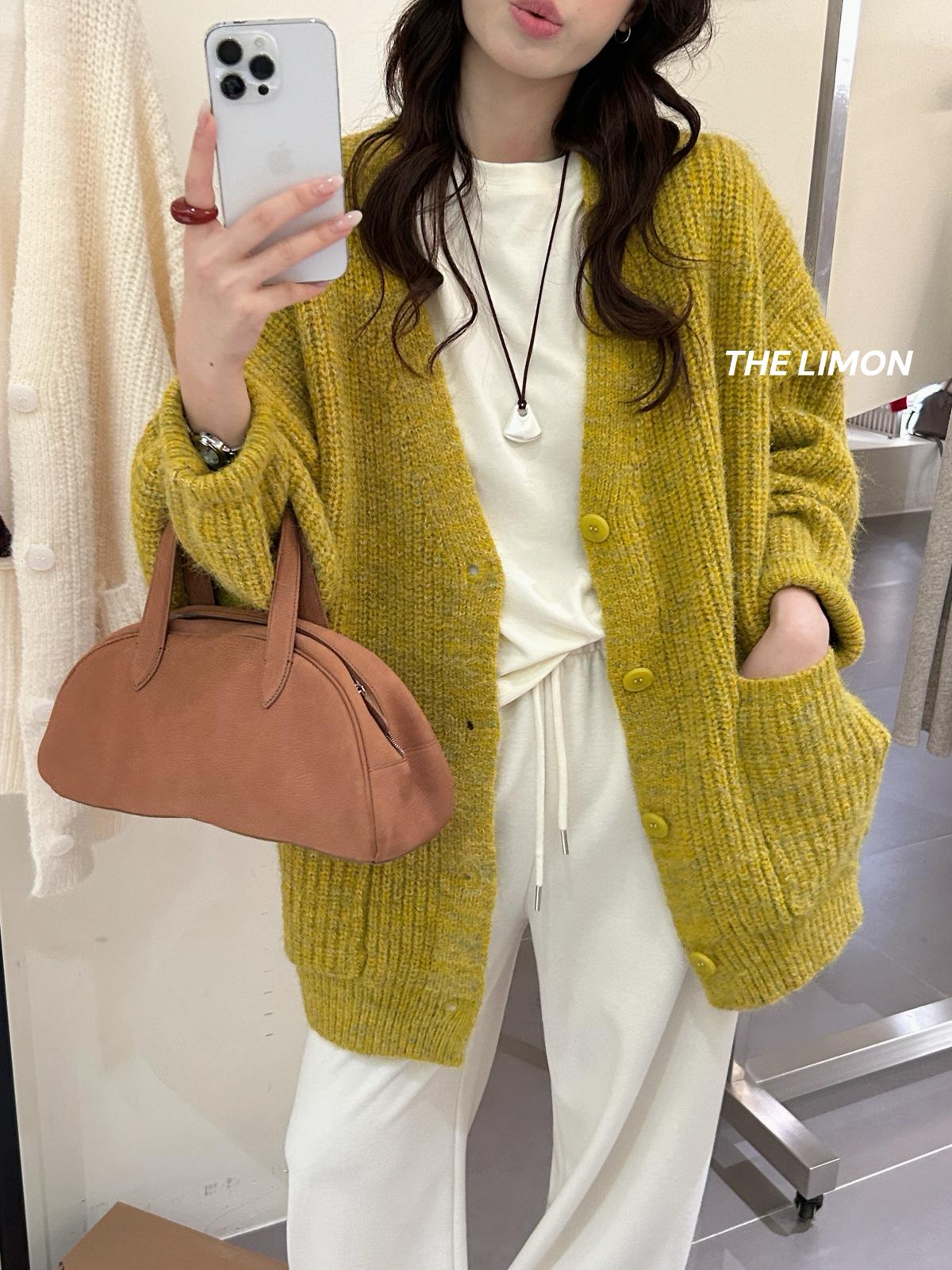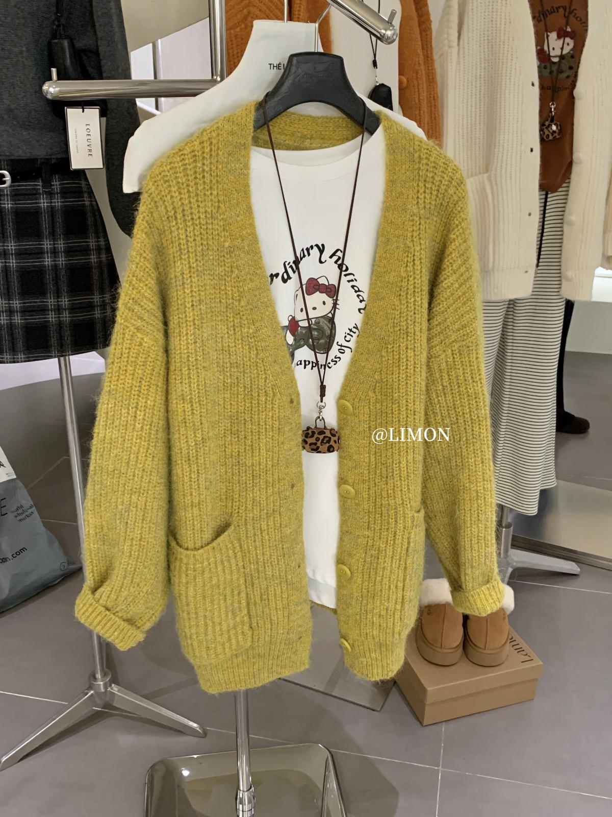 【C7548】高克重燈籠袖寬鬆羊駝毛開衫保暖毛衣(含6%羊毛)