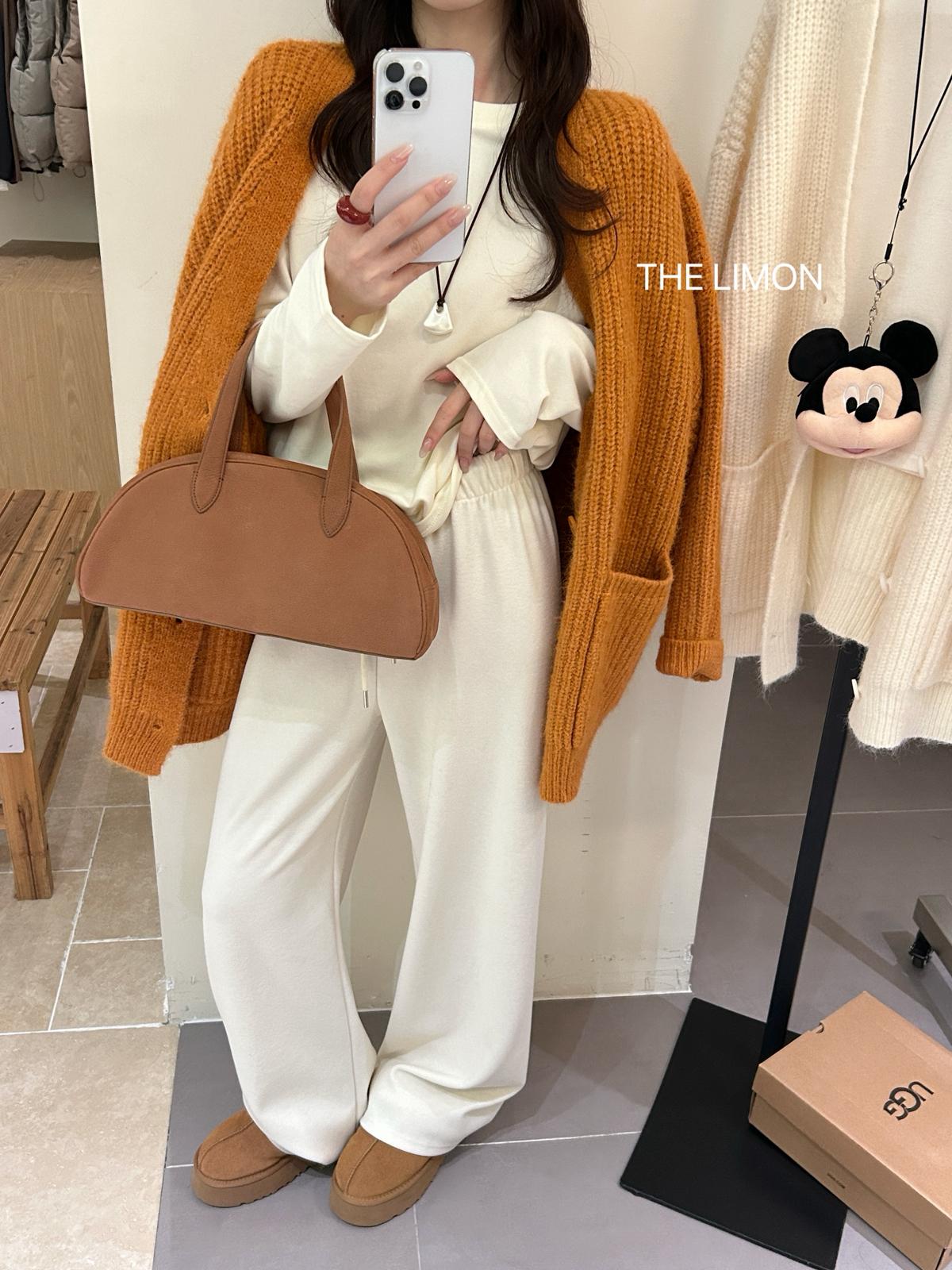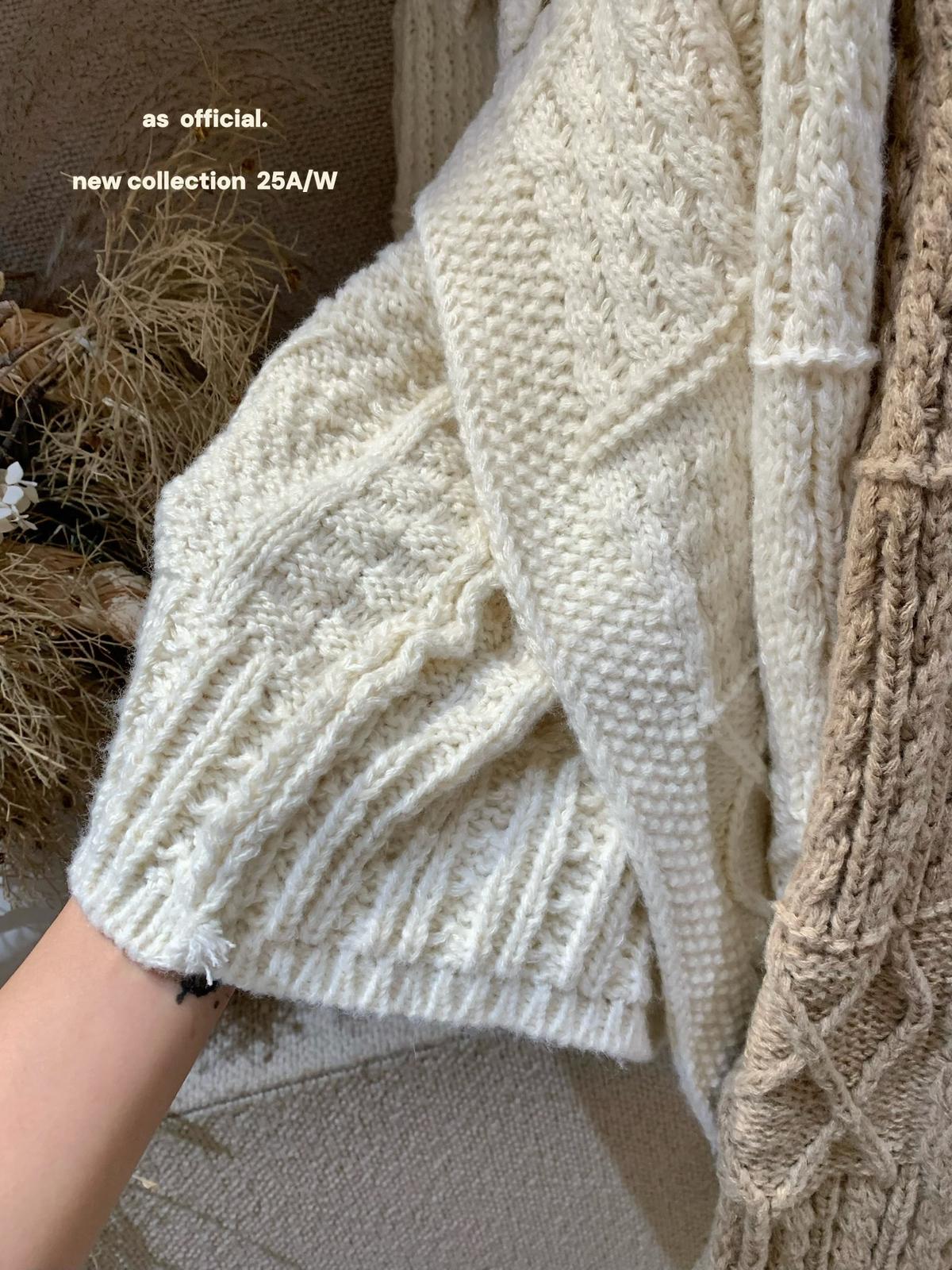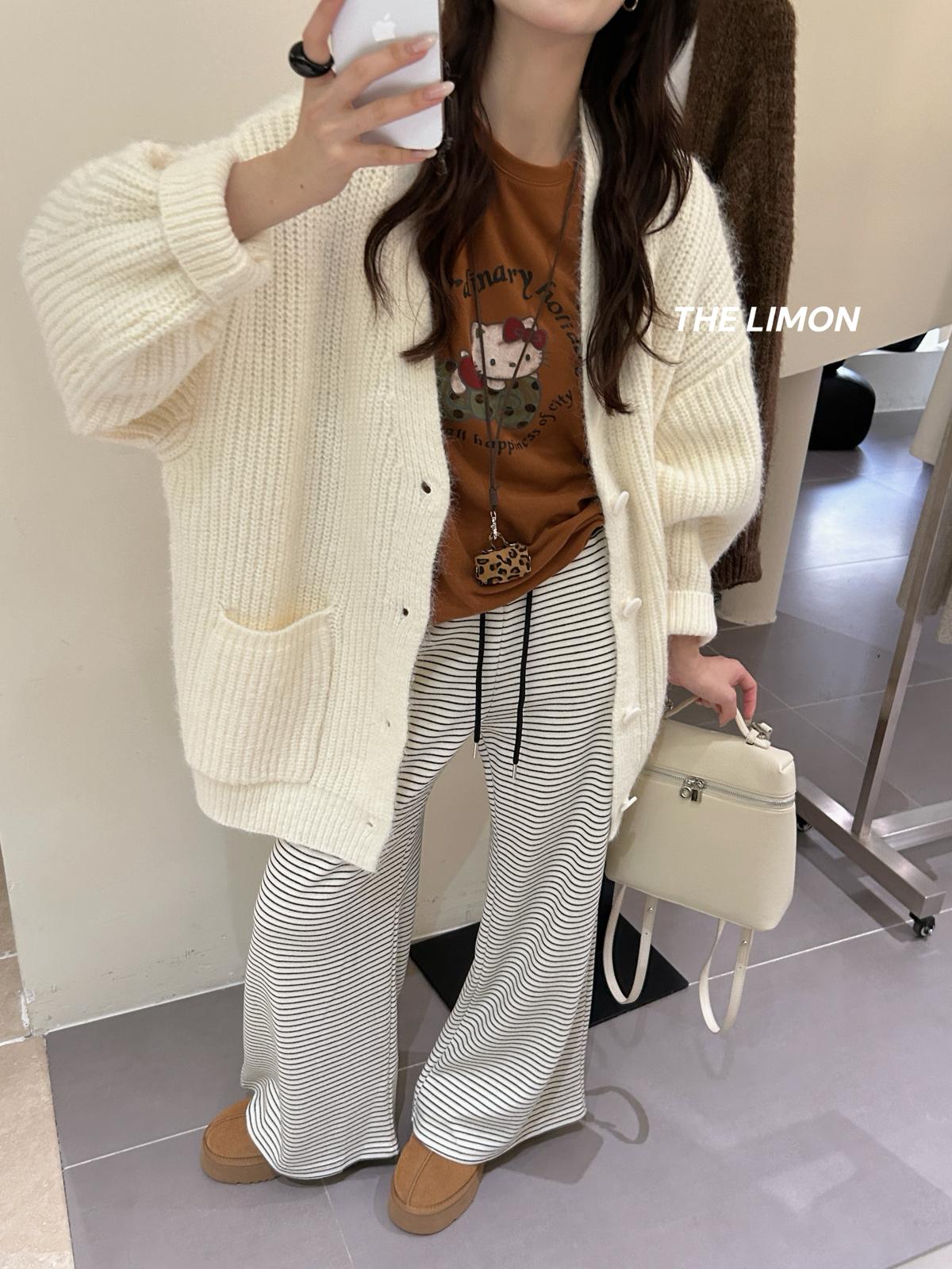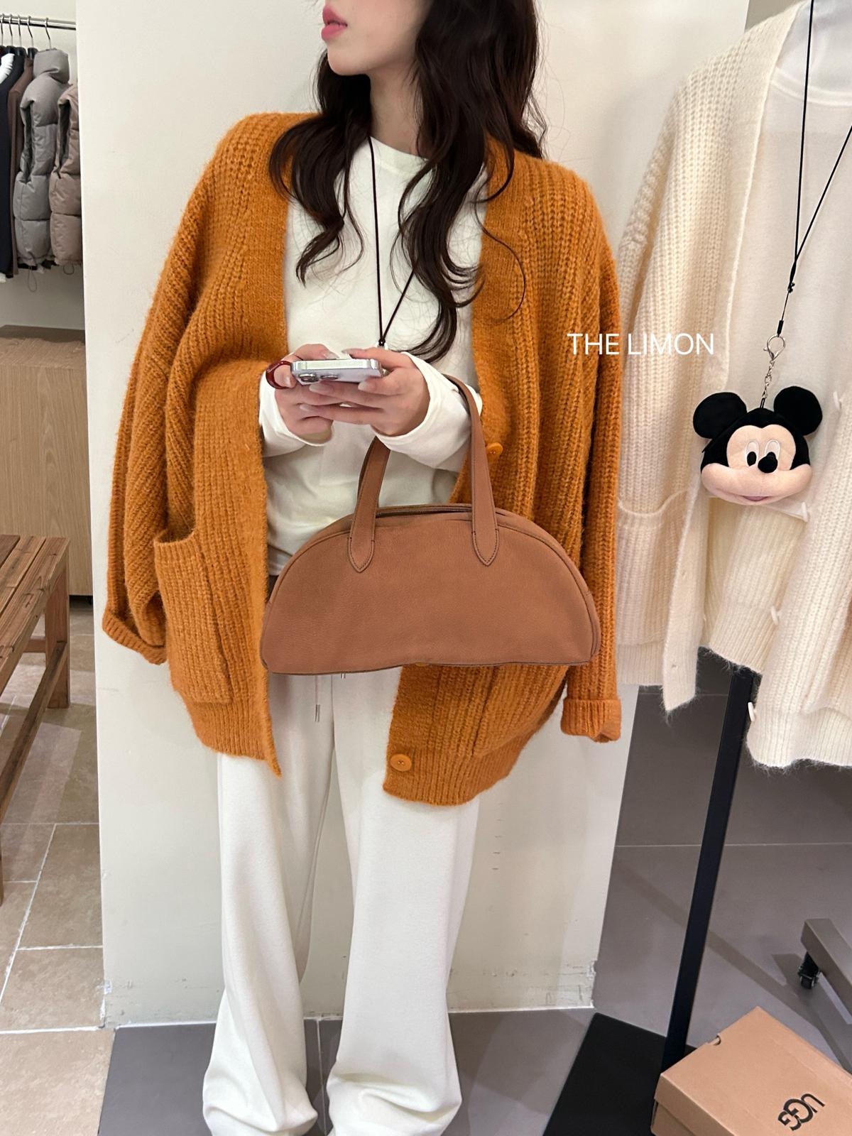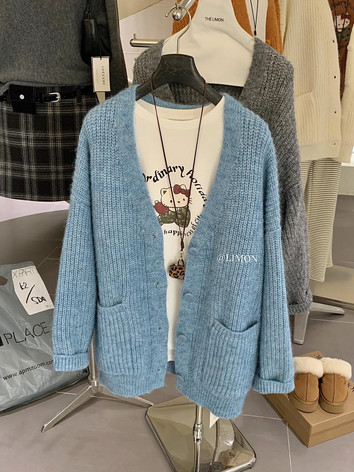 【C7548】高克重燈籠袖寬鬆羊駝毛開衫保暖毛衣(含6%羊毛)