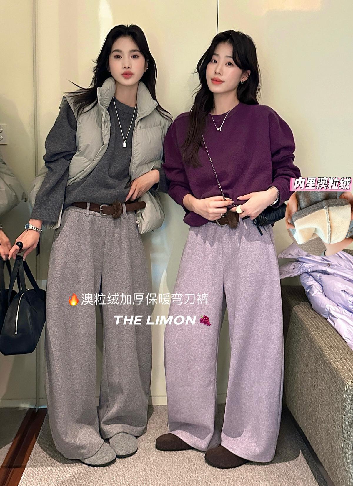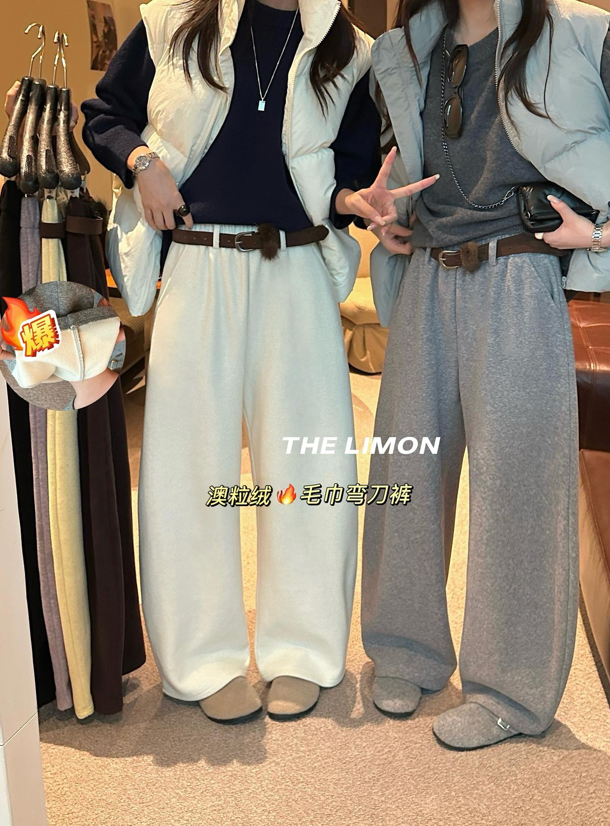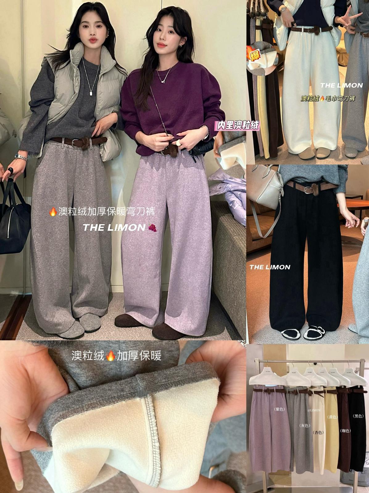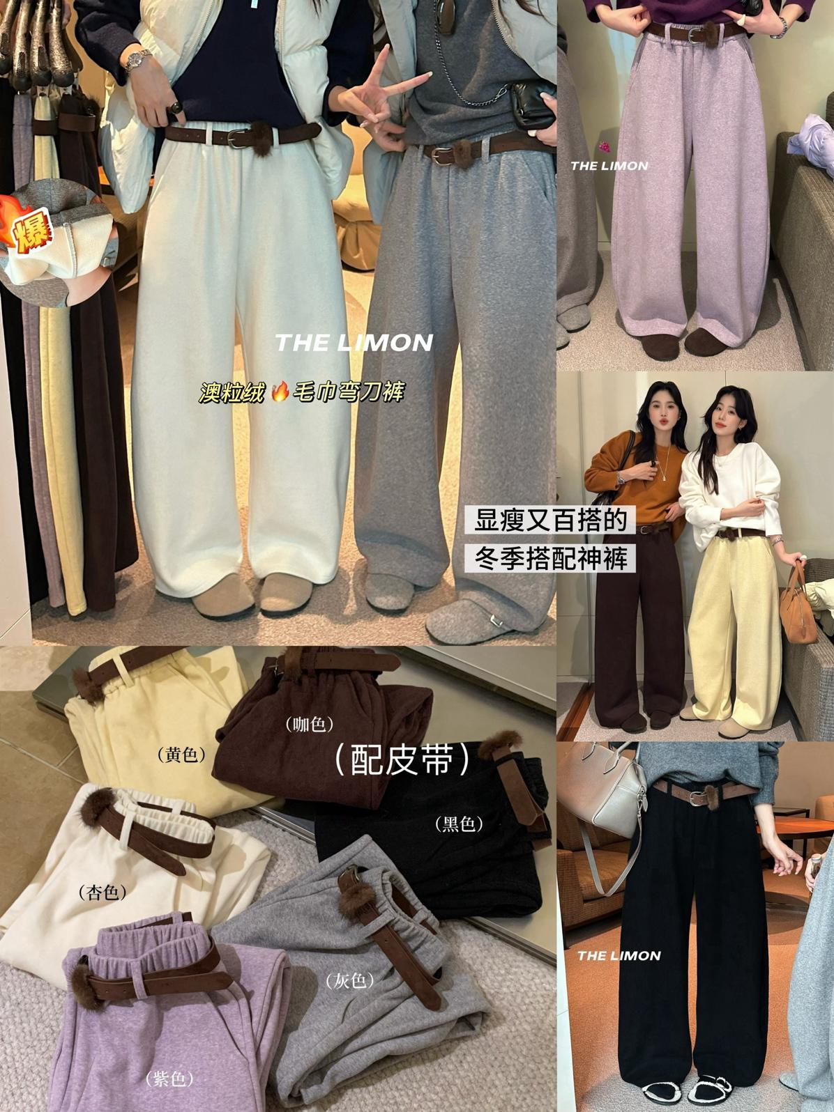 【C7549】冬季搭配神褲!遮肉顯瘦澳粒絨彎刀褲休閒褲(配腰帶)