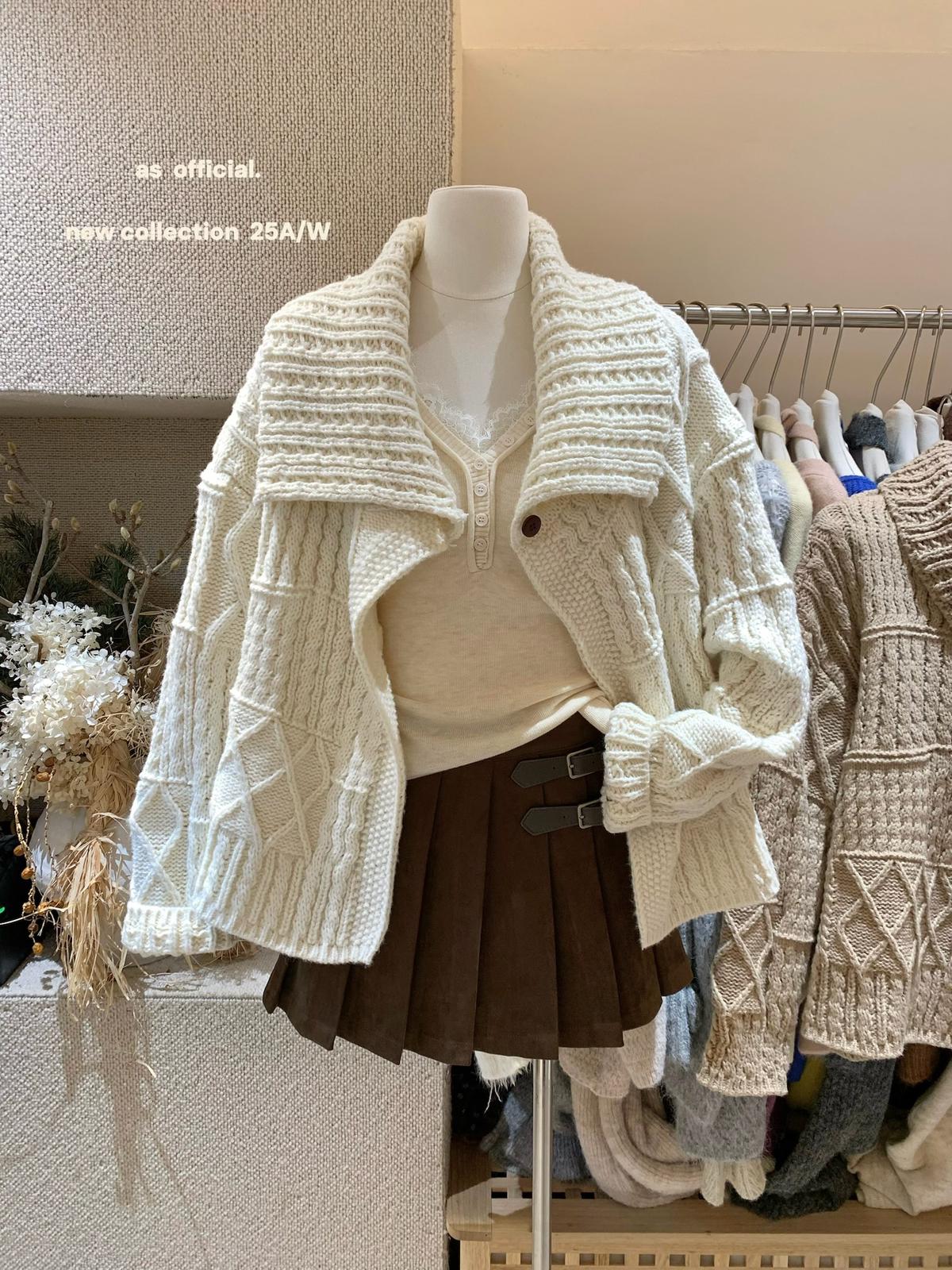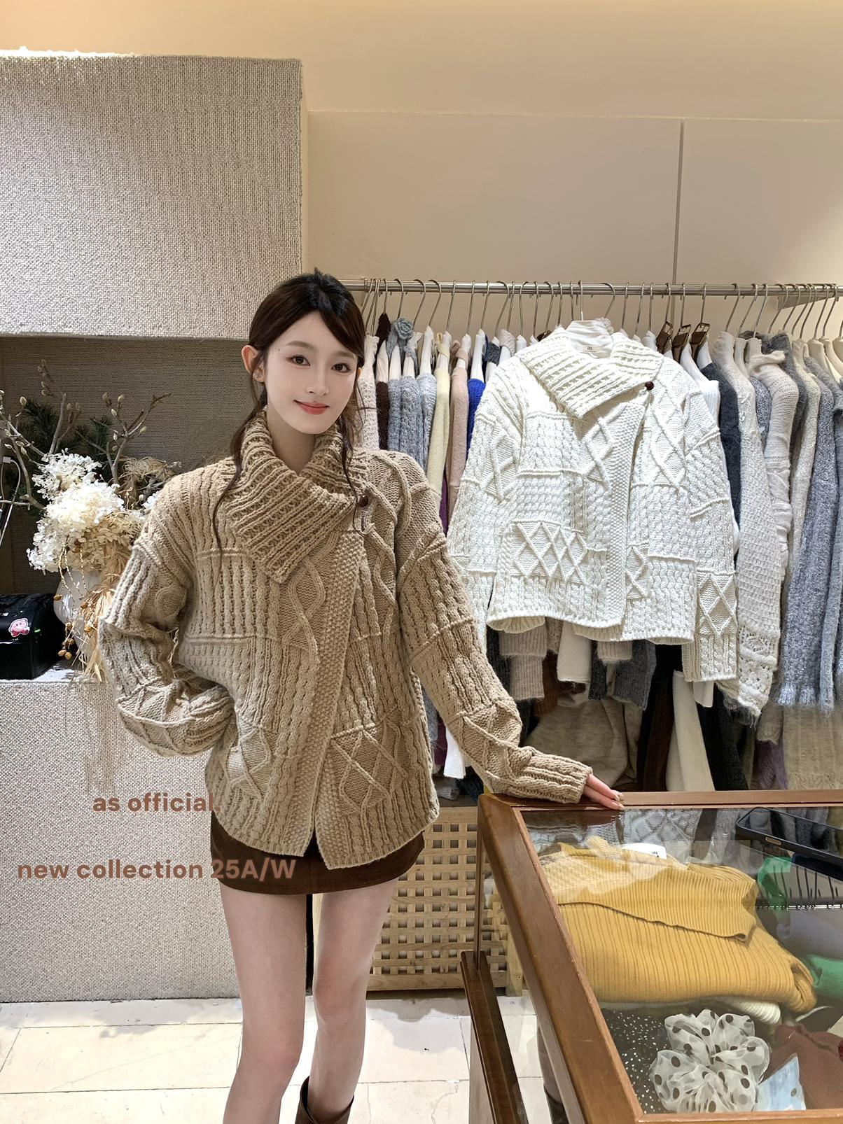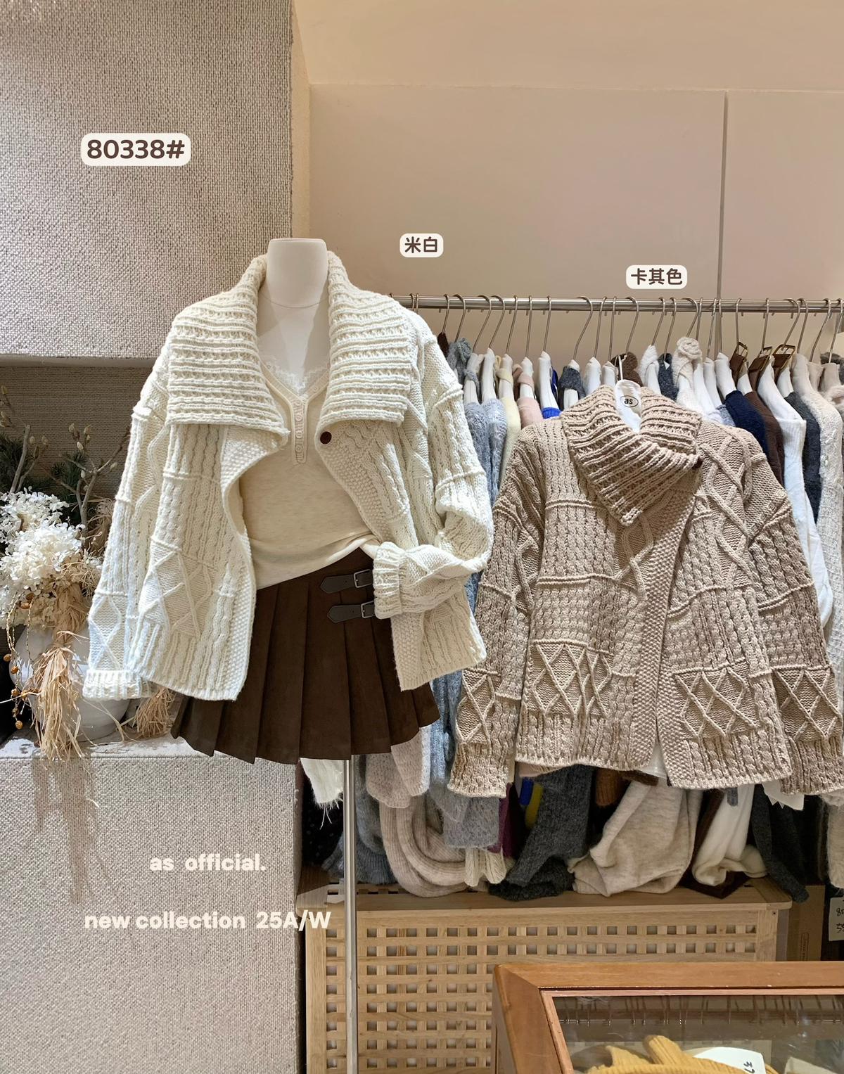 【C7550】摯愛高克重 雙色• 無限好賣 粗棒麻花厚實保暖開衫毛衣(_超韓)