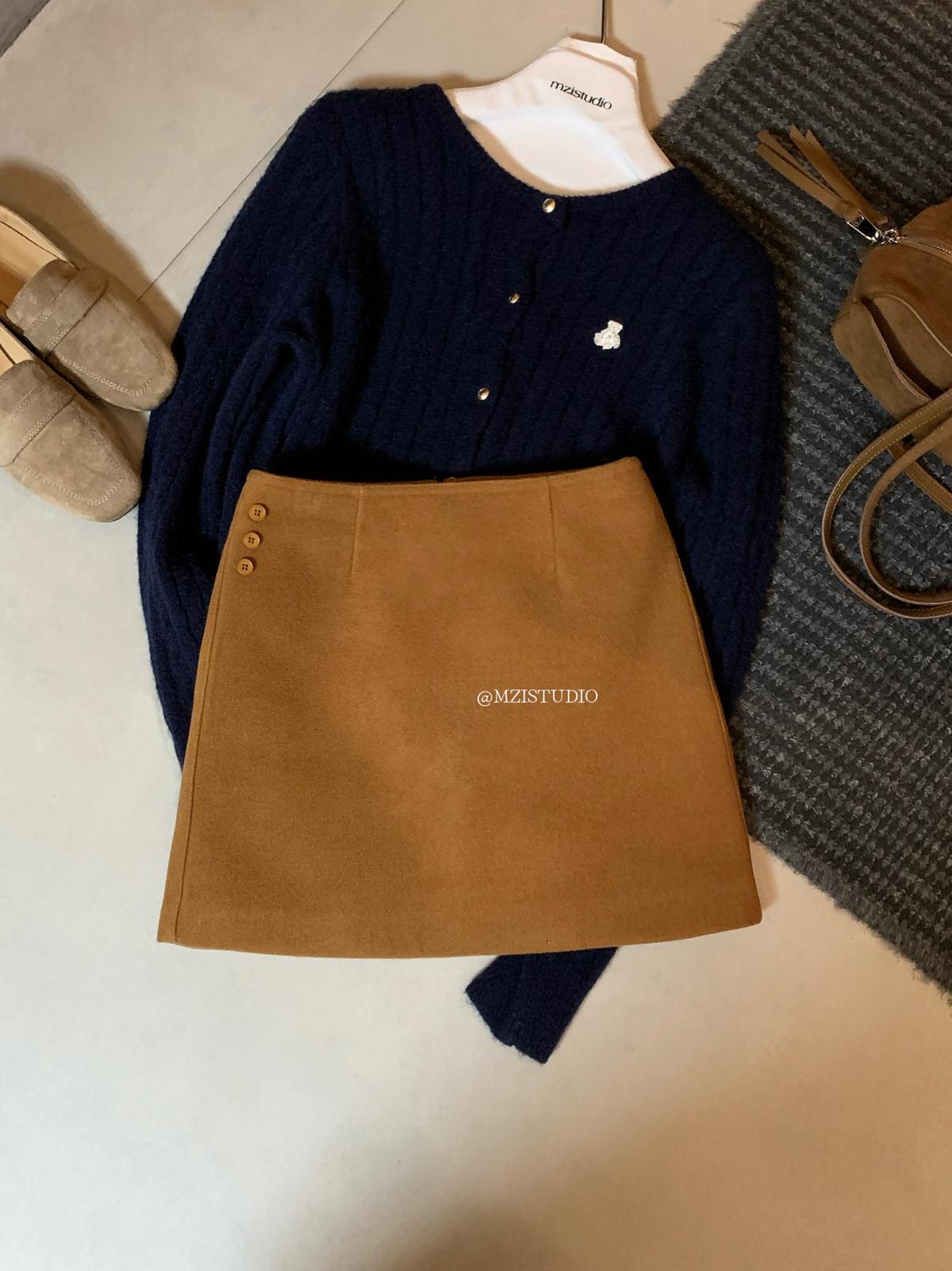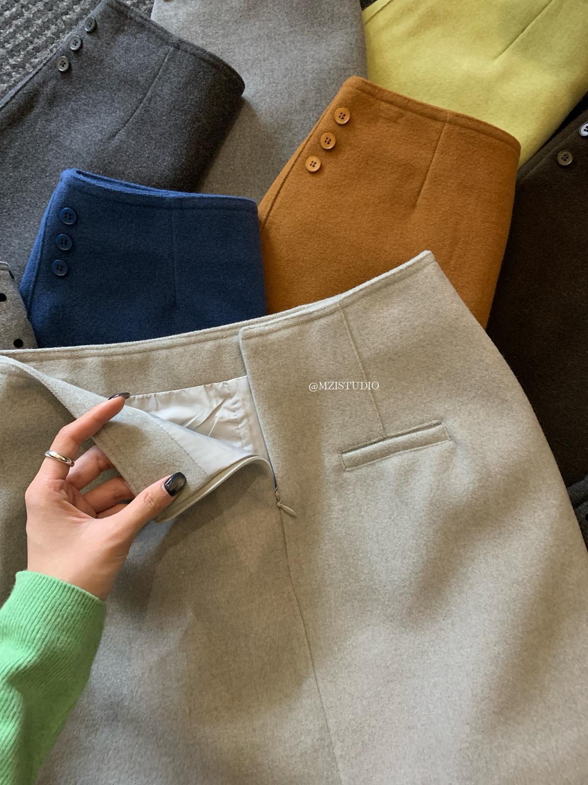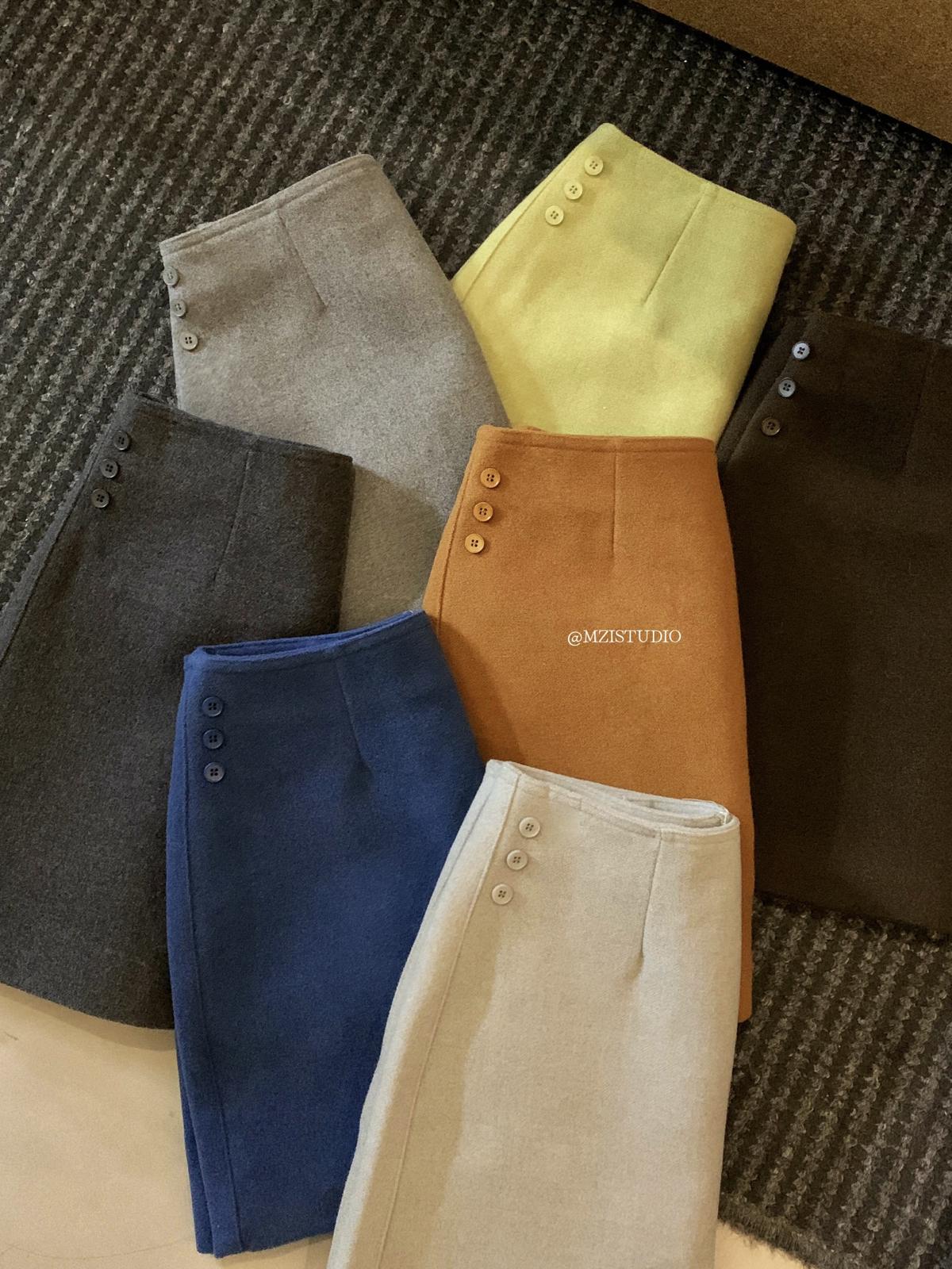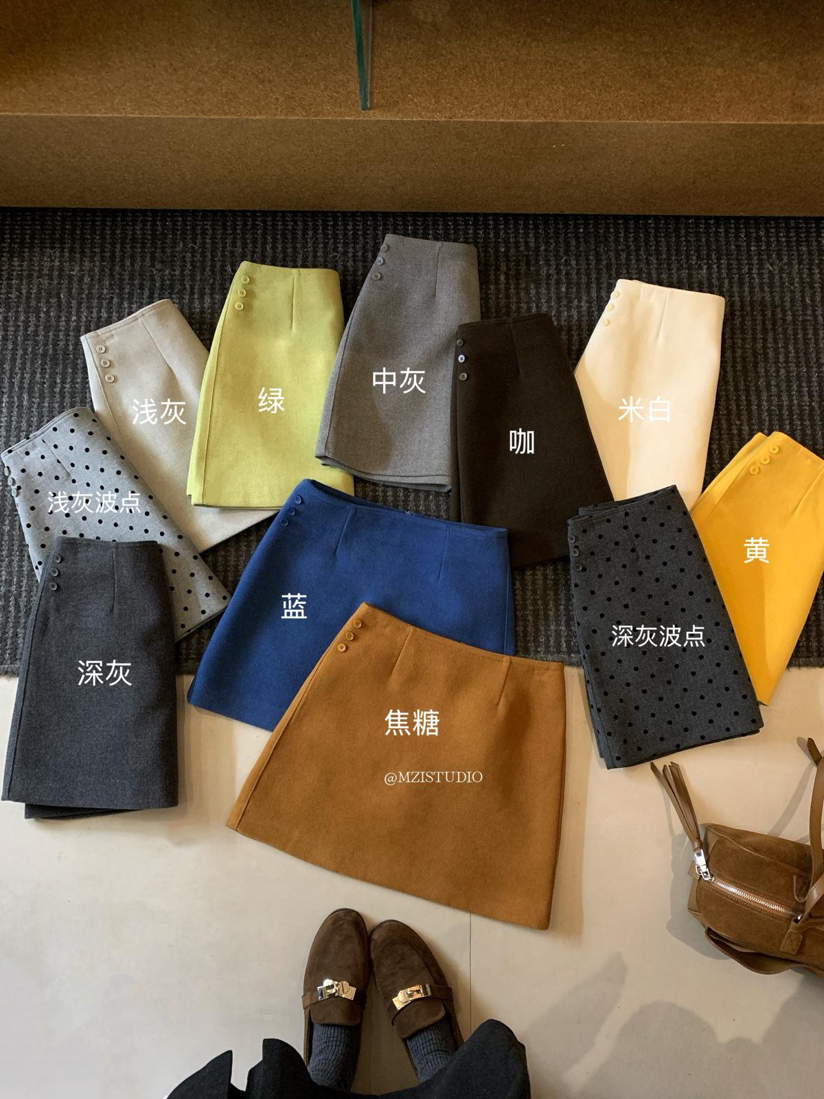 【C7552】打翻冬日的調色盤羊毛韓標質感顯瘦氣質A字包臀短半身裙(含3%羊毛)