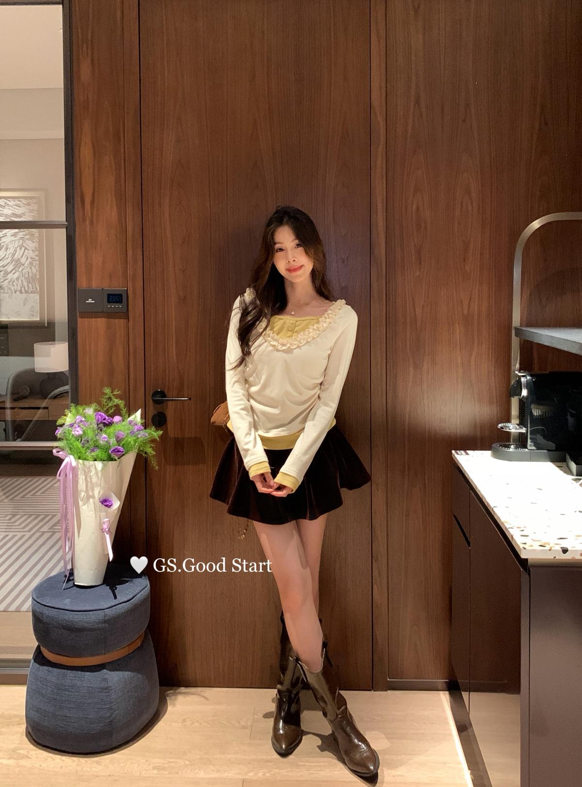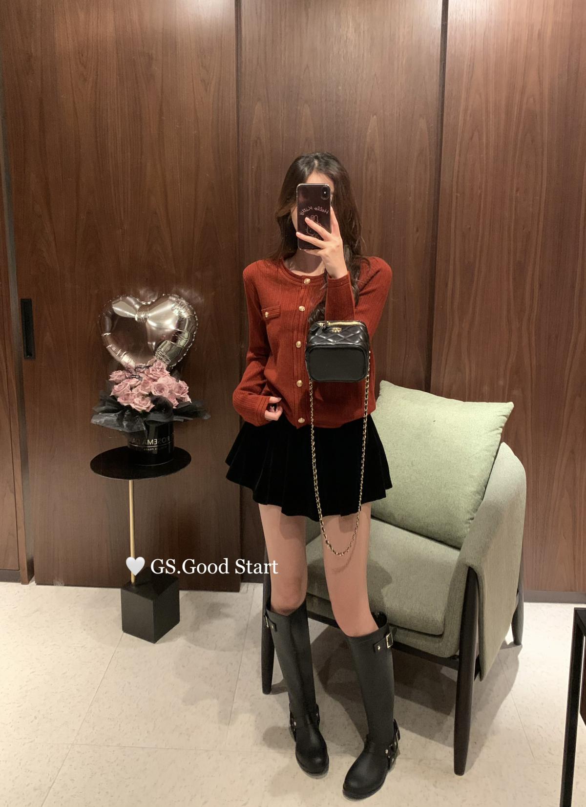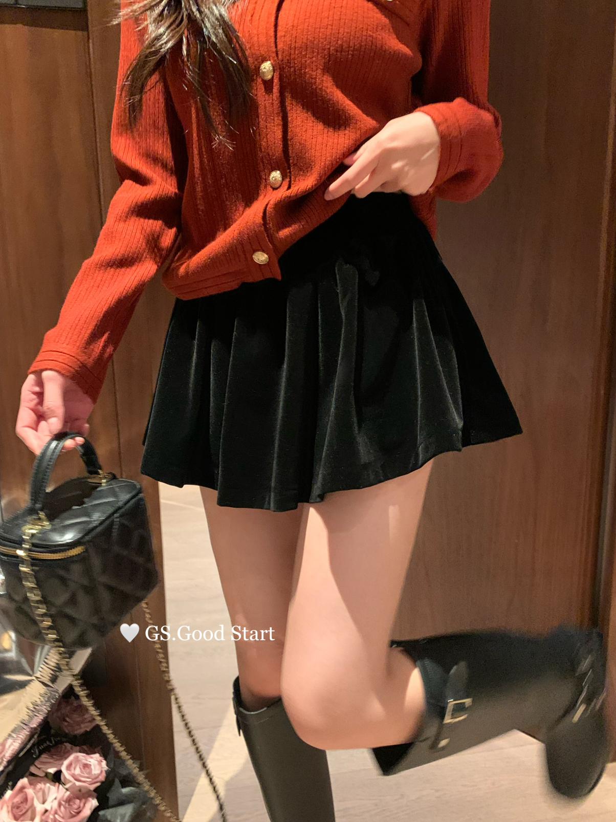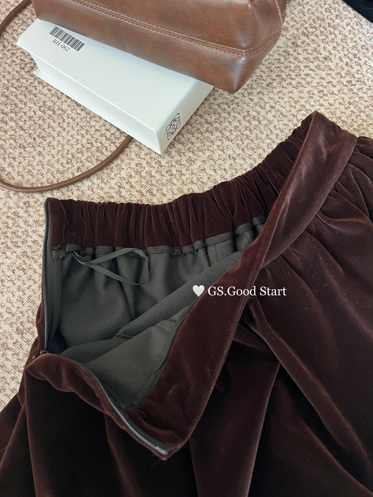 【C7554】強推*根本搭不膩!好賣必入!秋冬復古氣質甜美絲絨百搭顯瘦裙褲