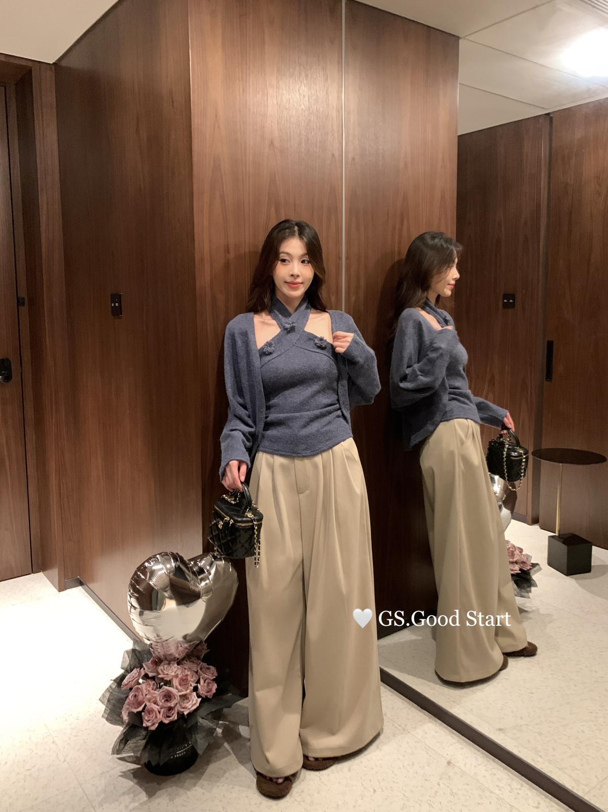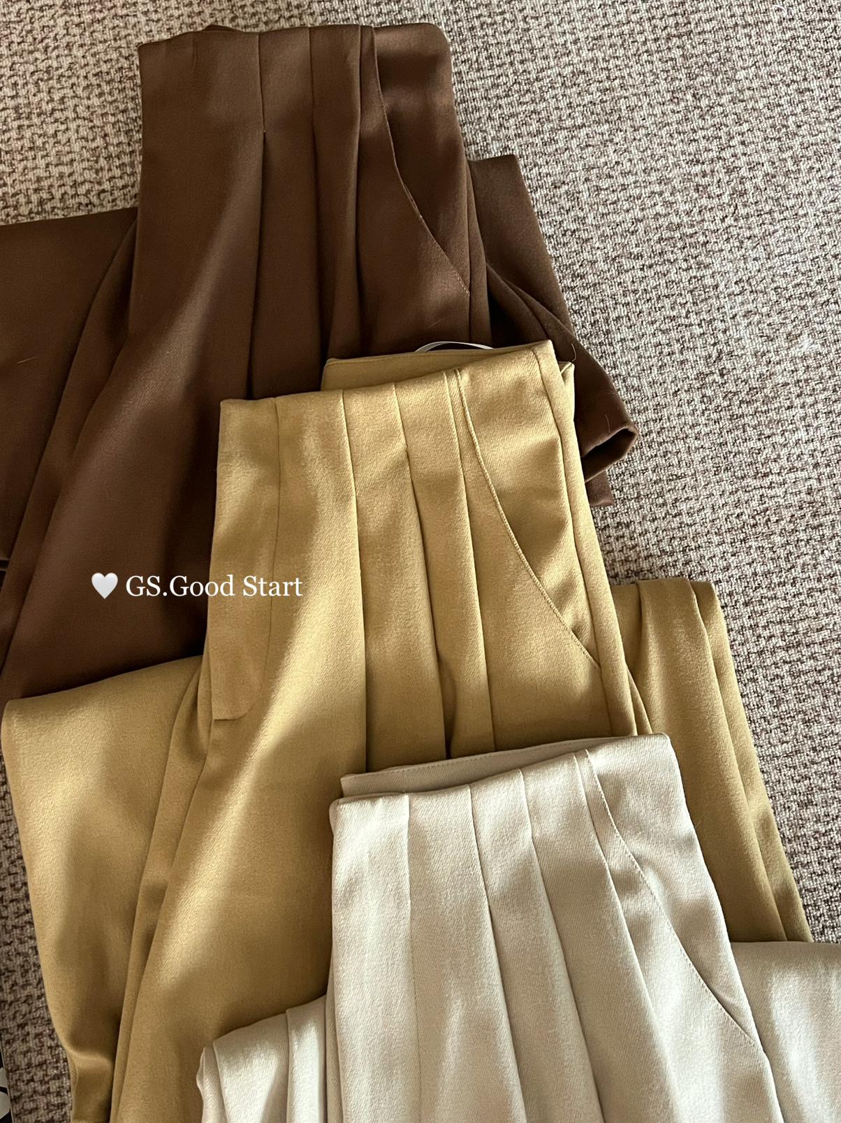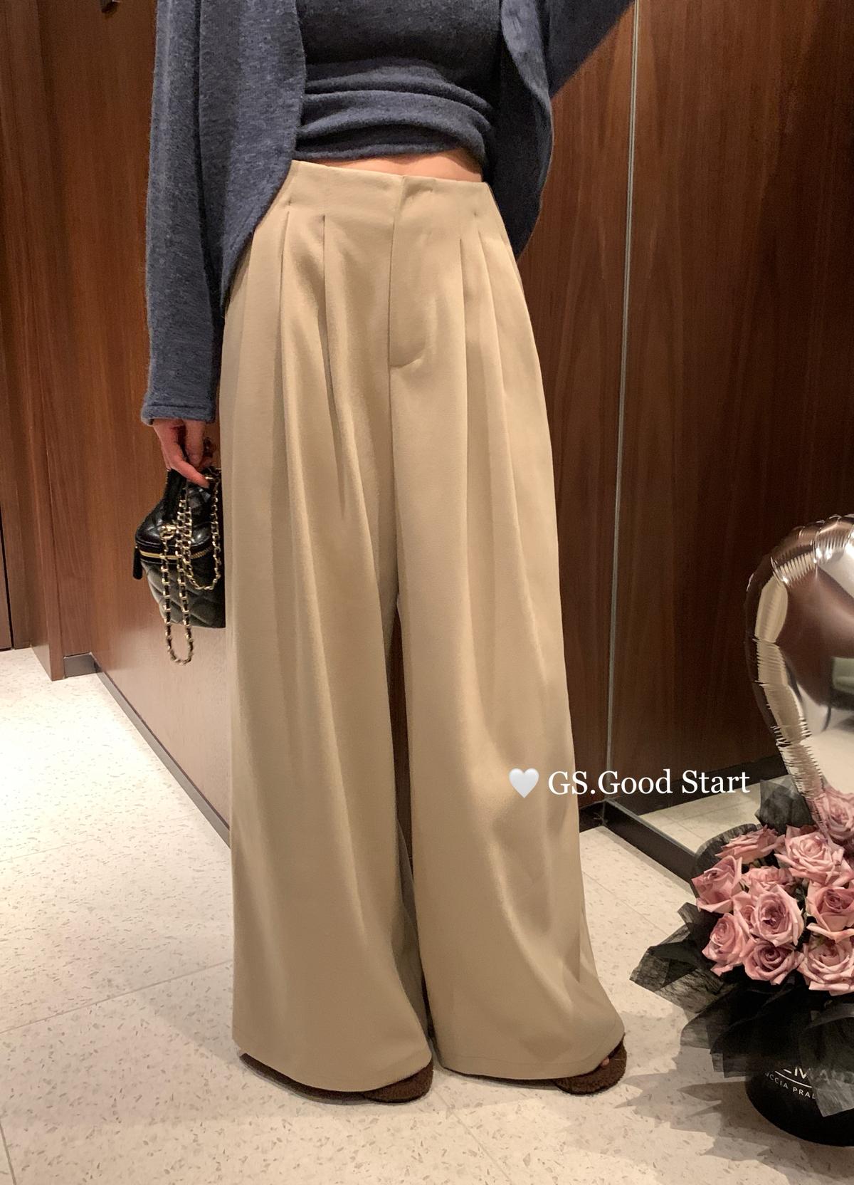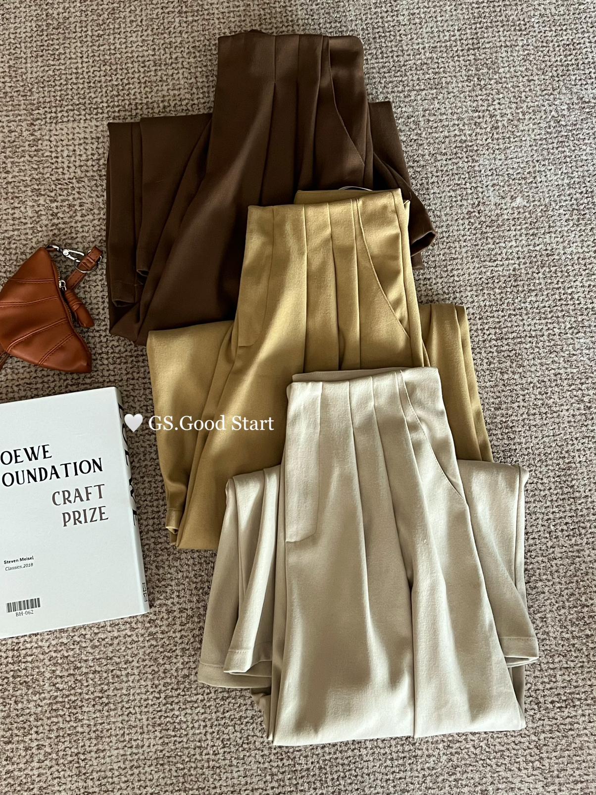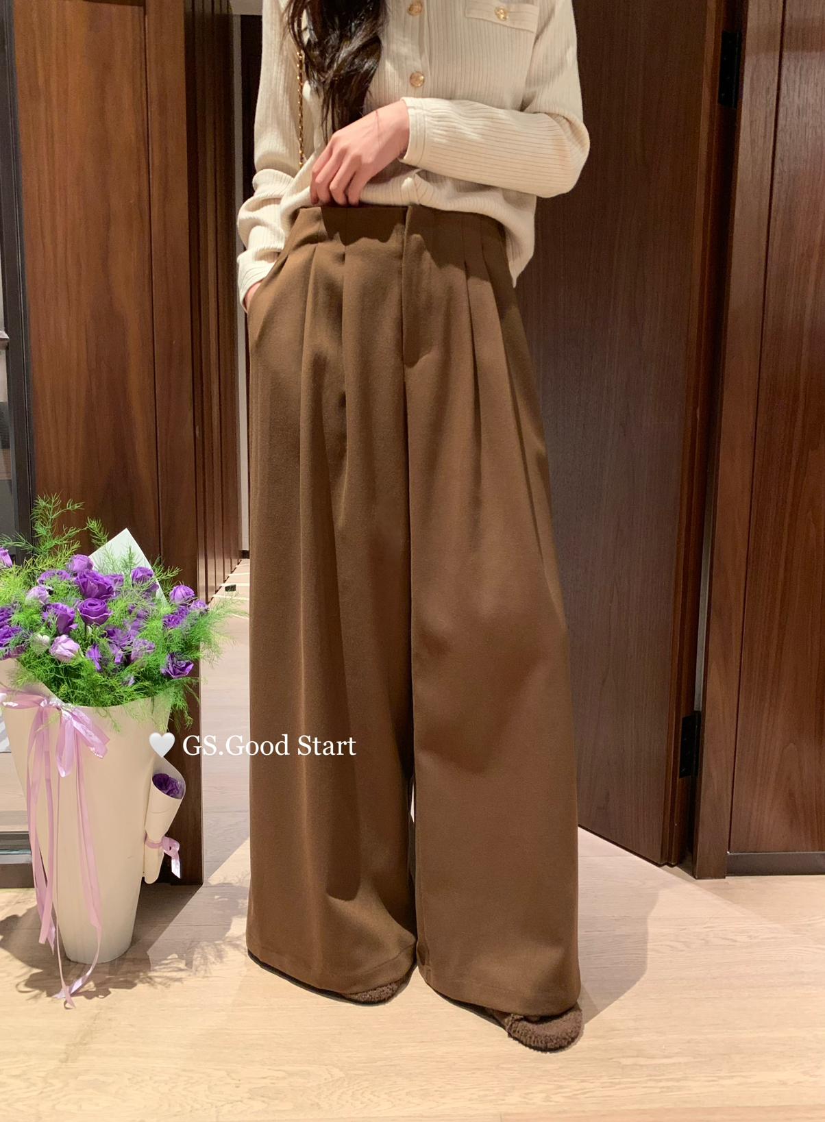【C7556】獲得集體好評*超讚版型!秋法式氣質百搭壓褶加厚西褲