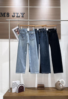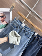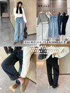 【C7538】冬季保暖加厚複合絨三色可選後口袋撞色繡線彈力窄版直筒褲牛仔褲