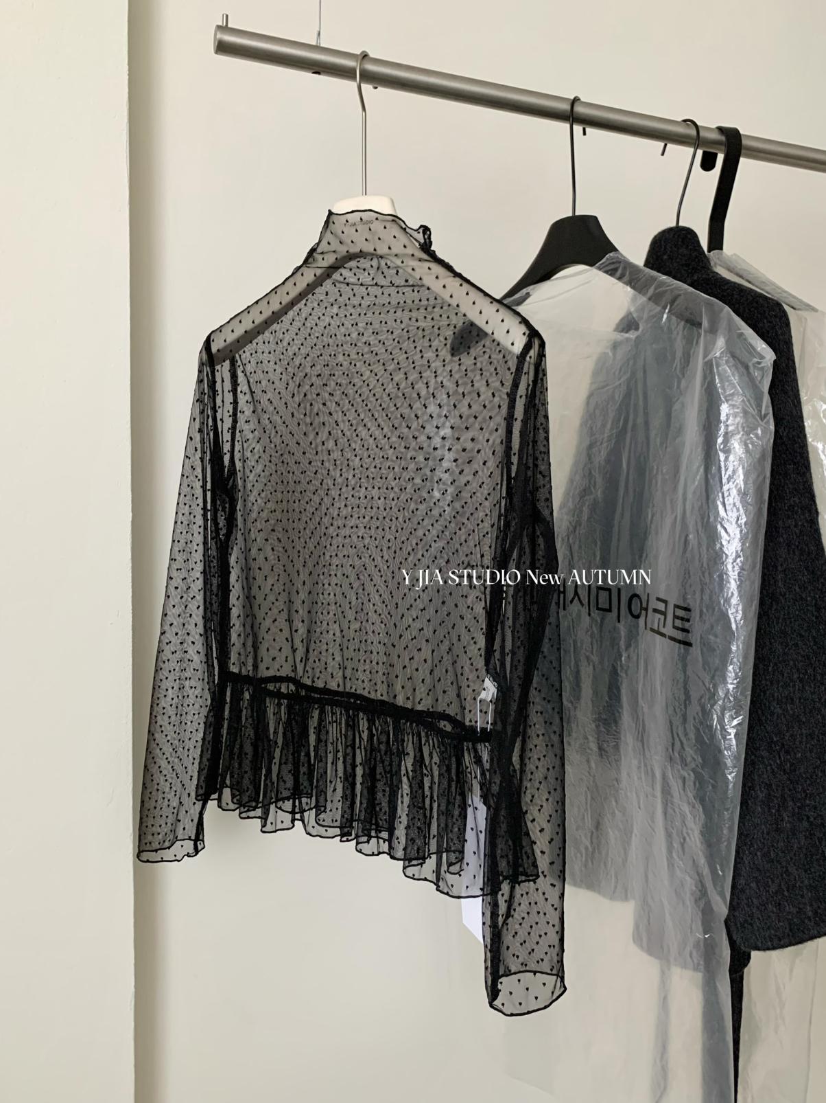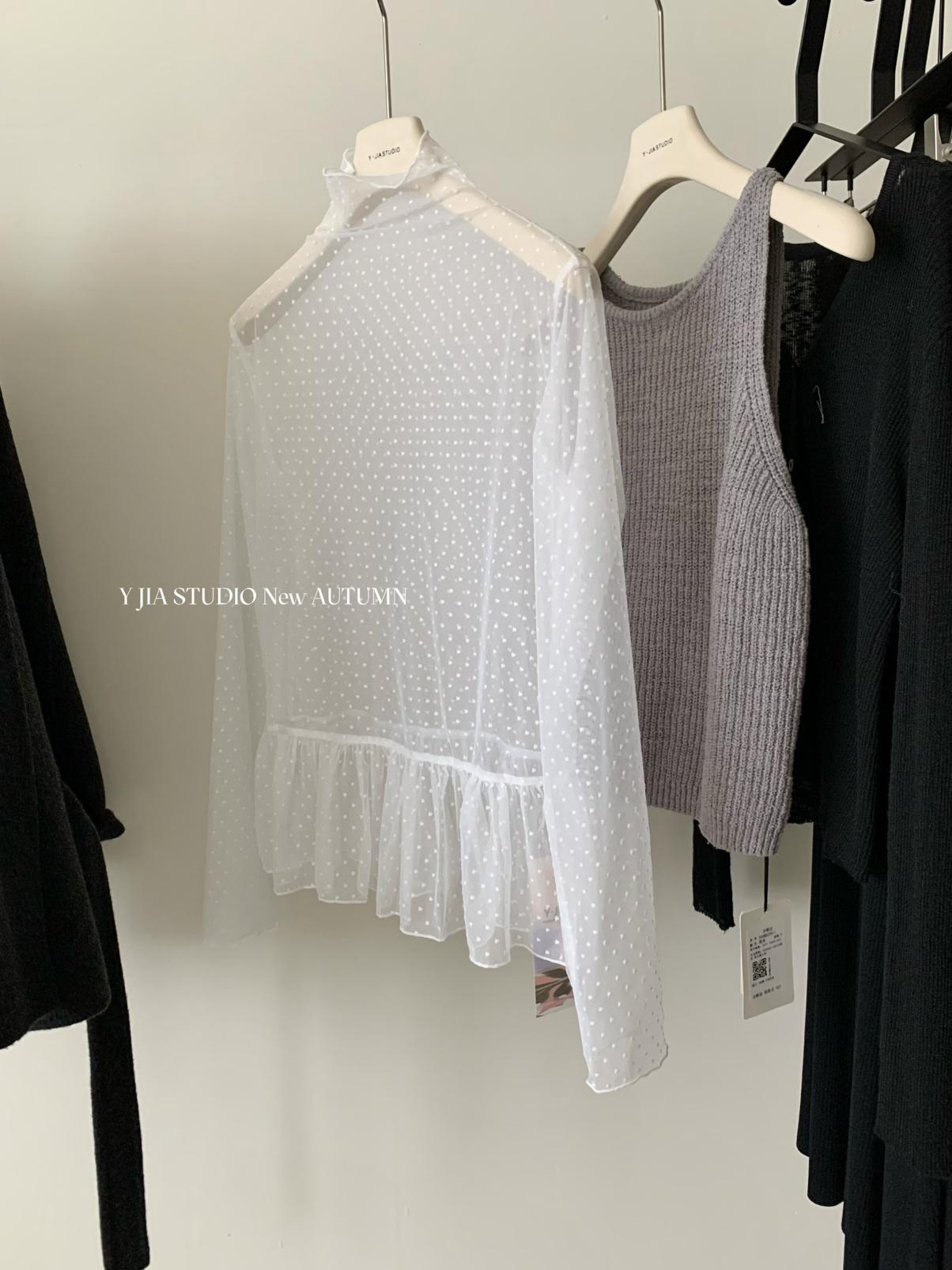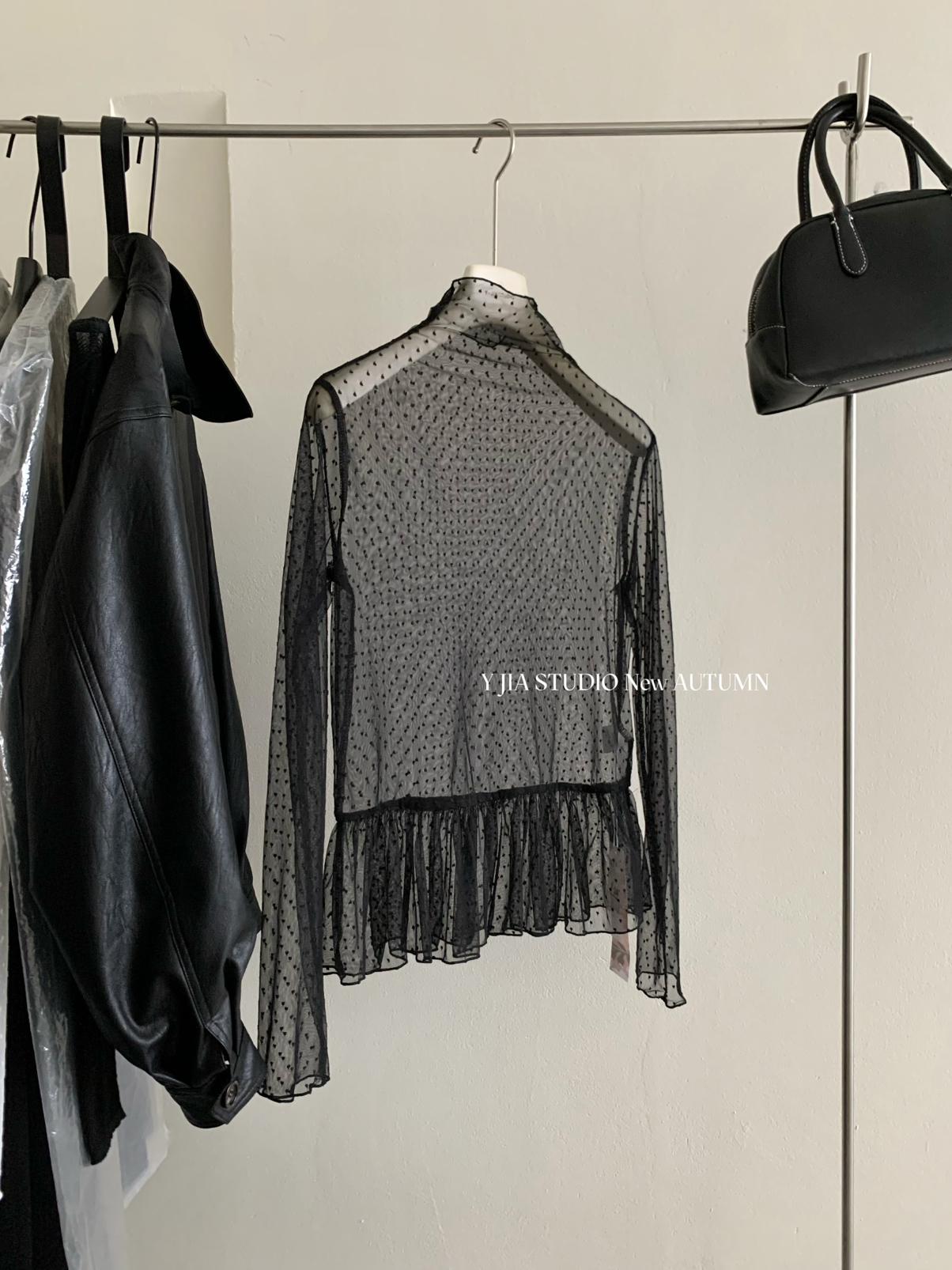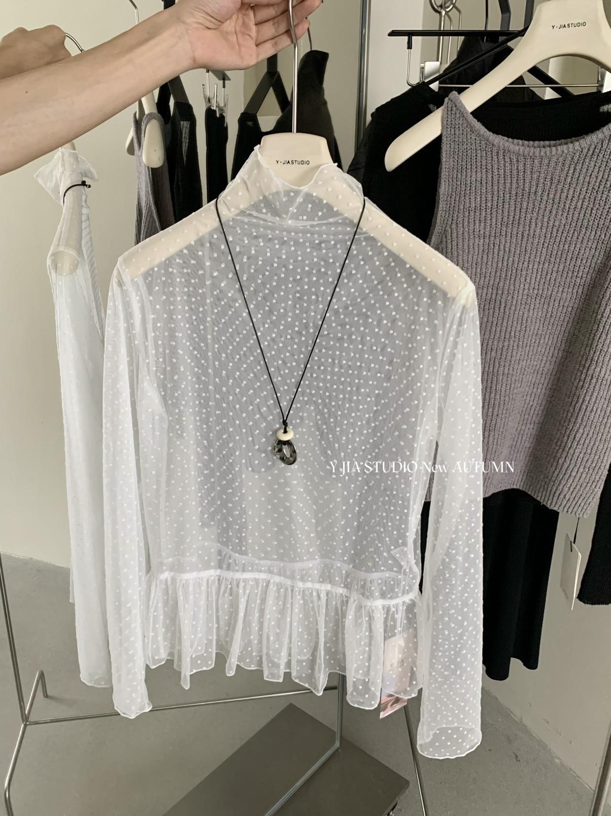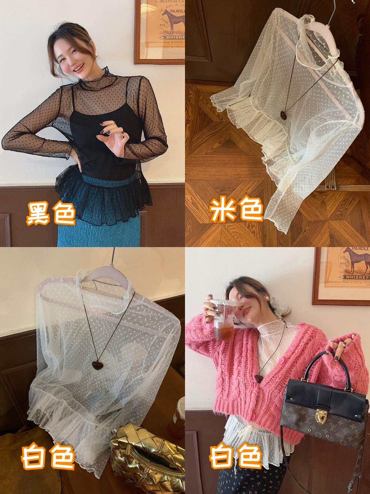 【C7539】韓系萬能疊穿打底衫波點花邊真的很愛~蕾絲衫
