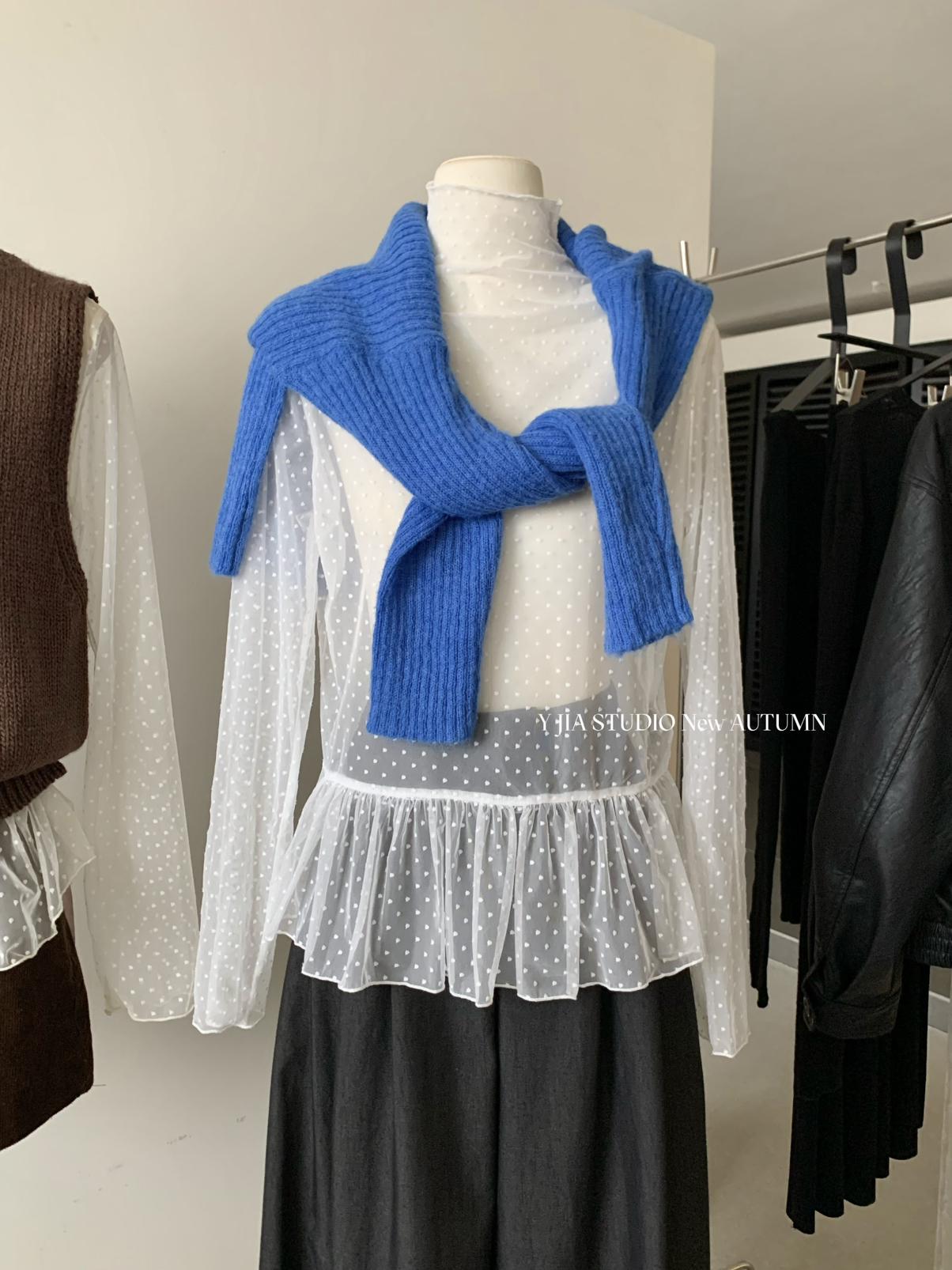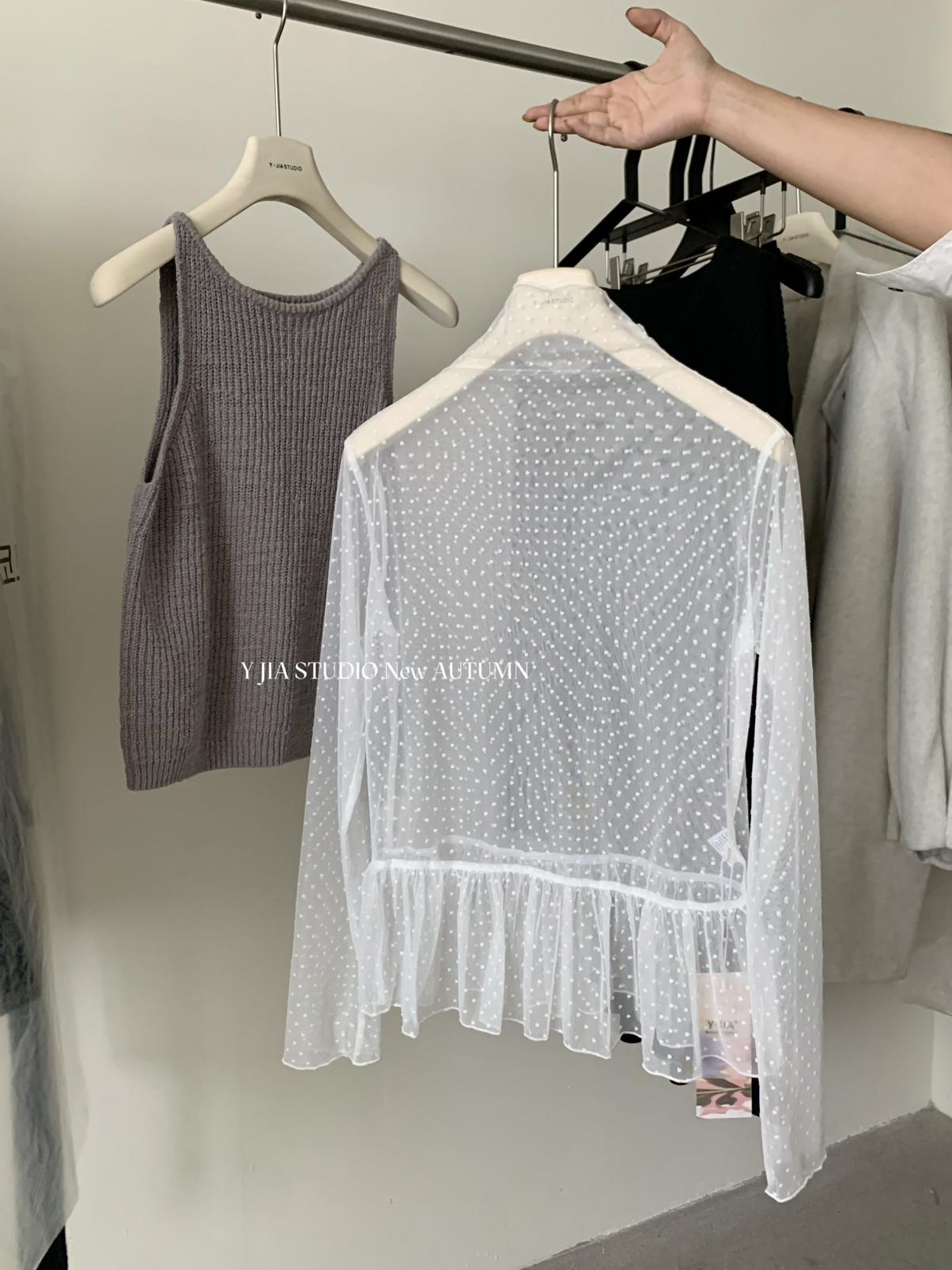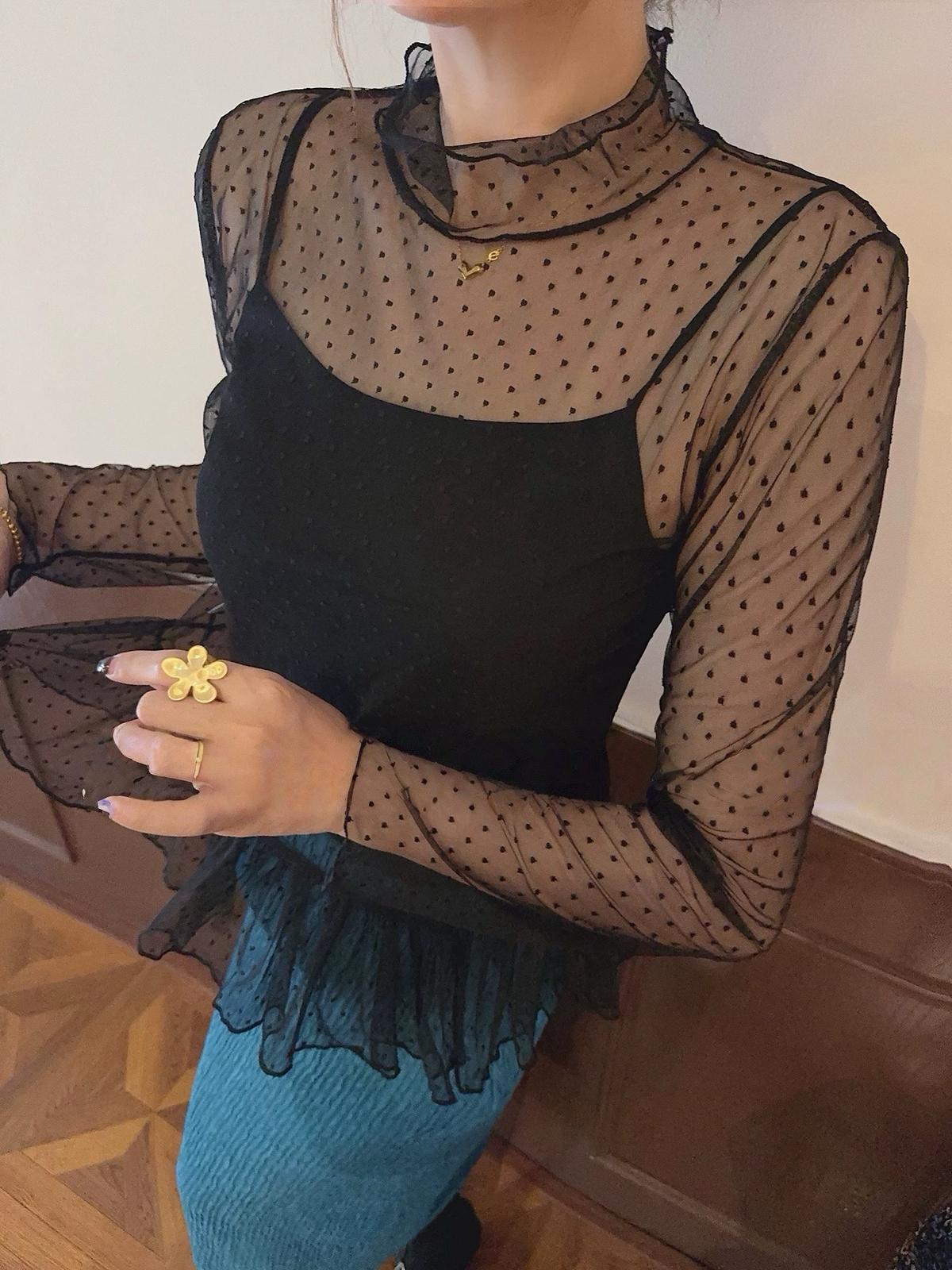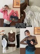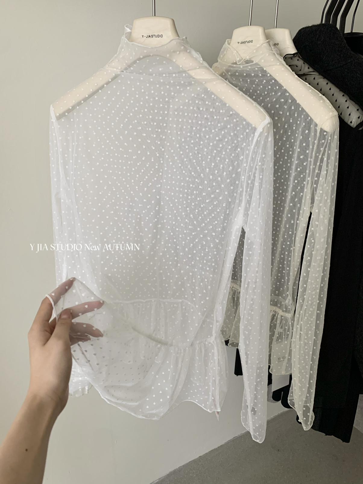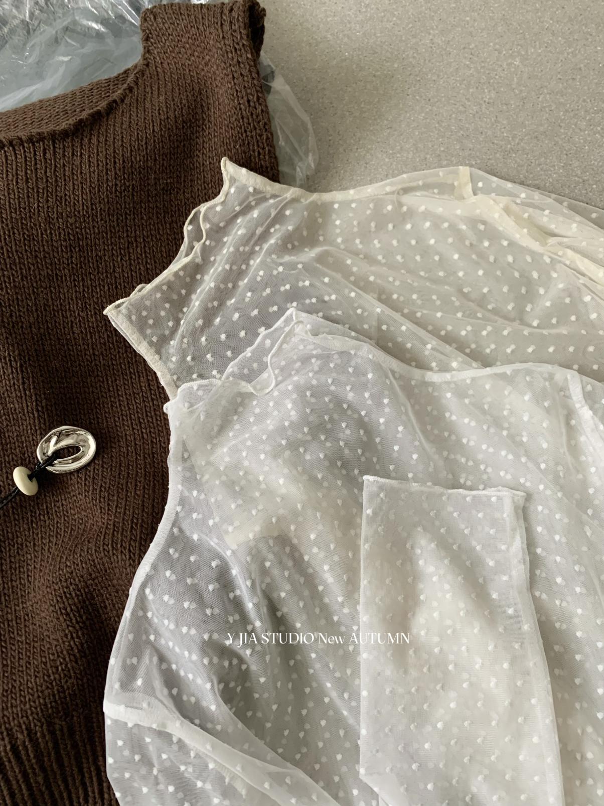 【C7539】韓系萬能疊穿打底衫波點花邊真的很愛~蕾絲衫