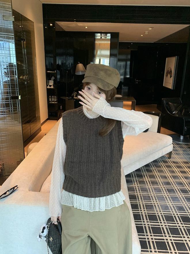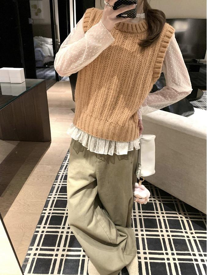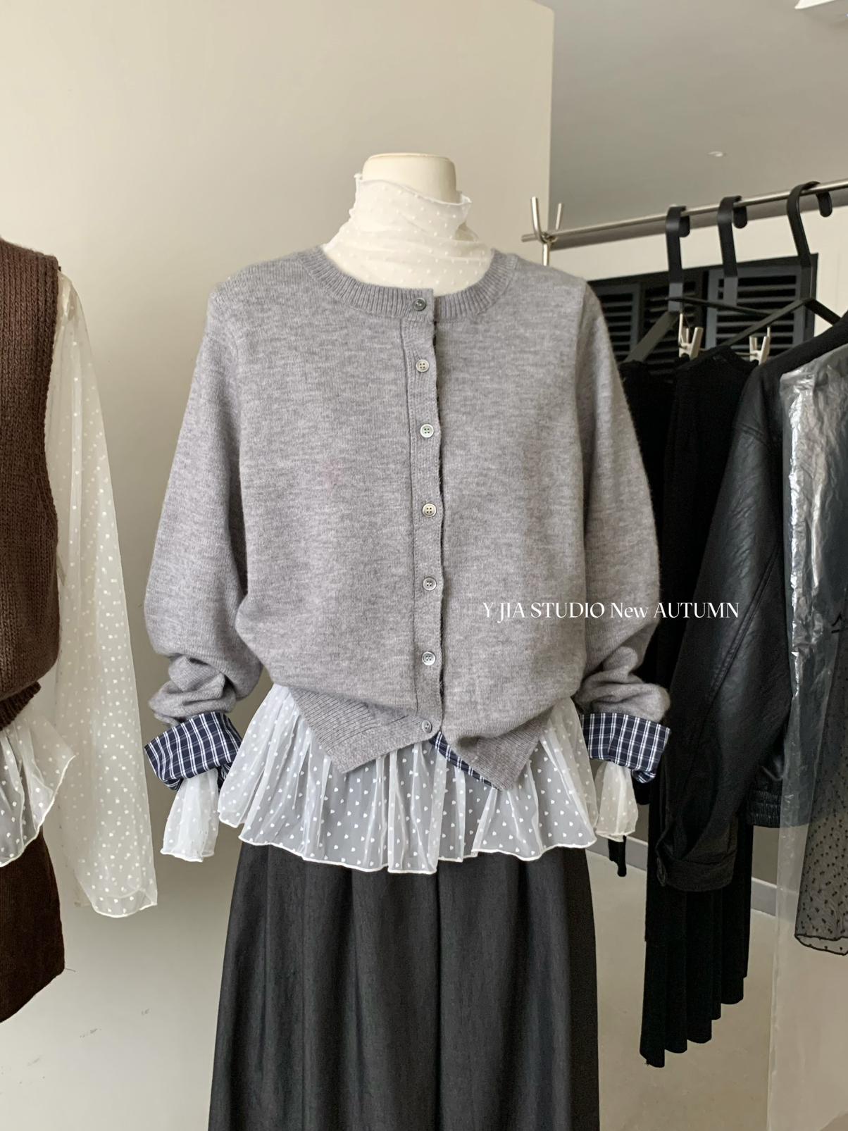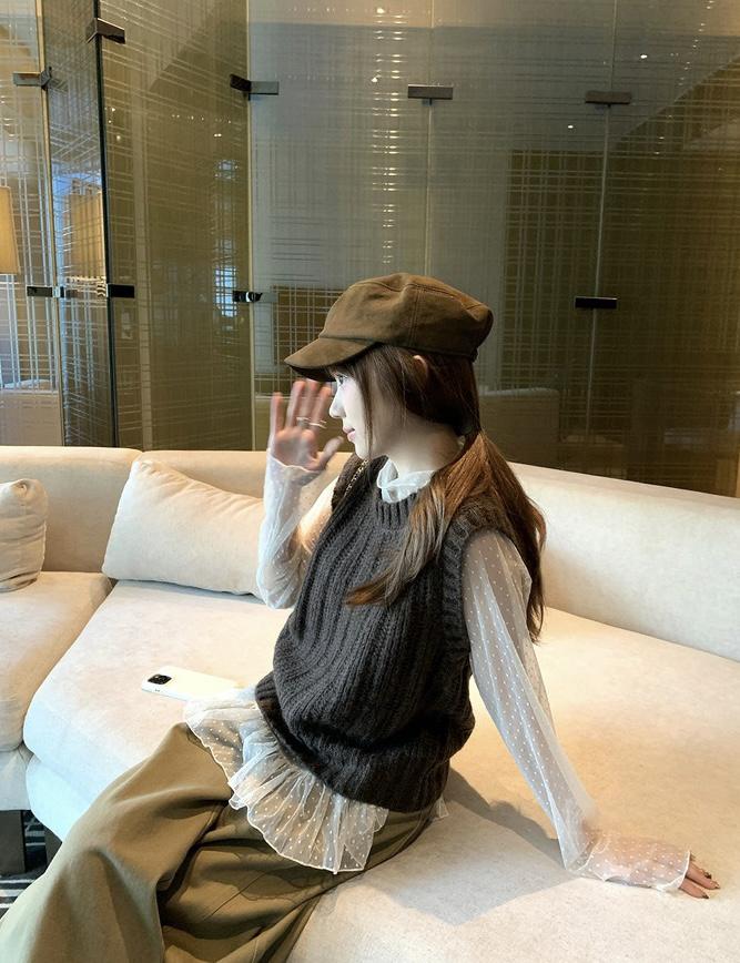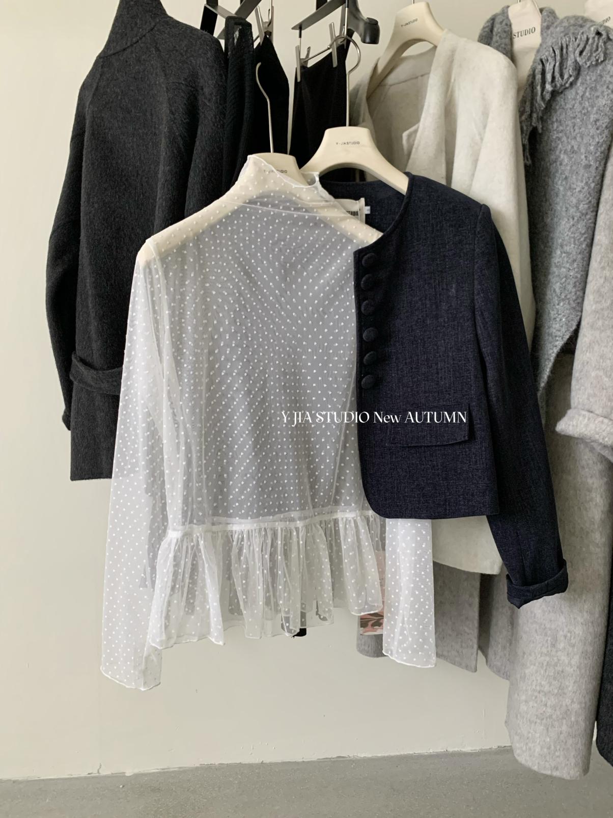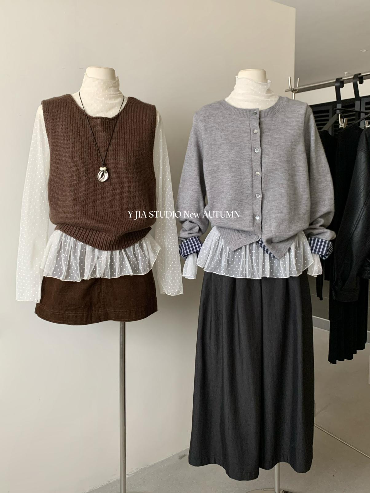 【C7539】韓系萬能疊穿打底衫波點花邊真的很愛~蕾絲衫