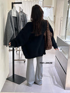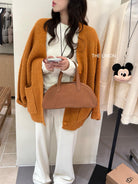 【C7548】高克重燈籠袖寬鬆羊駝毛開衫保暖毛衣(含6%羊毛)