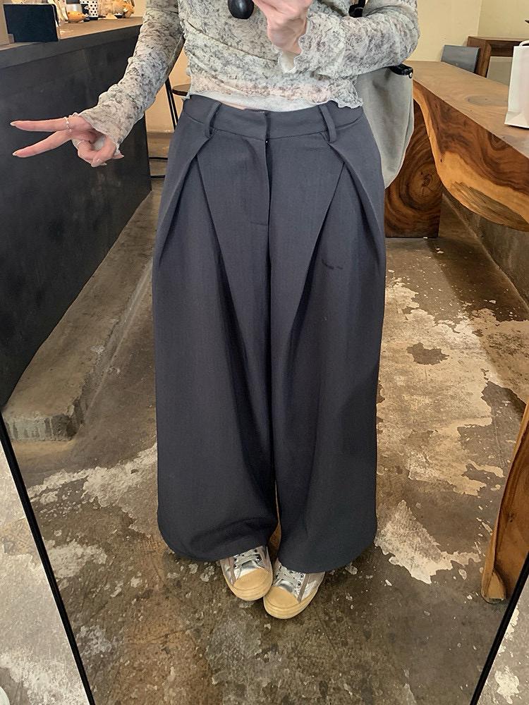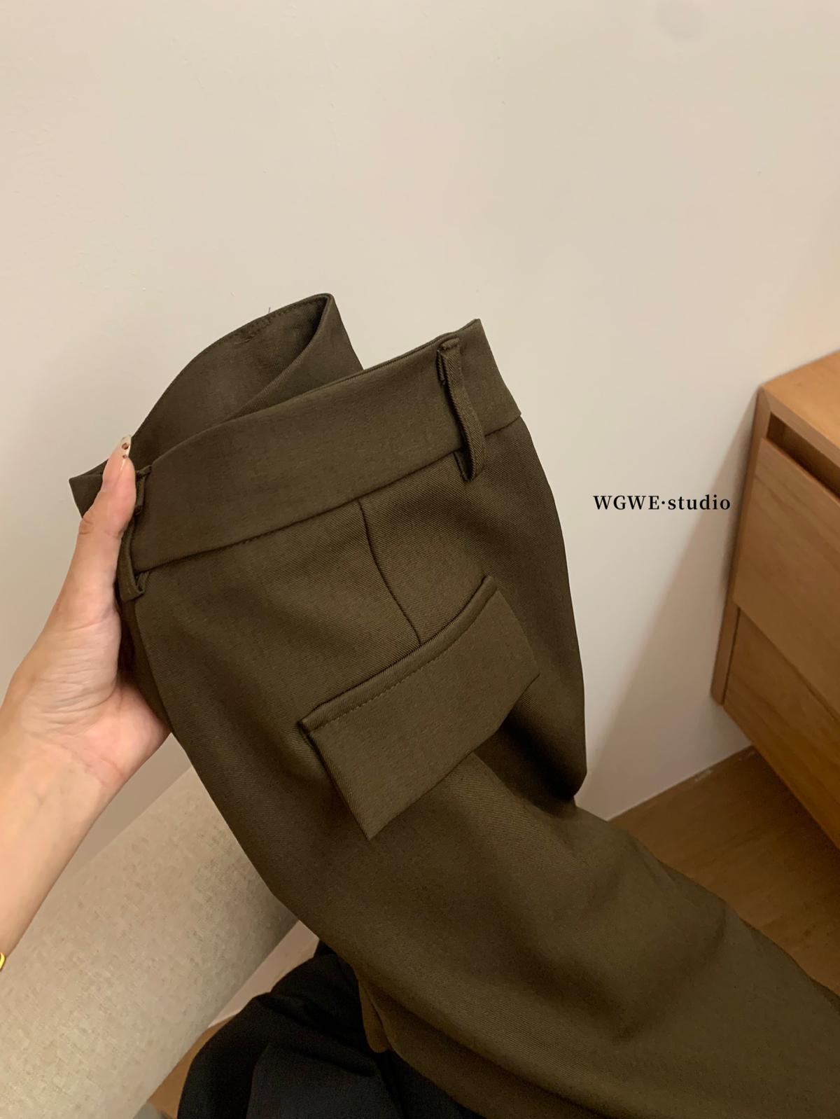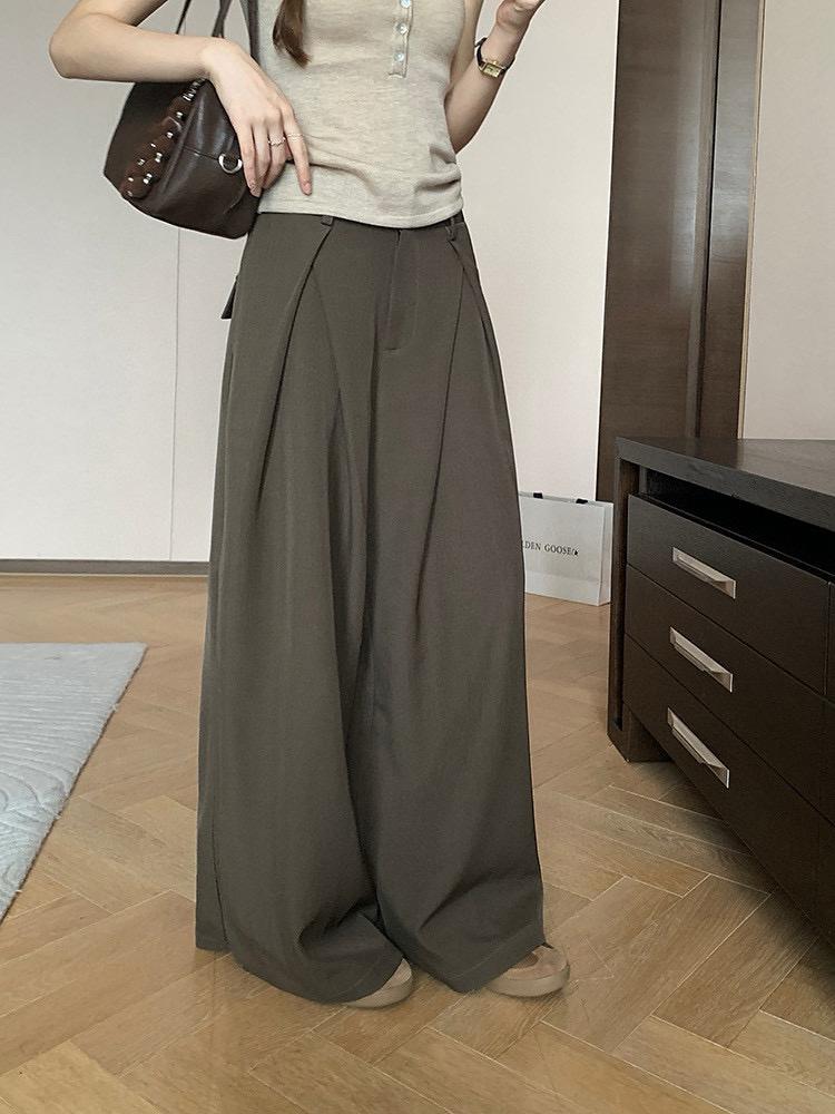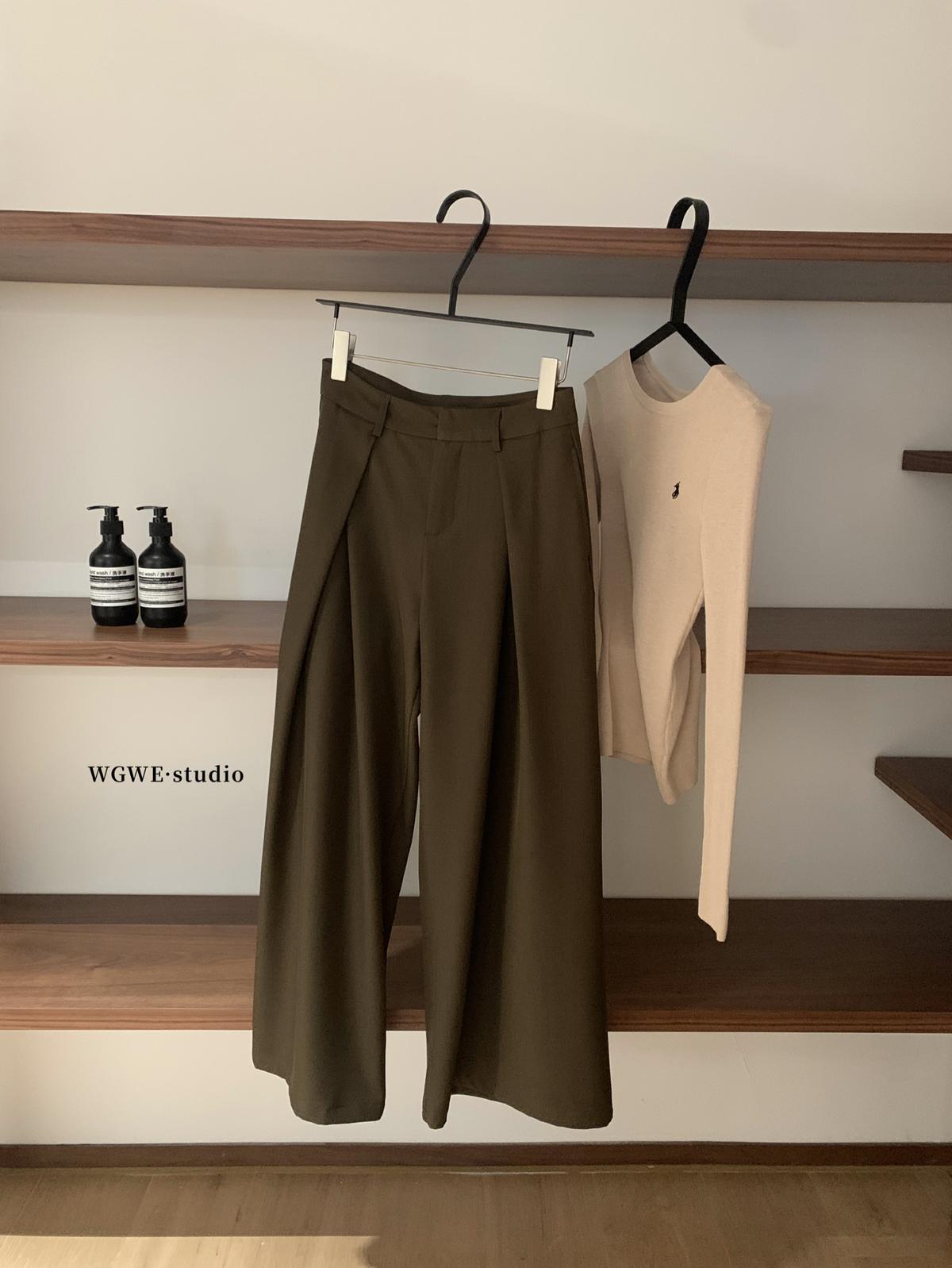 【C7567】小衆高級感褶皺垂感女高腰顯瘦通勤直筒拖地闊腿褲西褲