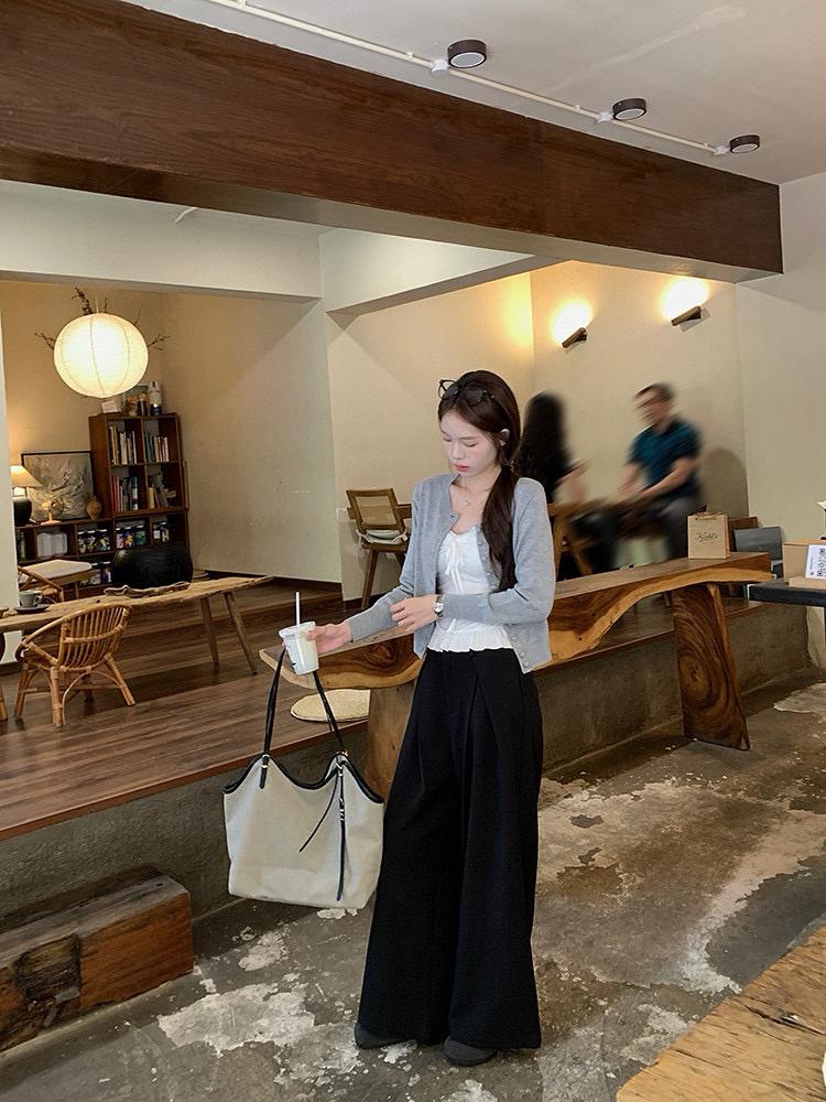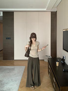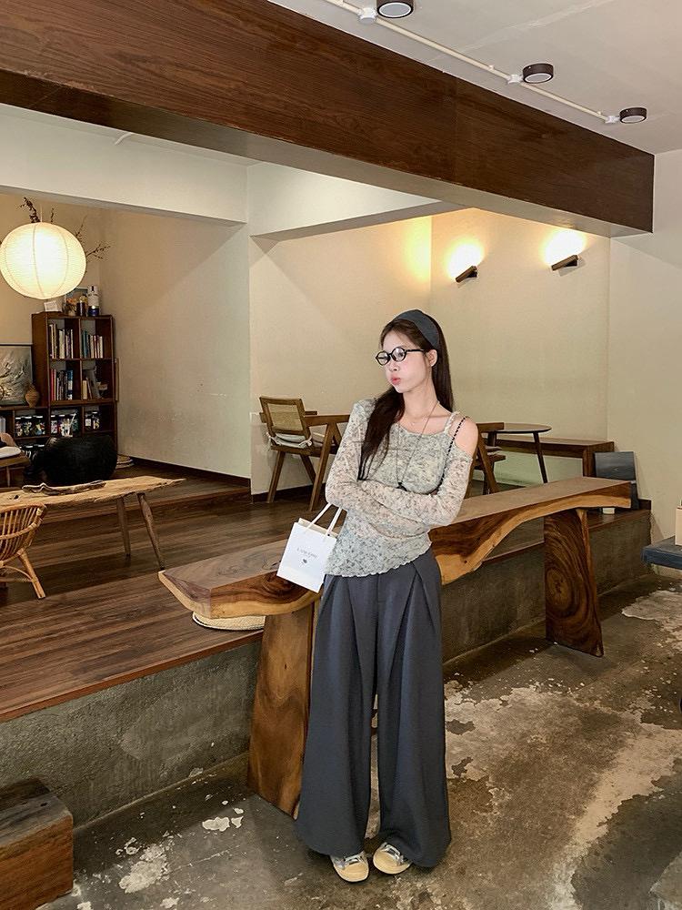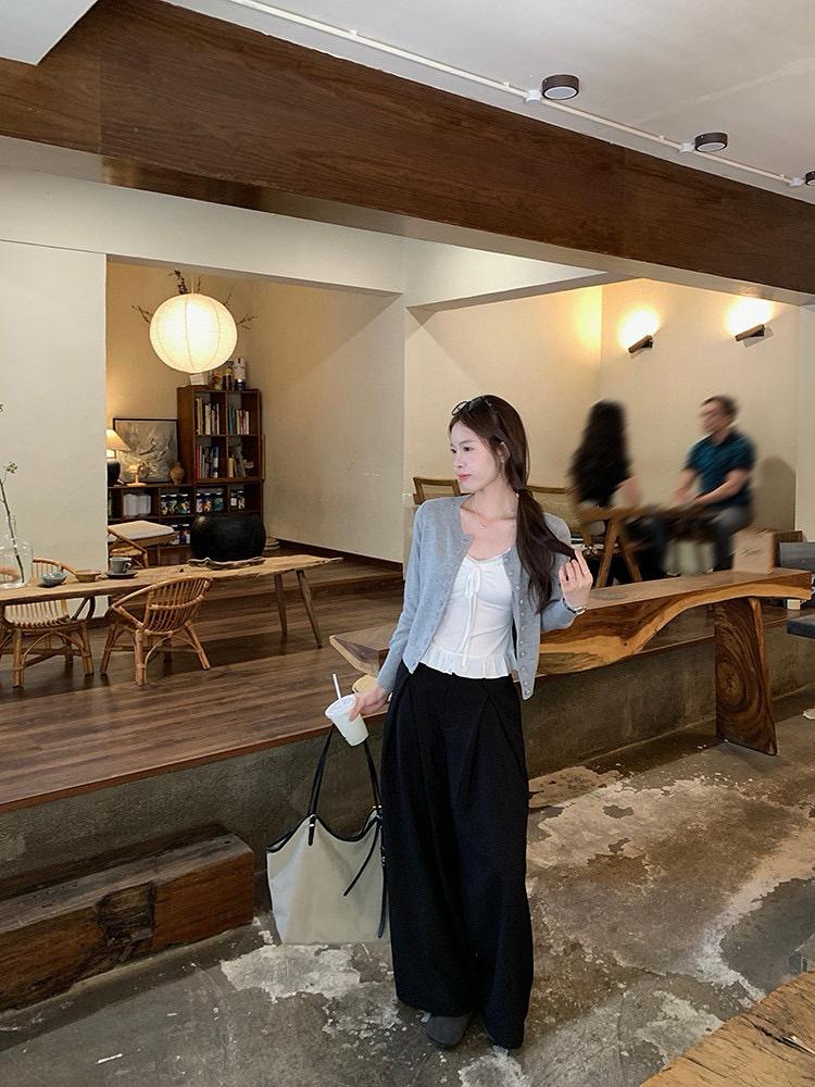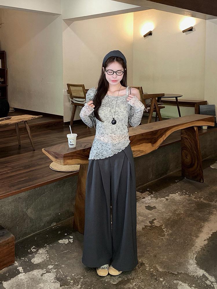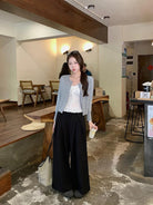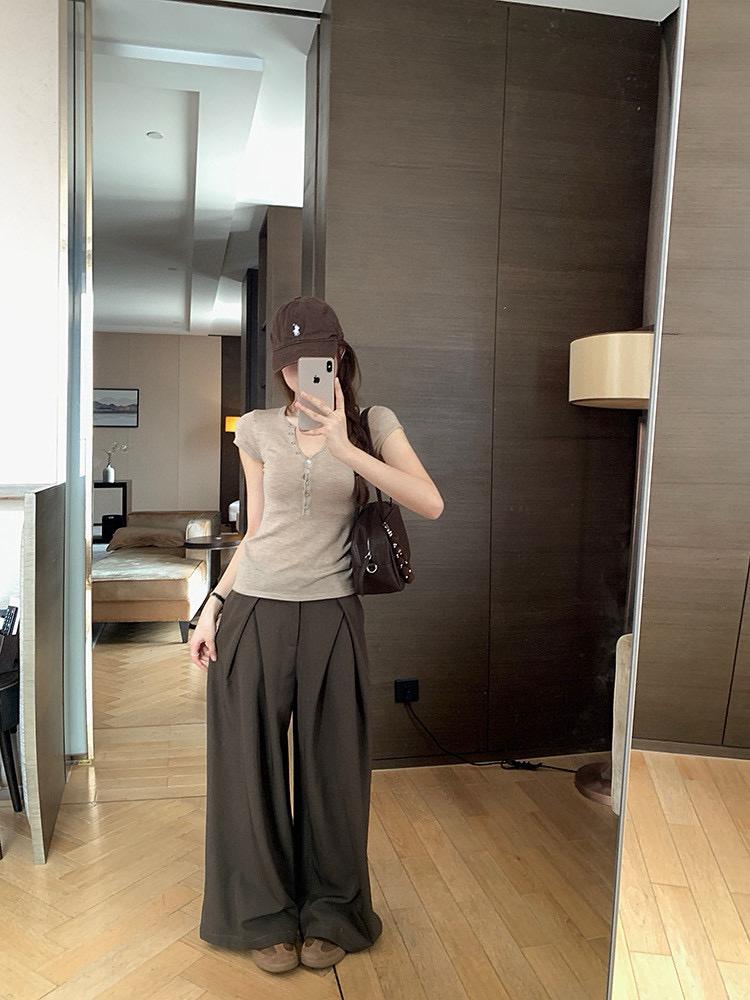 【C7567】小衆高級感褶皺垂感女高腰顯瘦通勤直筒拖地闊腿褲西褲