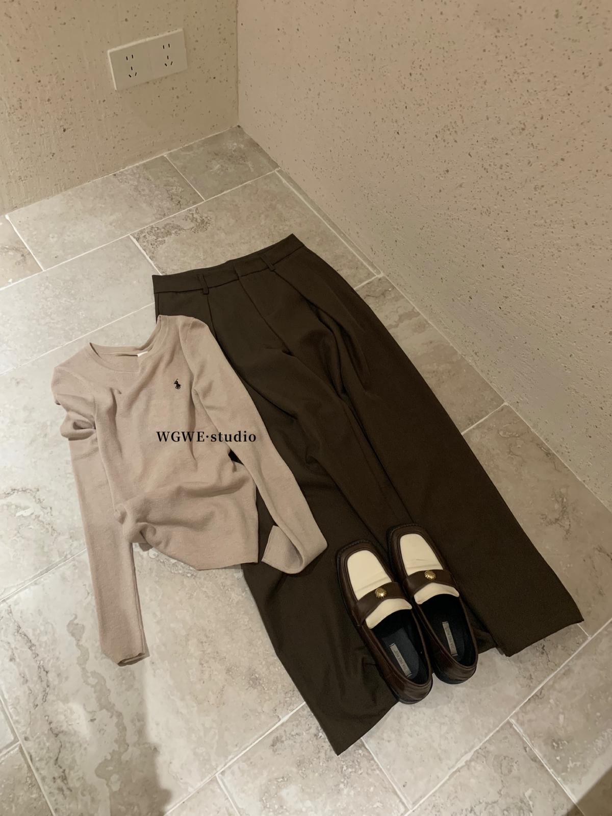 3. 【C7567】小衆高級感褶皺垂感女高腰顯瘦通勤直筒拖地闊腿褲西褲