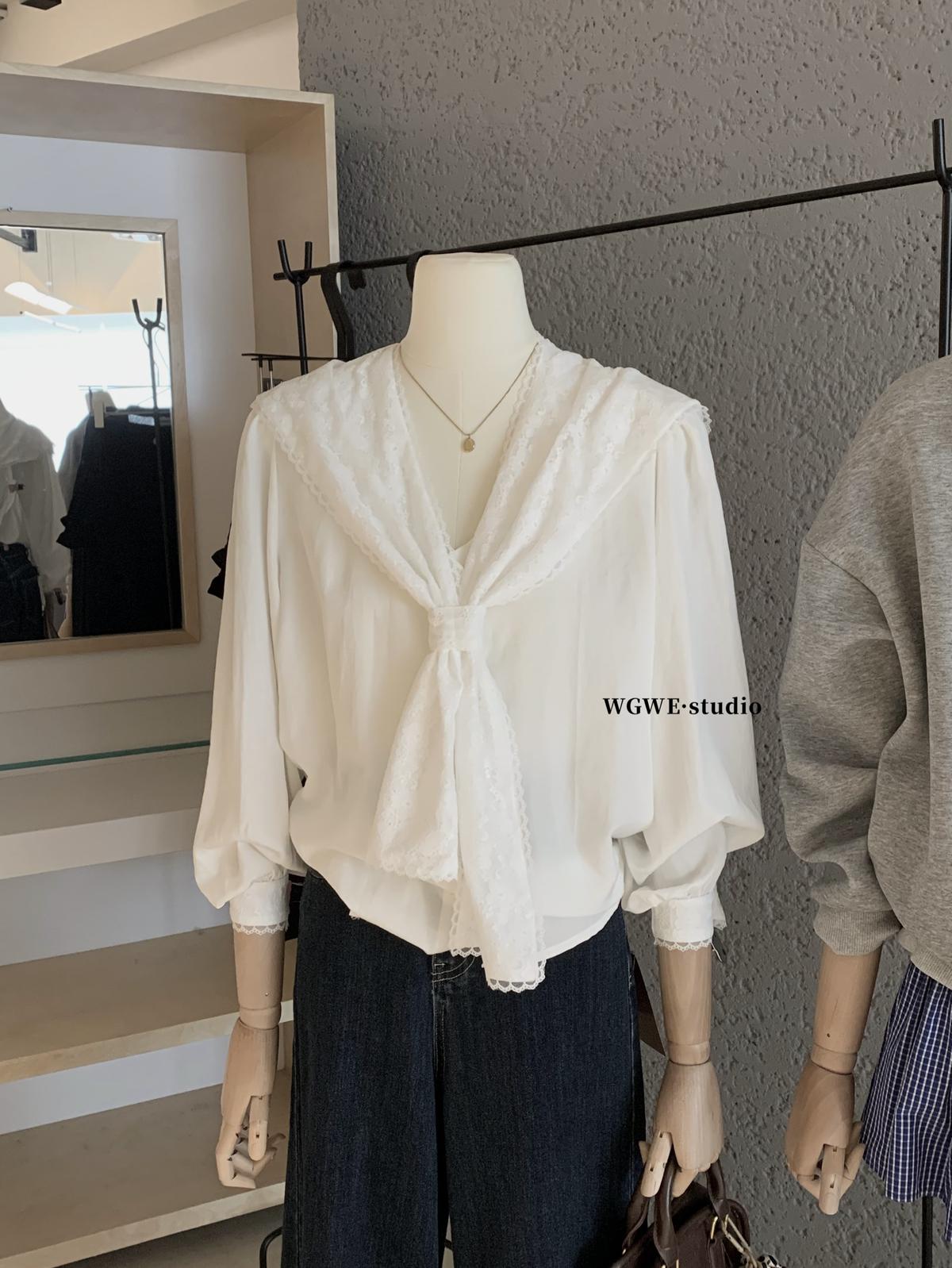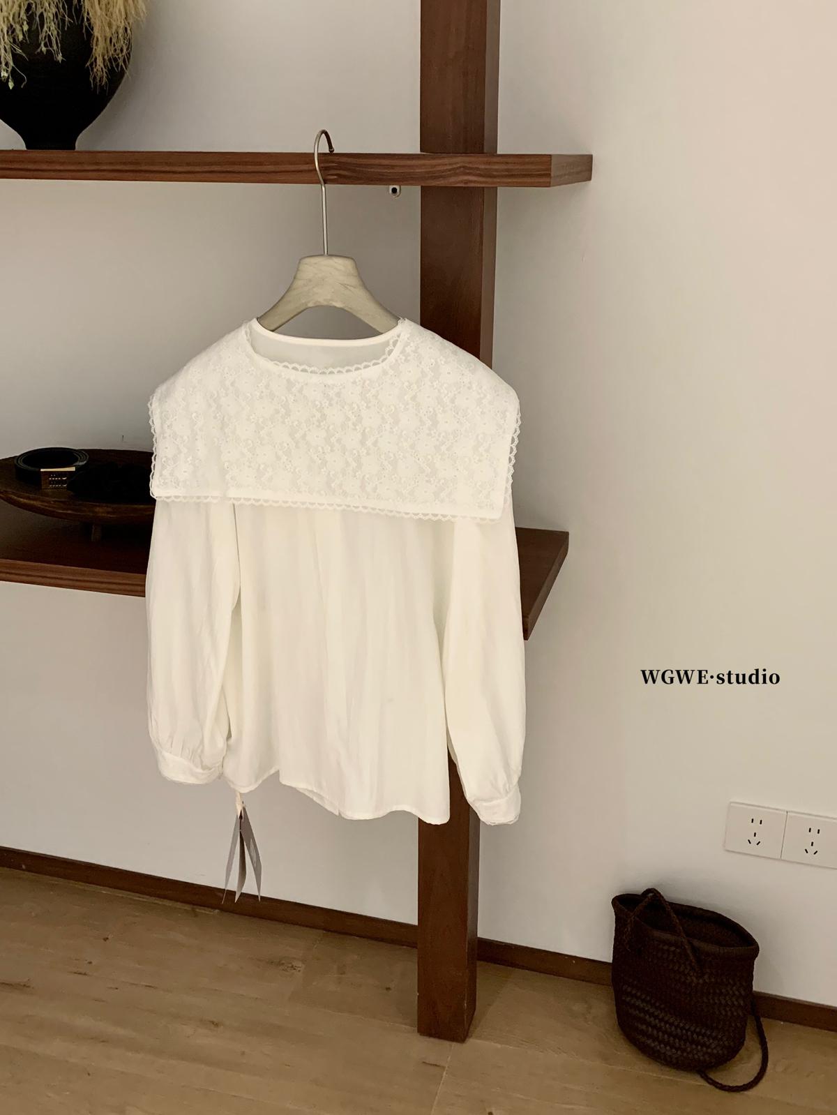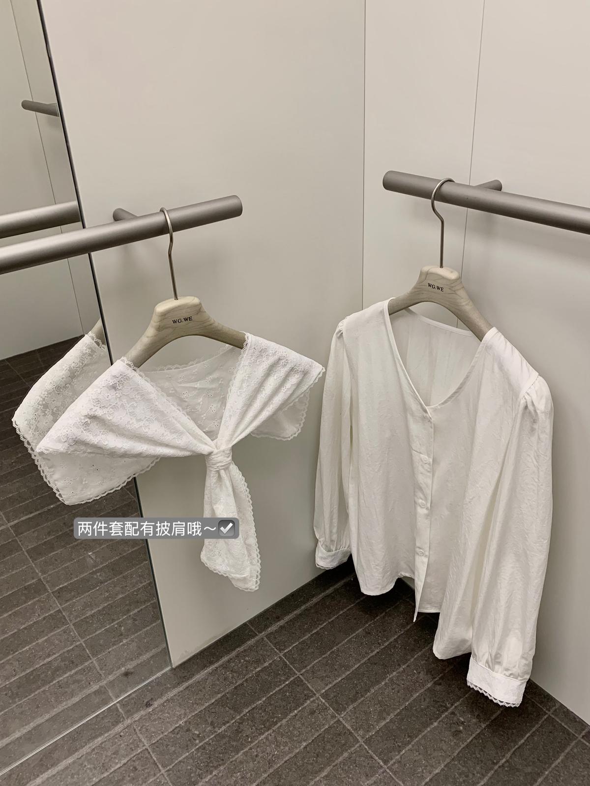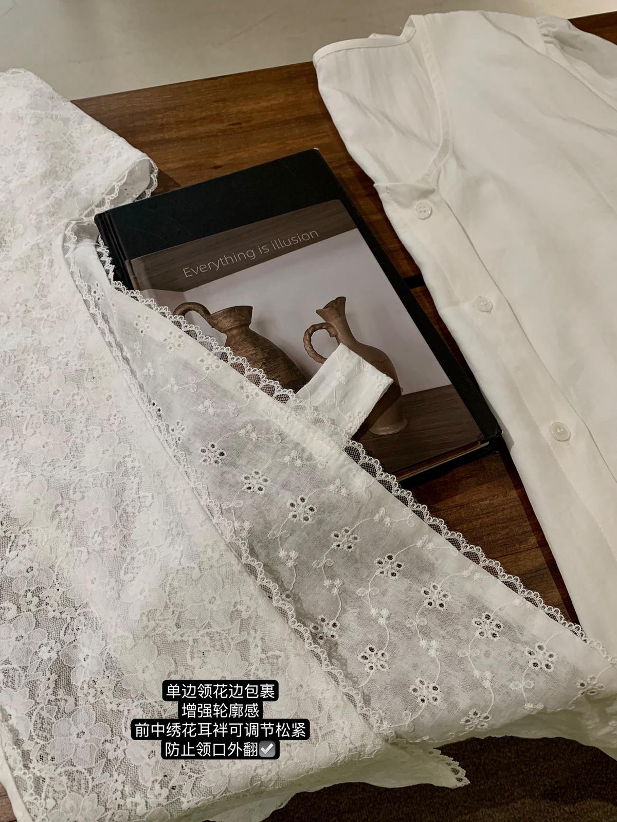 【C7568】法式蕾絲花邊減齡小衆休閒寬鬆襯衫(配披肩)