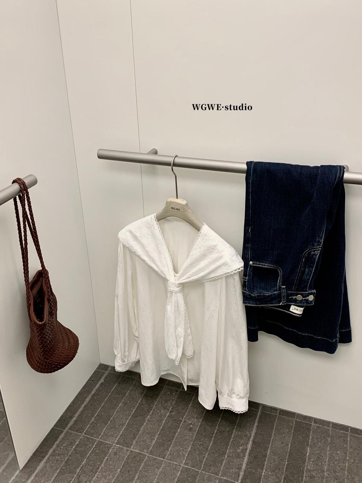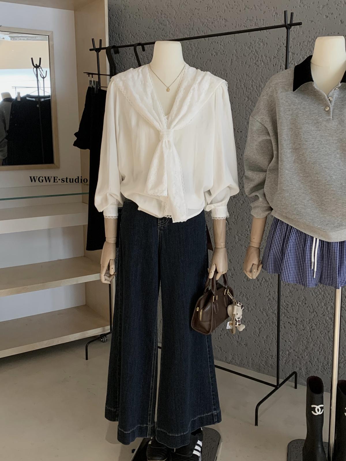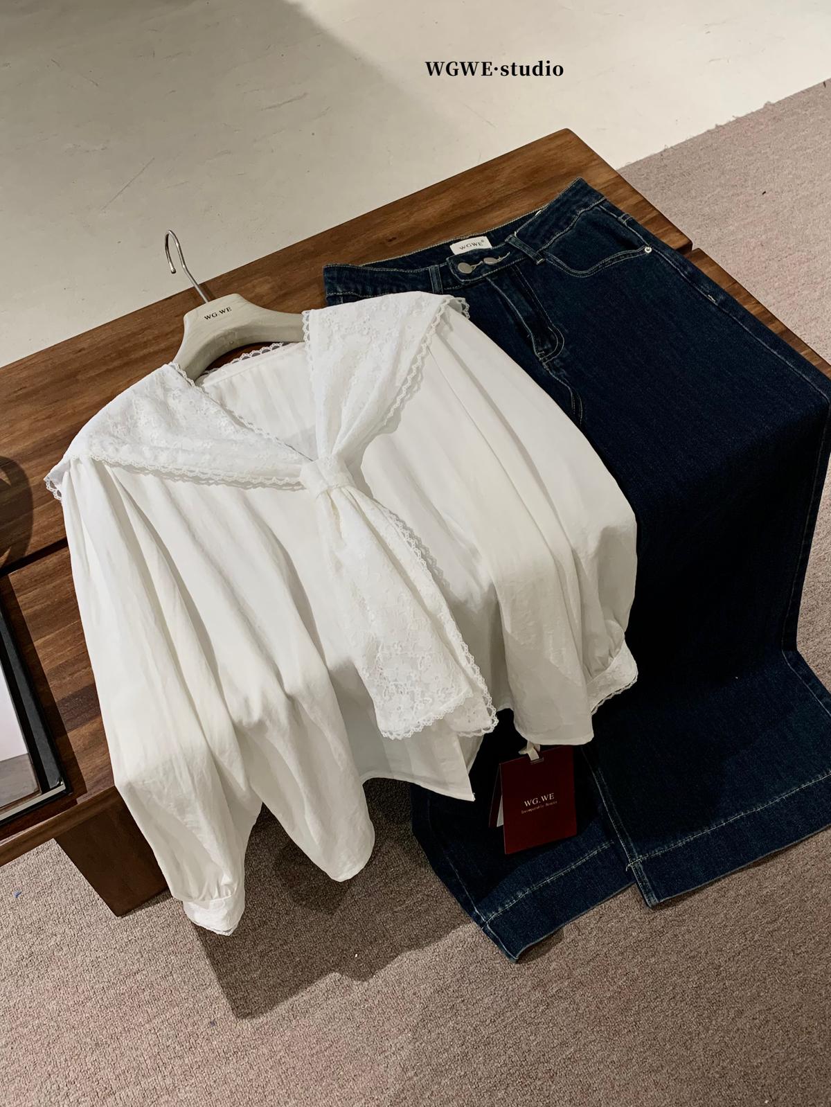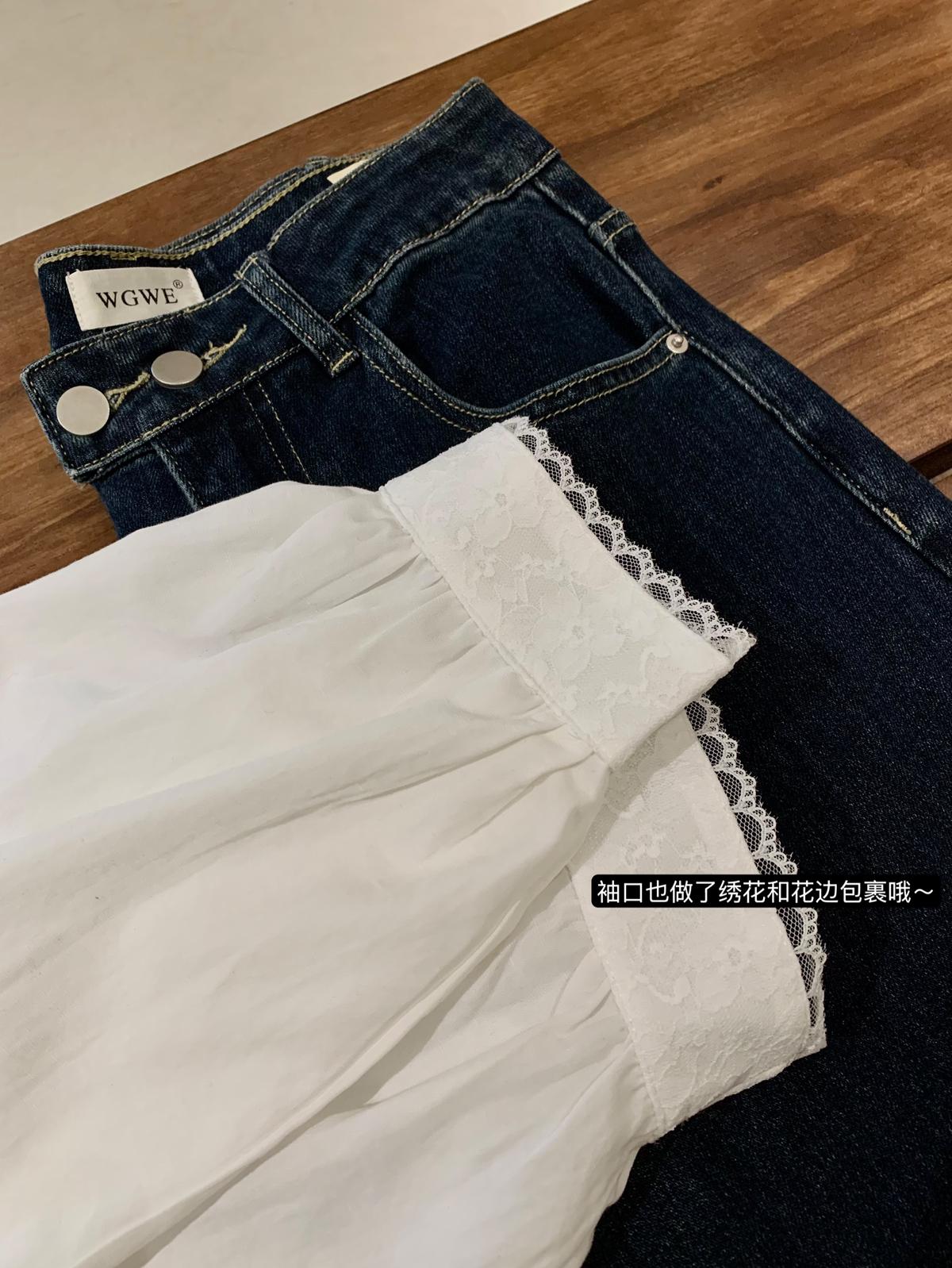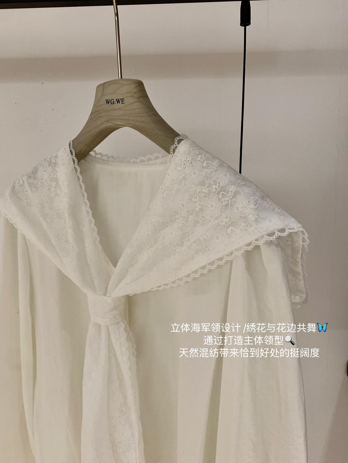 【C7568】法式蕾絲花邊減齡小衆休閒寬鬆襯衫(配披肩)