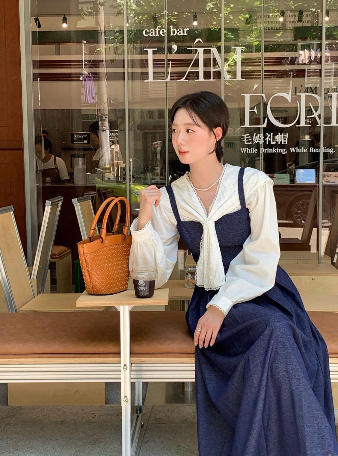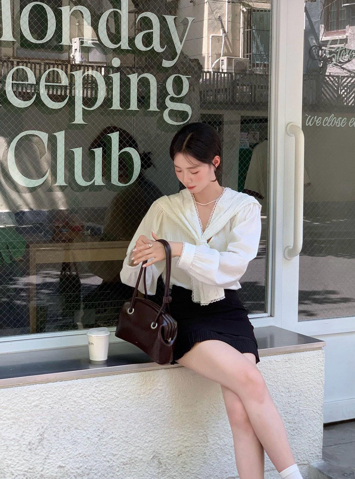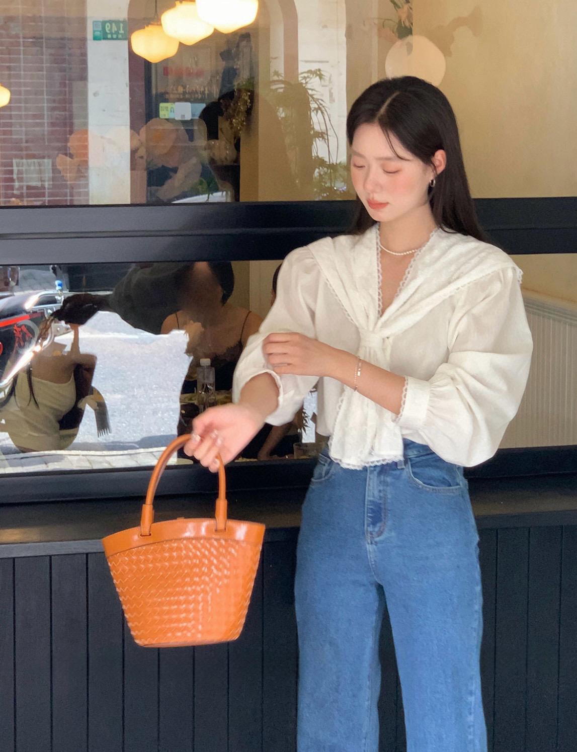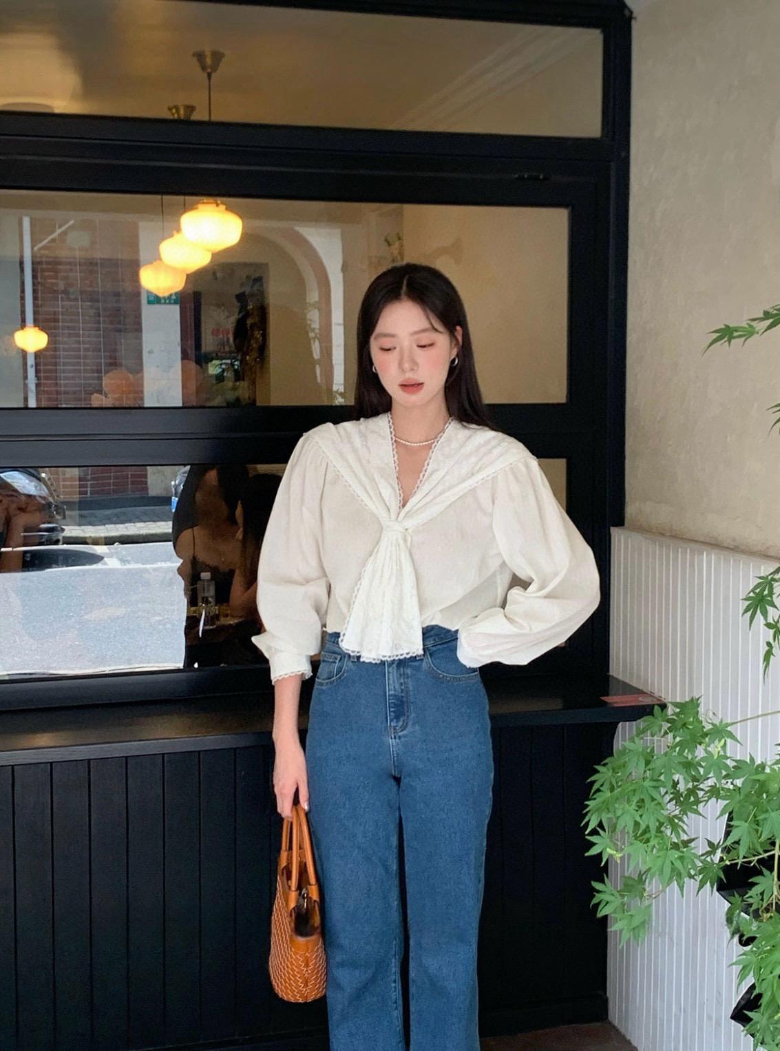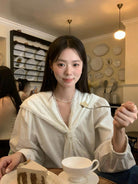 【C7568】法式蕾絲花邊減齡小衆休閒寬鬆襯衫(配披肩)
