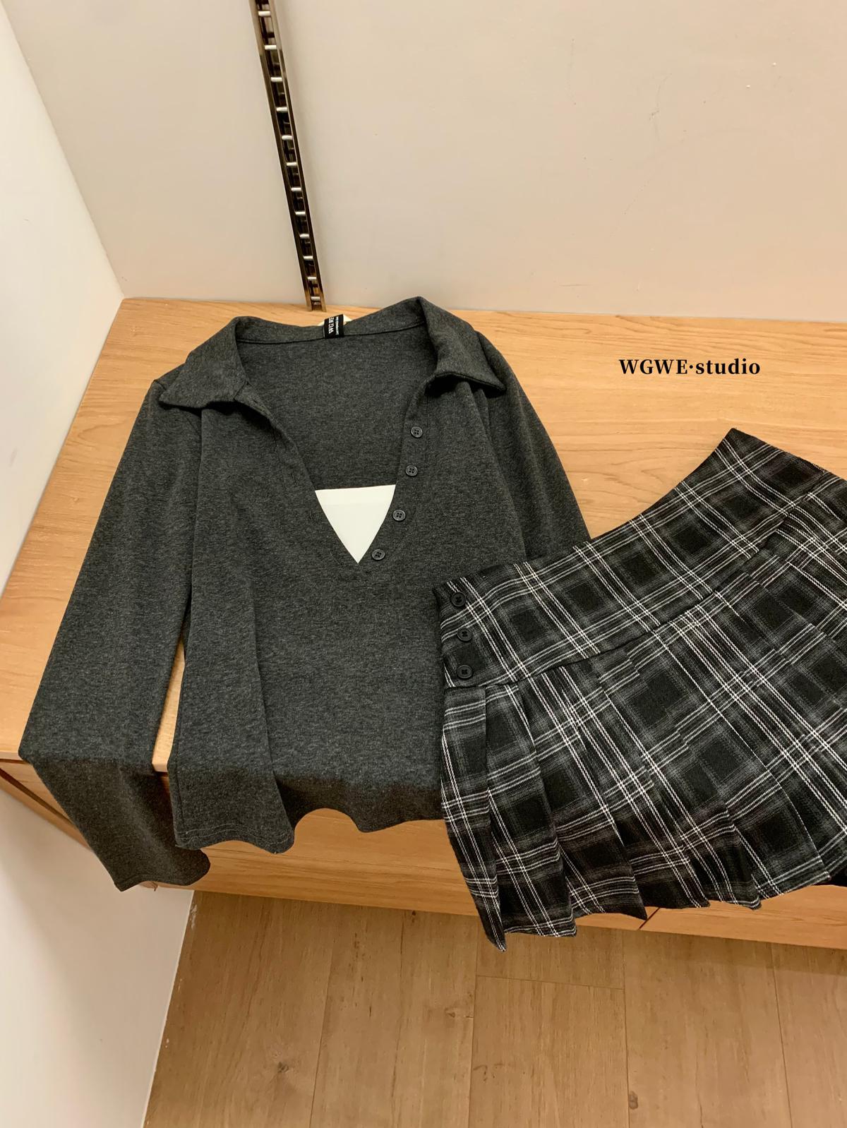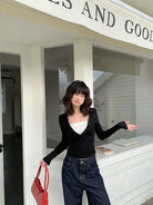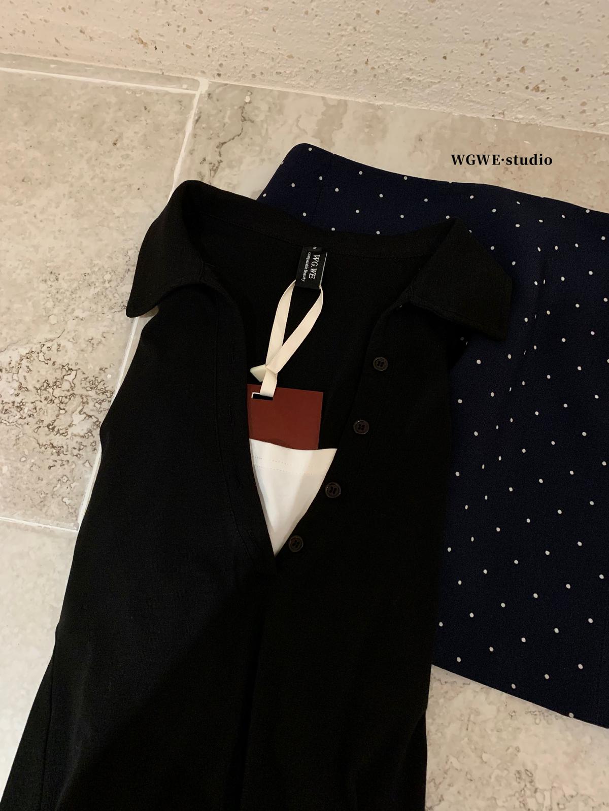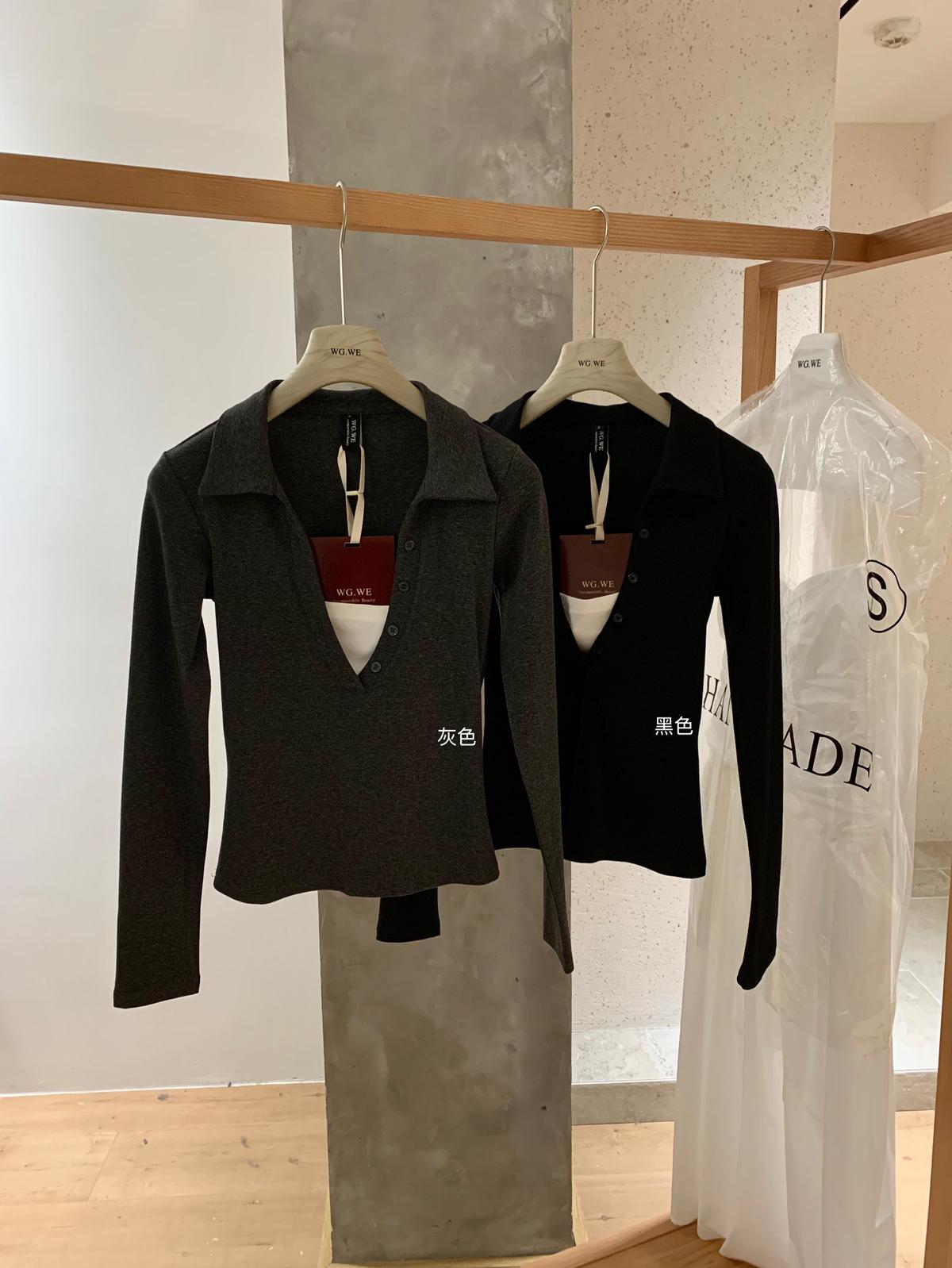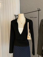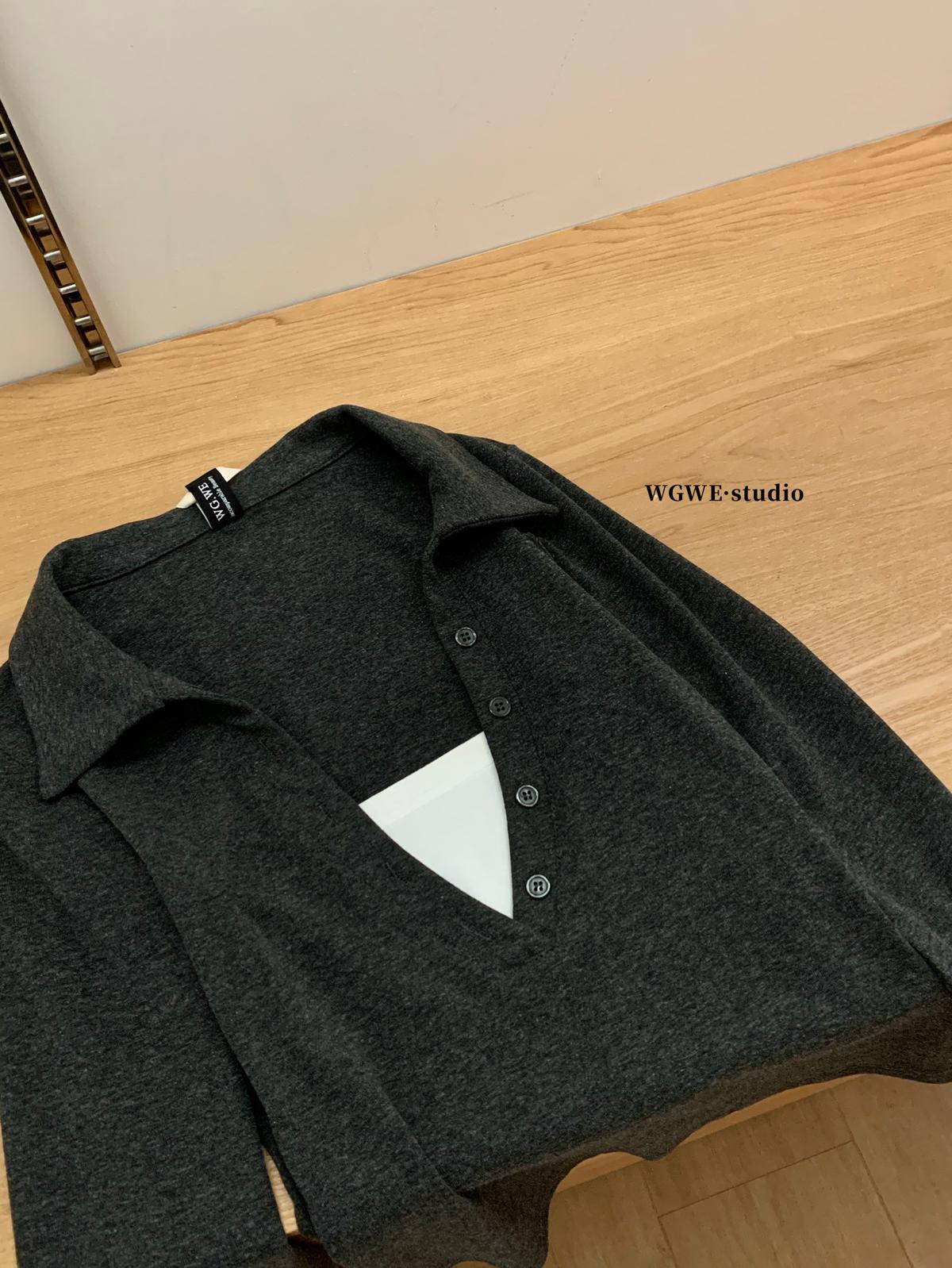 【C7573】假兩件撞色V領內搭針織打底衫小衫